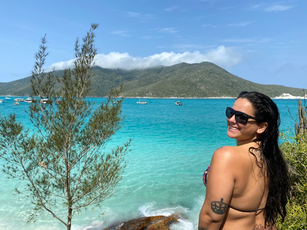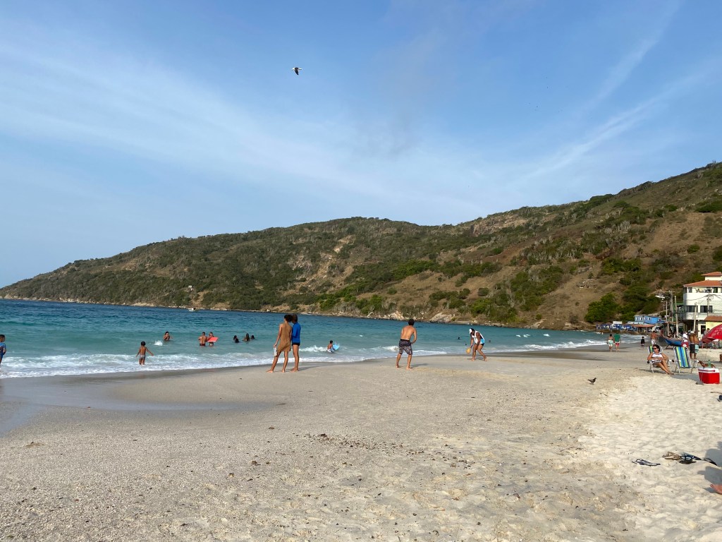 De lá fomos andando até a Praia dos Anjos que é da onde saem os passeios de barco – por causa da pandemia as trilhas da cidade estão fechadas. No canto esquerdo que tem uma plataforma pros barcos, o mar é bem clarinho também. Fechamos por R$100 o casal com um cara ali na rua mesmo da @arraialbeachtour @passeiodebarco.arraialdocabo e esperamos uma hora pro barco sair. Enquanto esperávamos ficamos tomando um sol na praia.