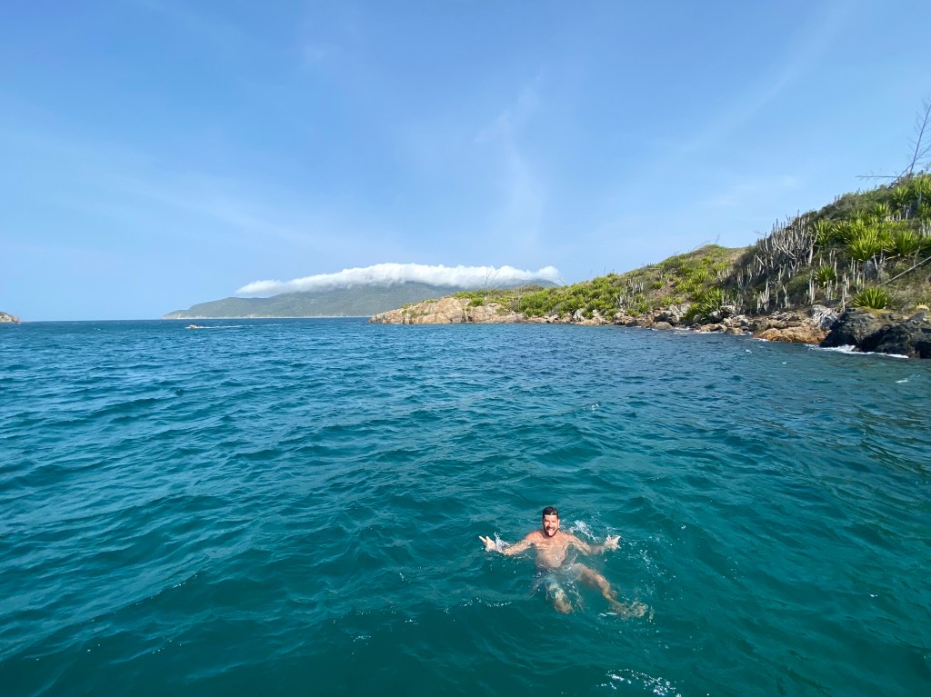 De lá seguimos para a Praia do Forno mas não atracamos, ficamos só pulando ali do barco mesmo. A trilha para lá sai do canto esquerdo da Praia dos Anjos mas estava fechada – uma pena. Dá para ir também de boat táxi por R$10 por pessoa cada trecho. Esqueci de mencionar que o passeio de barco tinha caipirinha incluso e um fotógrafo a parte caso alguém quisesse.