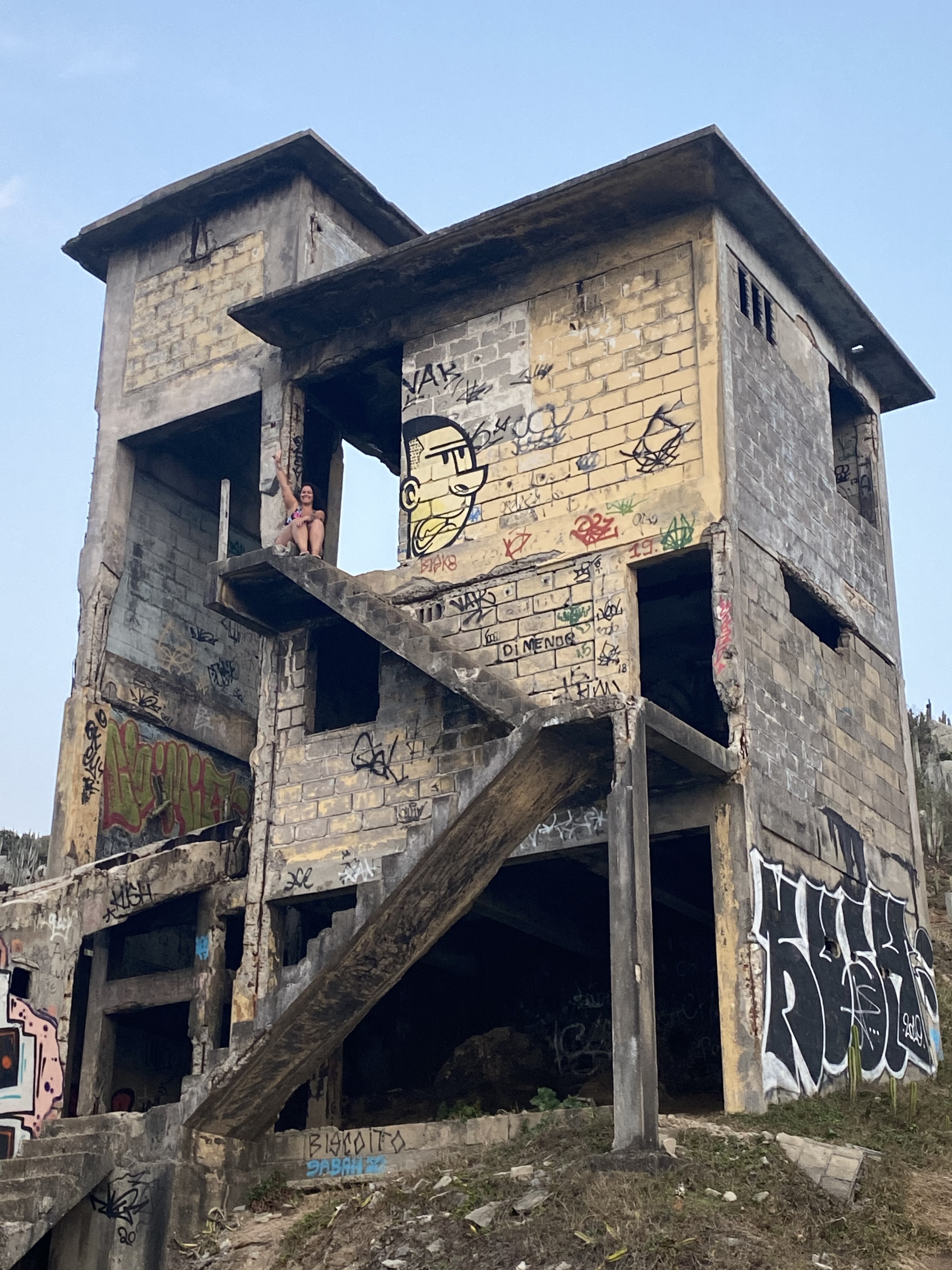 Levantamos cedo e o sol já estava forte, fomos então até o canto esquerdo da Praia Grande nas ruínas que tem uma vista linda da praia e daquele mar azulzinho. Ali na vila dos pescadores, pode descer e é aonde o mar fica mais calminho e cristalino – inclusive vimos tartarugas.
