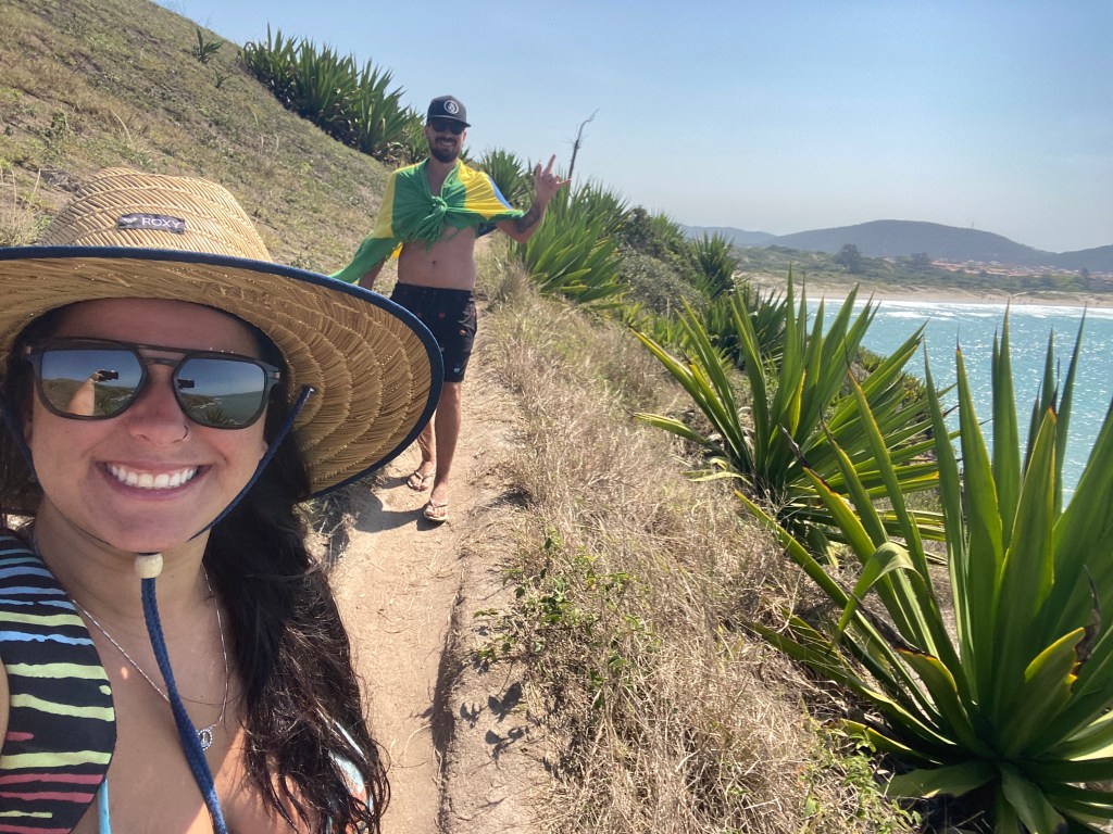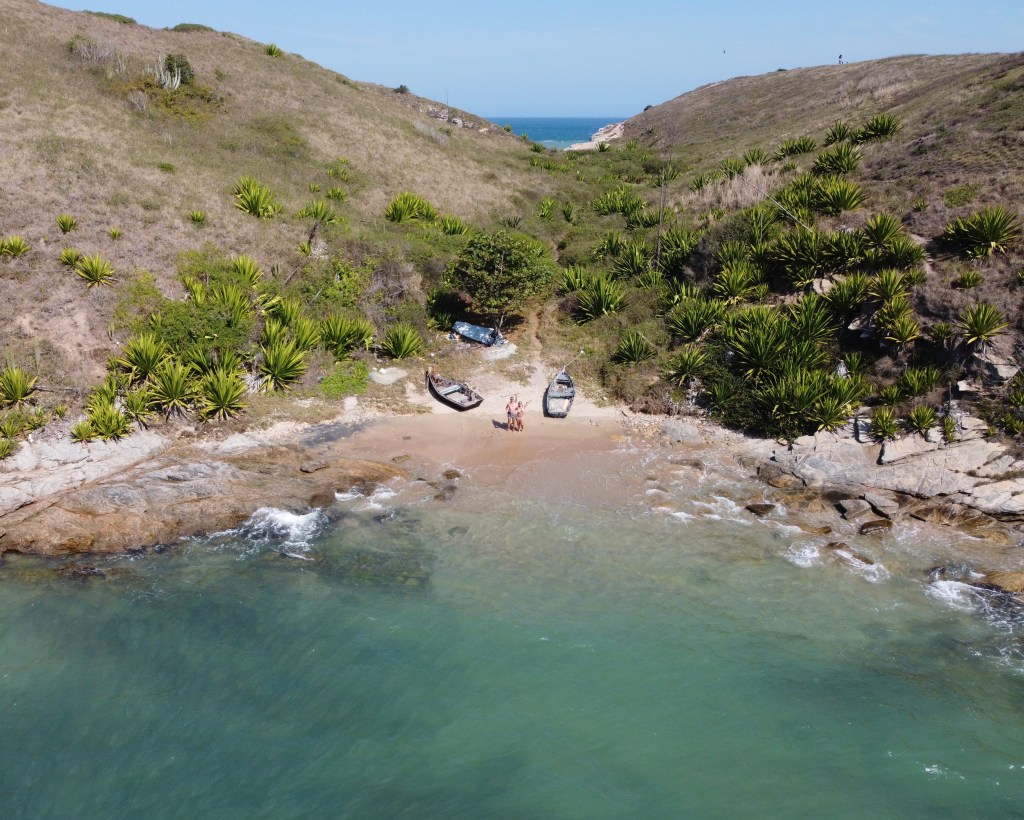 Decidimos caminhar até a outra ponta e cruzar para a Praia do Peró que achei mais bonita apesar de extensa. Quando a fome bateu comemos um pastel cada e tomamos um suco no Cabana dos Pescadores (R$54) – descobri que duas novelas da Globo foram filmadas lá o que tornou o lugar mais popular.