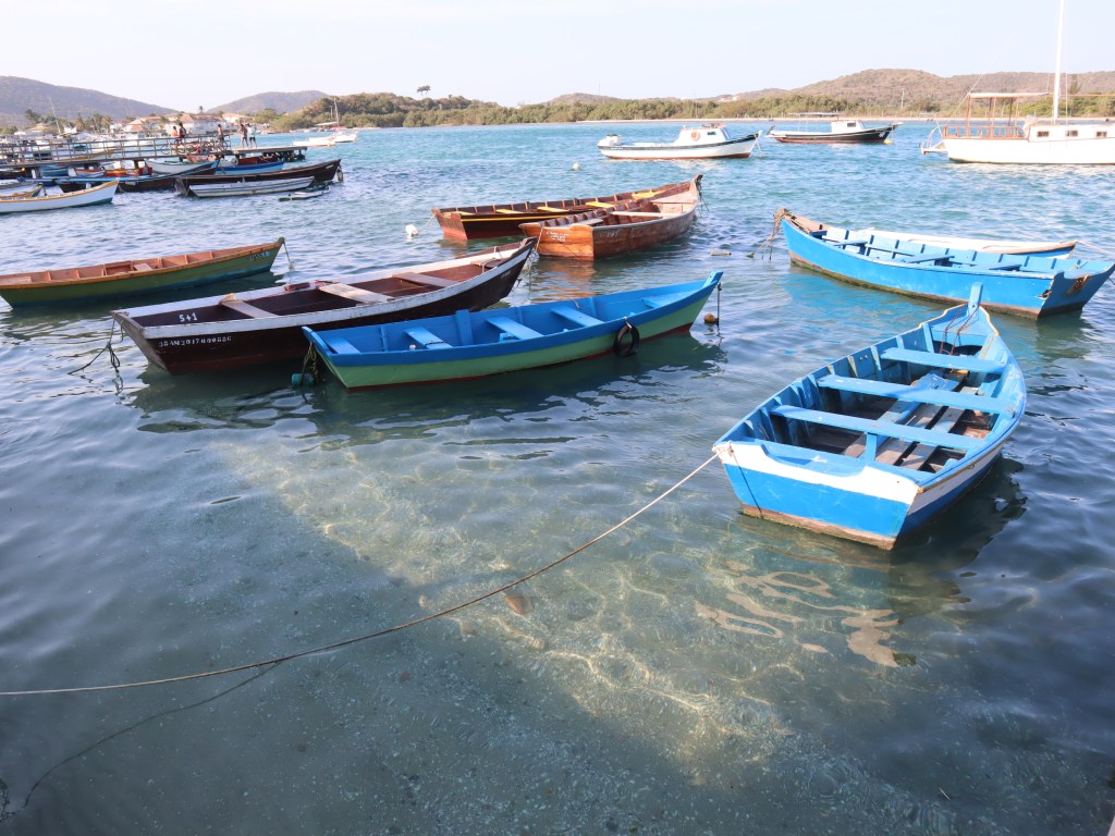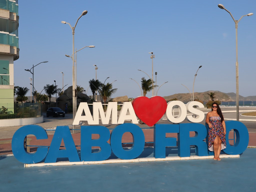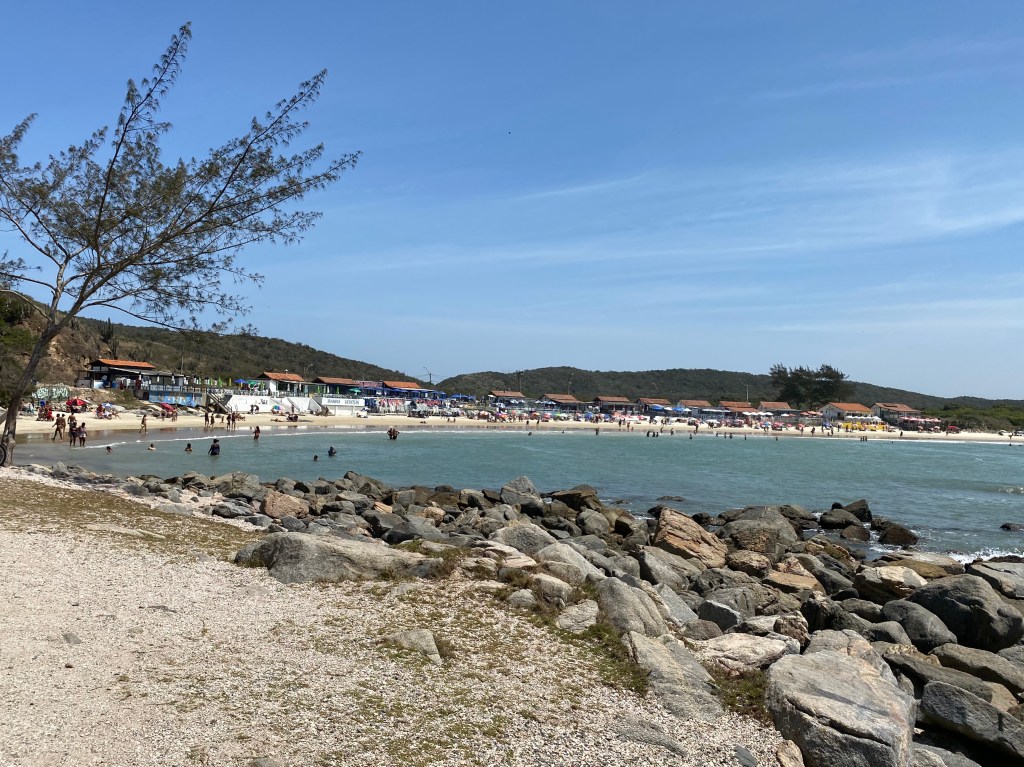 Acordamos cedinho e fomos conhecer Cabo Frio, cidade vizinha de Arraial. A divisa é pertinho mas a praia que fomos conhecer – Praia das Conchas – fica a 40 minutos de distância passando por todo o centro da cidade. Chegando lá tivemos que pagar estacionamento R$25 pro dia todo e dá acesso também a Ilha do Japonês, ou seja, dá para ver dois lugares em um dia.