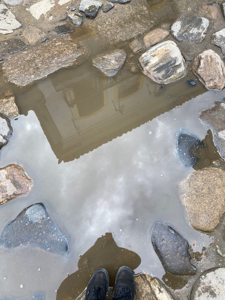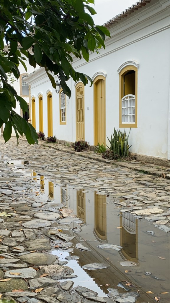 Passamos também na Rua do Fogo (perto da Igreja Santa Rita), uma das mais conhecidas por ser estreita, ainda possuir residências e pelo charme que as árvores dão. O nome se dá porque antigamente era uma rua de prostituição, segundo contam. Por conta da chuva ir e vir toda hora, nos abrigamos numa livraria no caminho também e as ruas ficam lindas para fotografar com as poças de água.