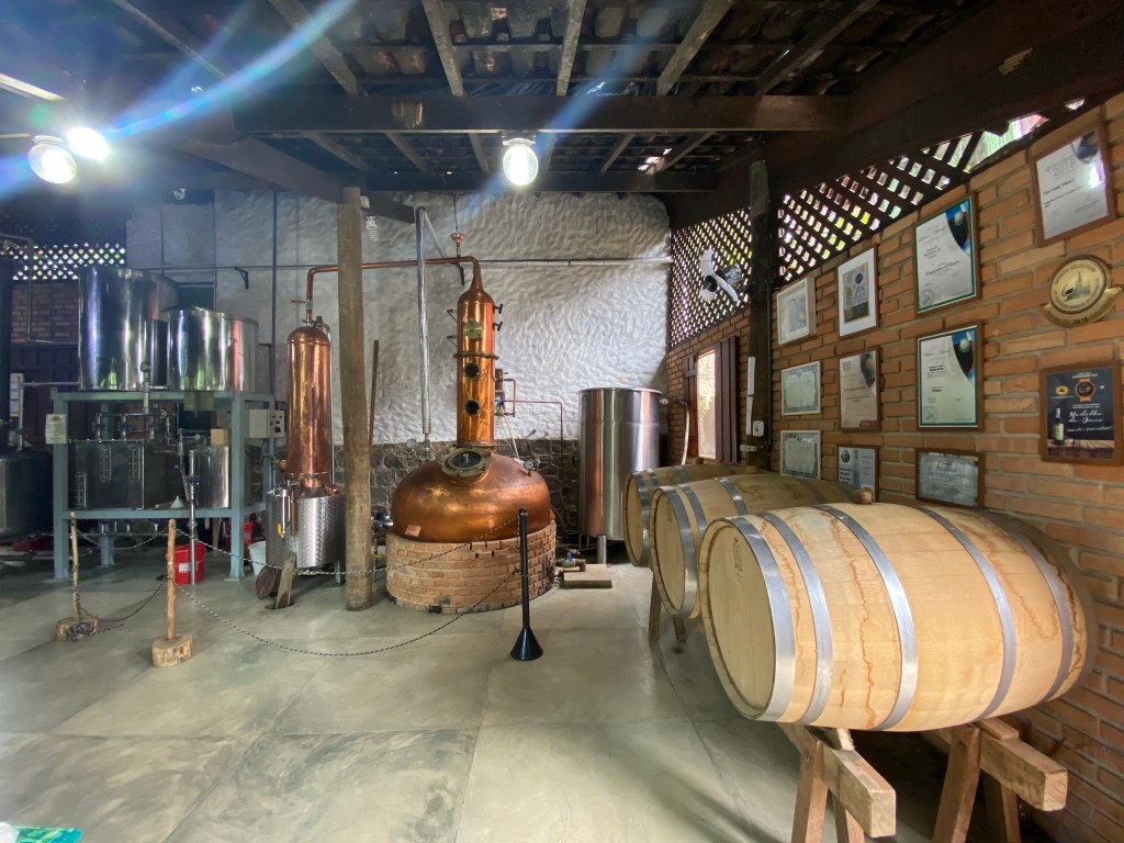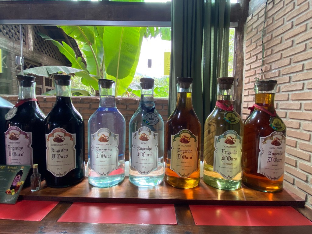 Voltando pro estacionamento, do outro lado tem um alambique chamado Engenho D´ouro que fomos conhecer. Lá eles contam sobre todo o processo da cachaça e no final podemos degustar uma – escolhi a típica de Paraty, a azulzinha.