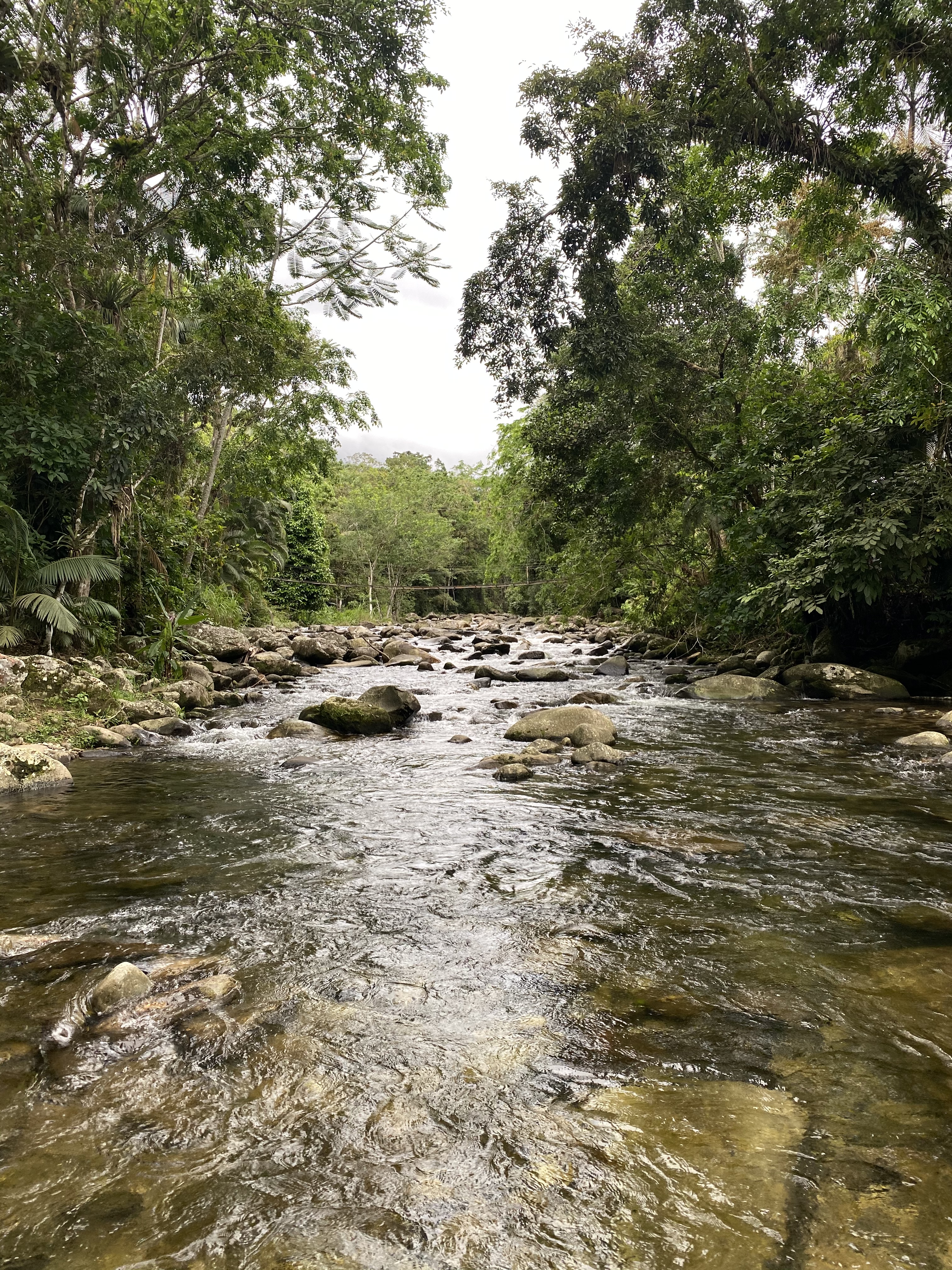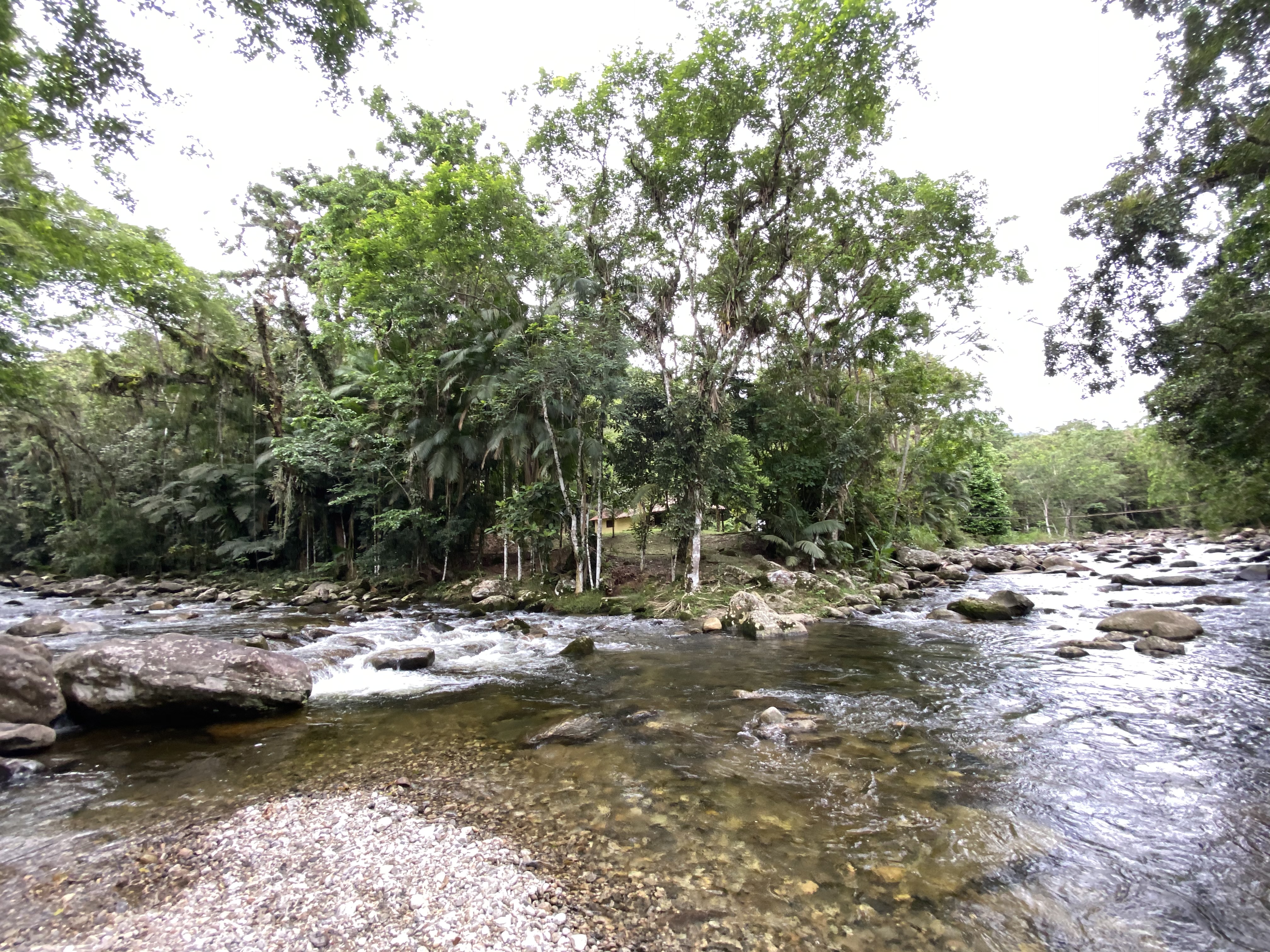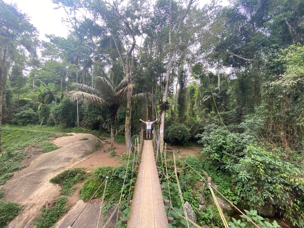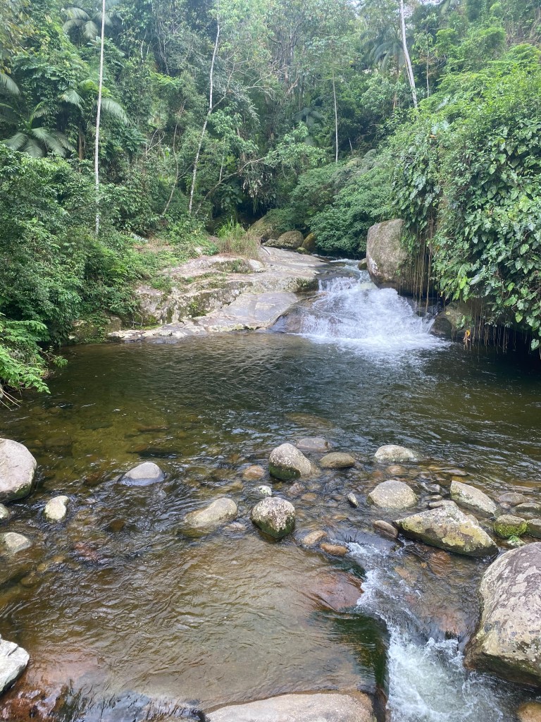 Na volta para Paraty tentamos ir conhecer a Aldeia Pataxó e a Cachoeira do Iriri que fica lá dentro porém estava fechada mas definitivamente vale a pena. E acho legal falar que essa não é a única aldeia indígena da cidade. Como queria um banho de cachoeira, coloquei cachoeira no Google Maps e a próxima que apareceu foi a Cachoeira do Taquari e eu amei. É uma área enorme, cheia de pedras e rio corrente. Esse lugar tem uma energia surreal e só tinha nós lá – perfeito!