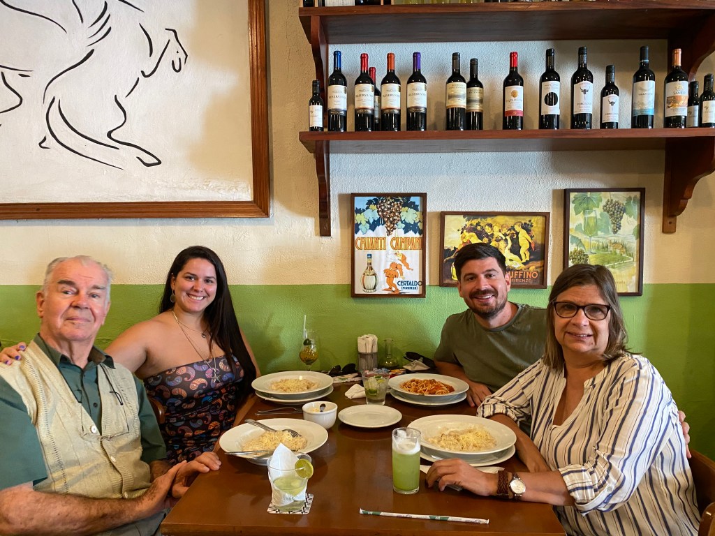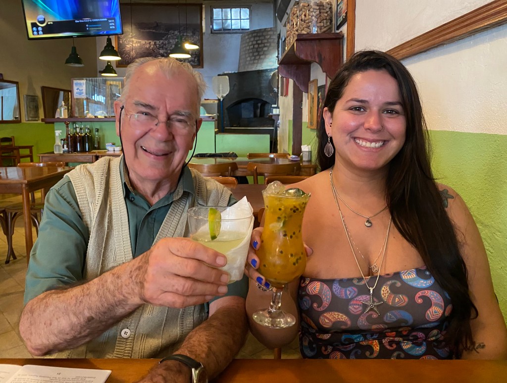 Voltamos para a pousada bem molhados, banho quentinho e descansamos. A noite meu avô nos convidou para jantar no Margarida Café, um restaurante que ele adora e também gostamos muito. Música ao vivo e comida boa – pedimos pizzas.
