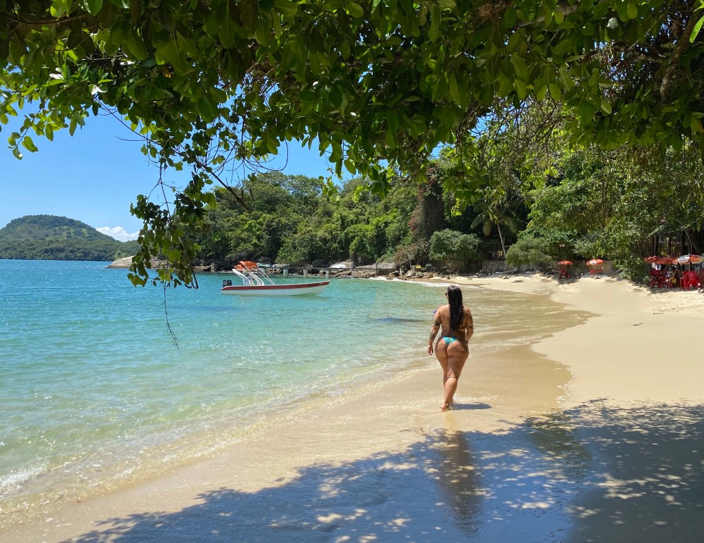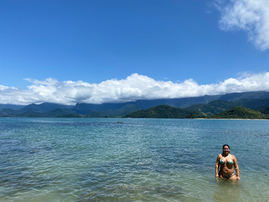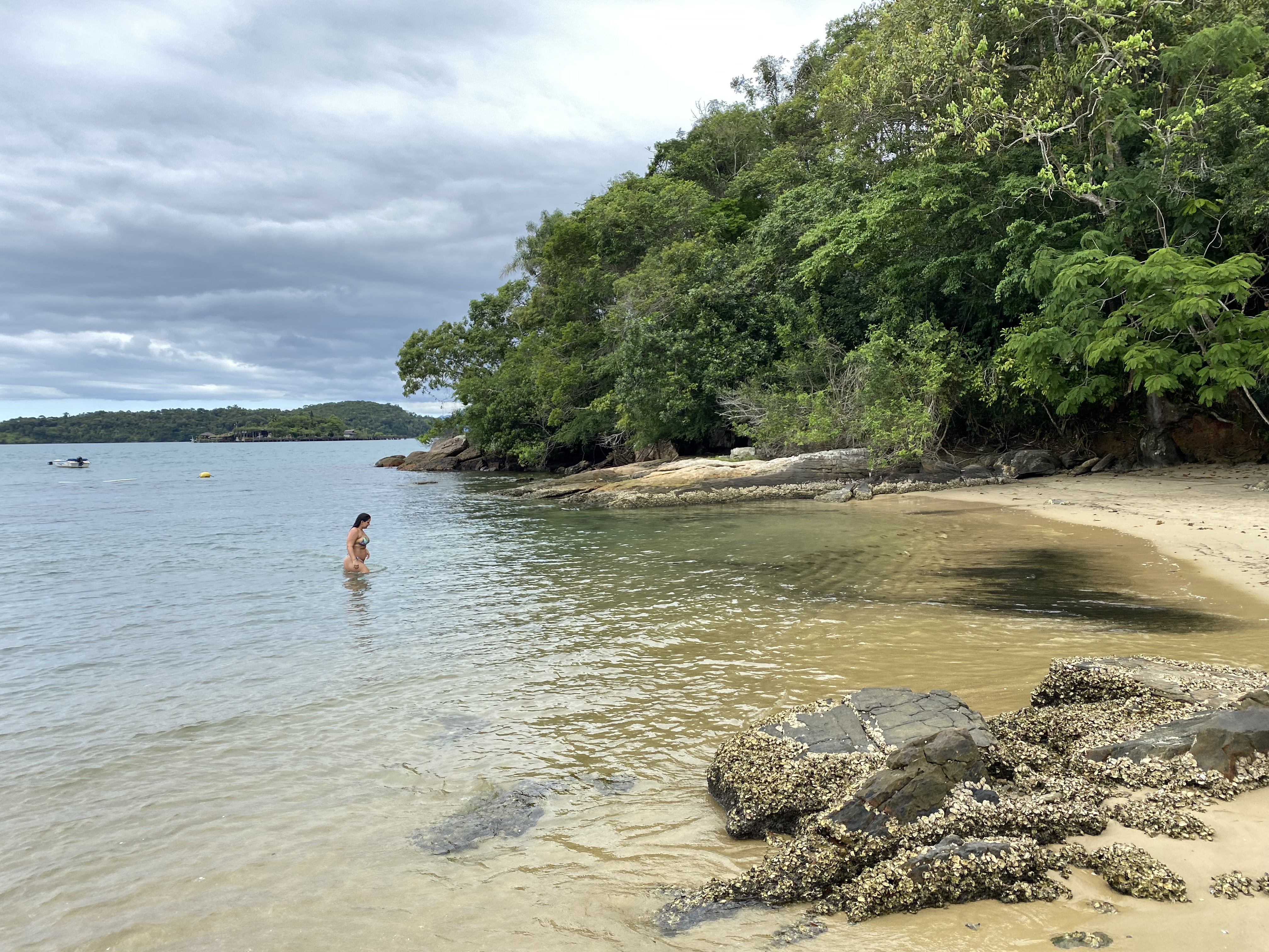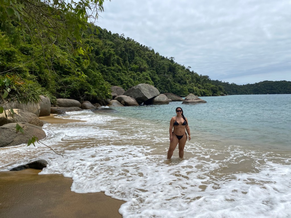Demos a volta na Ilha da Cutia e paramos em uma outra prainha que é na parte mais fina da ilha. Tem um caminho de 2 minutos até o outro lado que é ainda mais lindo. Eu super recomendo essa ilha. É também uma opção para quem talvez não queira gastar muito com o passeio de barco – dá para fechar por hora e ficar menos tempo e essa ilha é bem em frente a Paraty Mirim. Não deixem de conhecer.