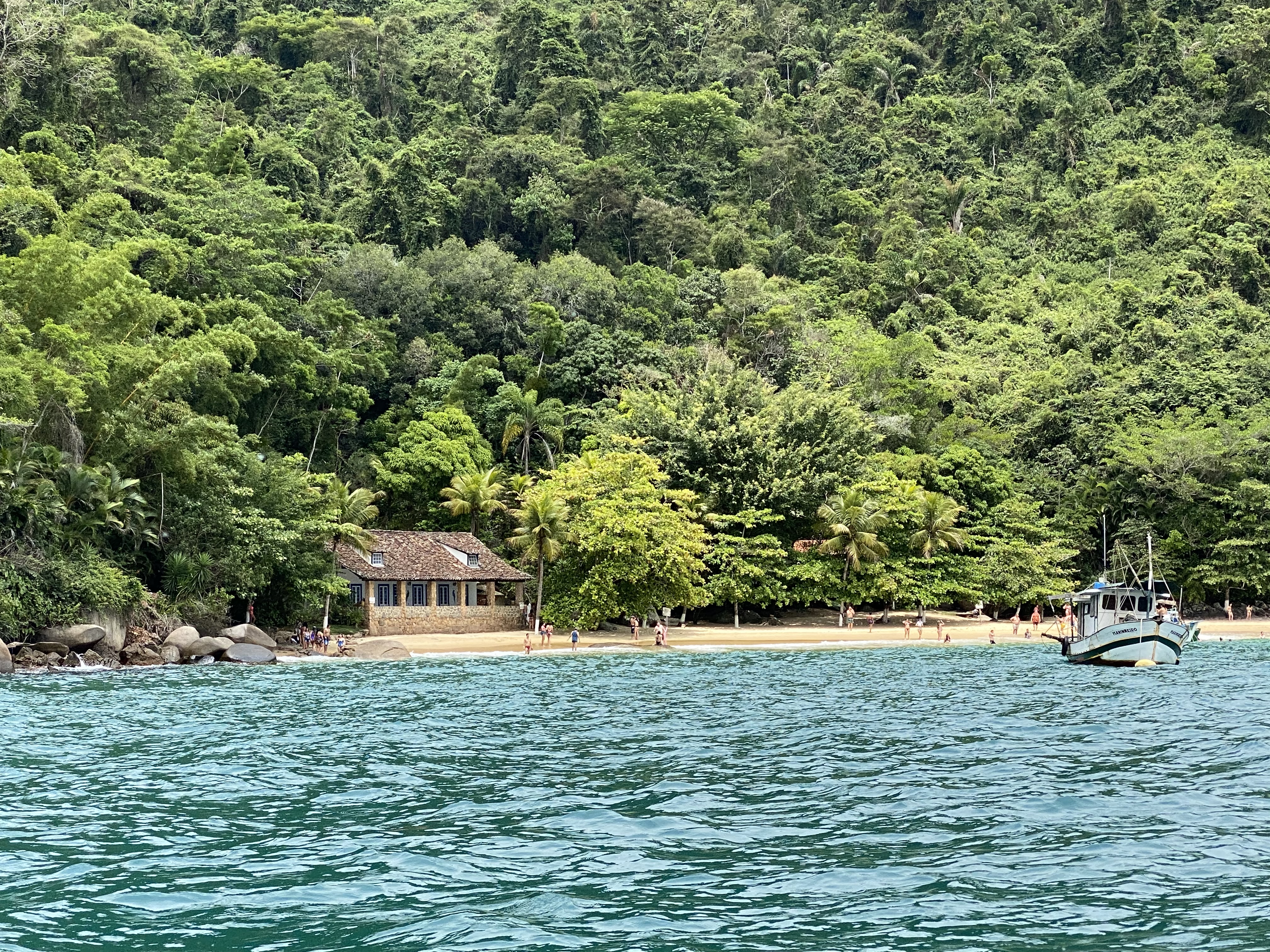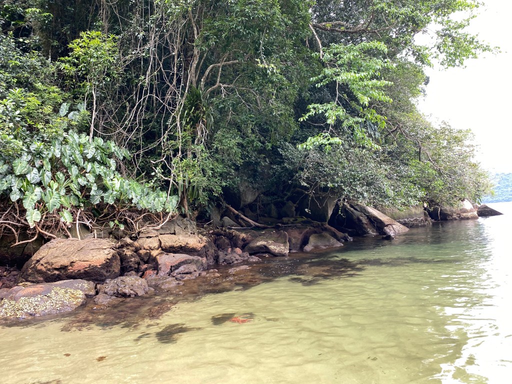 Passamos pela Praia do Engenho e Praia da Paca, umas das 33 praias do Saco. Por lá tem também cachoeira e mangue então eu recomendo ficar no Saco do Mamanguá mesmo para quem quer aproveitar tudo que tem. Mesmo sem sol deu para ver o quão lindo é. Você sabia que esse é o único fiorde tropical do mundo e o único fiorde do Brasil? Fiorde é uma larga porção de mar adentrando as montanhas – aqui no caso as montanhas de Mata Atlântica. Incrível né?!