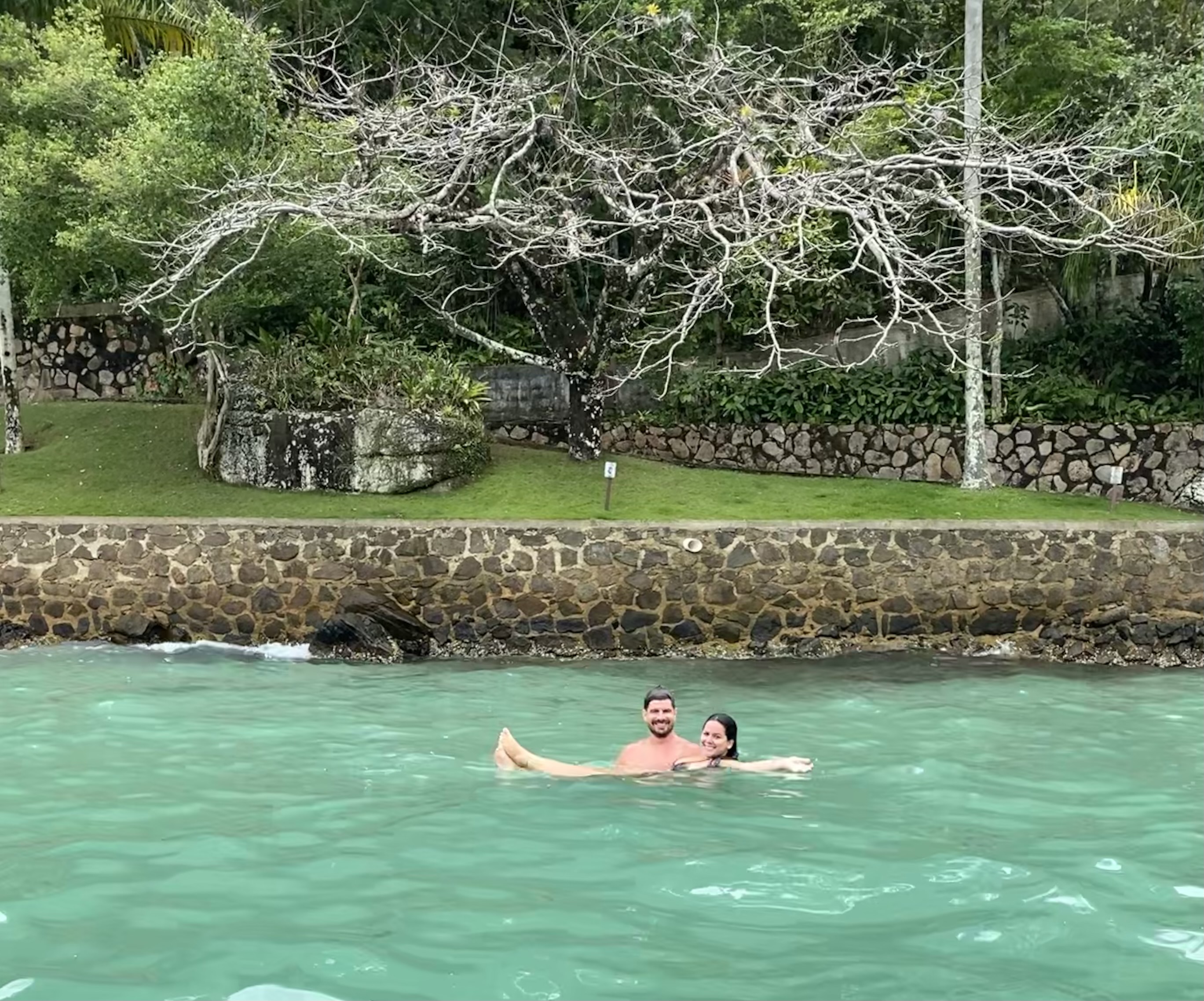 Antes de entrar no Saco do Mamanguá, queria ir conhecer o Saco da Velha, uma praia super linda e que eu amei. Lá tem aonde comer e beber. Ficamos um pouco por lá antes de chegar a primeira escuna vindo do Centro Histórico.