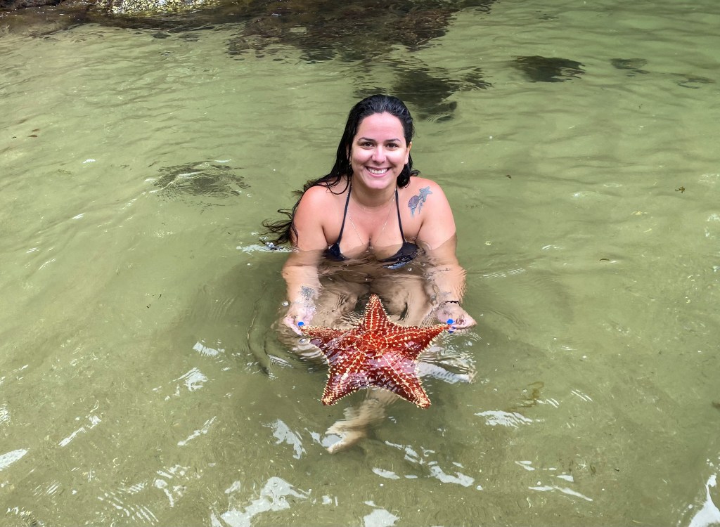 Agora, se tem um lugar que qualquer pessoa que vá para Paraty TEM que conhecer é a Ilha da Cutia. Ele nos levou numa prainhazinha – eu disse pra ele que gosto de praias pequenas e preferencialmente sem ninguém rs – e na hora que dei um mergulho vi uma “coisa” laranja. Quando levantei era uma estrela do mar – sim uma estrela do mar gigante, laranja, maravilhosa. Ao lado tinham algumas bolachas do mar e quando saímos vi mais algumas estrelas, sensacional. Amei. Foi o melhor momento da viagem toda. É muito importante mencionar que nunca se deve tirar elas da água nem por segundos pois elas podem sufocar e morrer. Não ao turismo predatório pois se a gente preservar todos podem ter essa mesma experiência que eu tive.