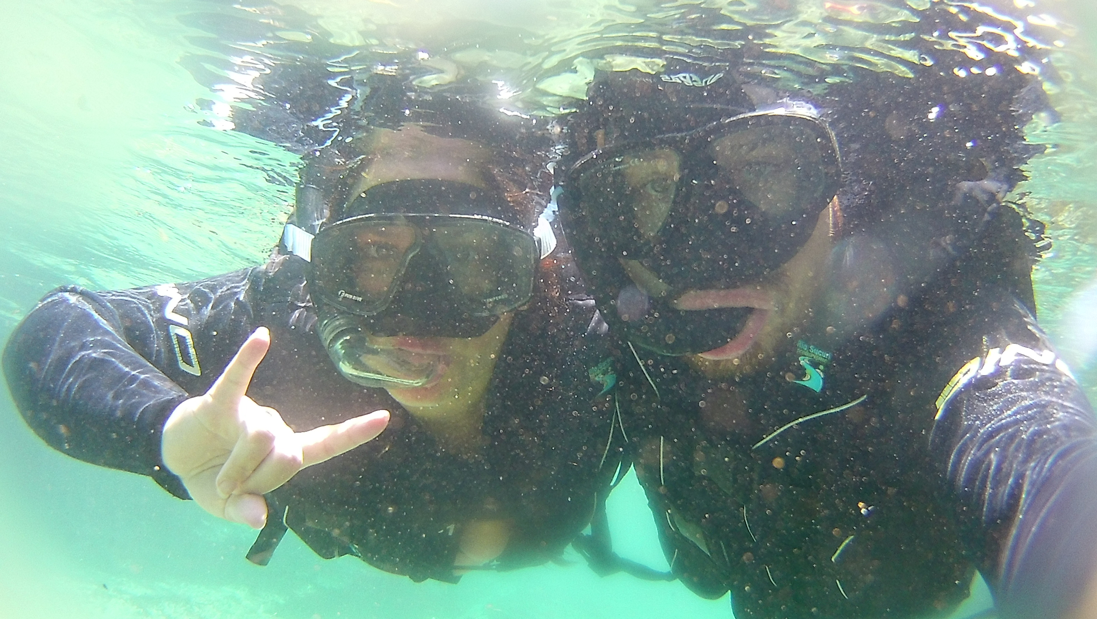 Primeira coisa foi pegar a roupa de neoprene (o rio tem a temperatura média de 23 graus o ano todo), colete salva vidas e um sapatinho. Depois tomamos uma ducha para refrescar – é proibido passar protetor solar ou repelente nesse passeio. Pegamos um caminhãozinho que nos levou até quase a nascente do rio. Fizemos uma trilha tranquila aonde vimos a nascente cheia de Piraputanga – peixe típico da região e no caminho os macacos prego estavam fazendo a festa nas árvores.