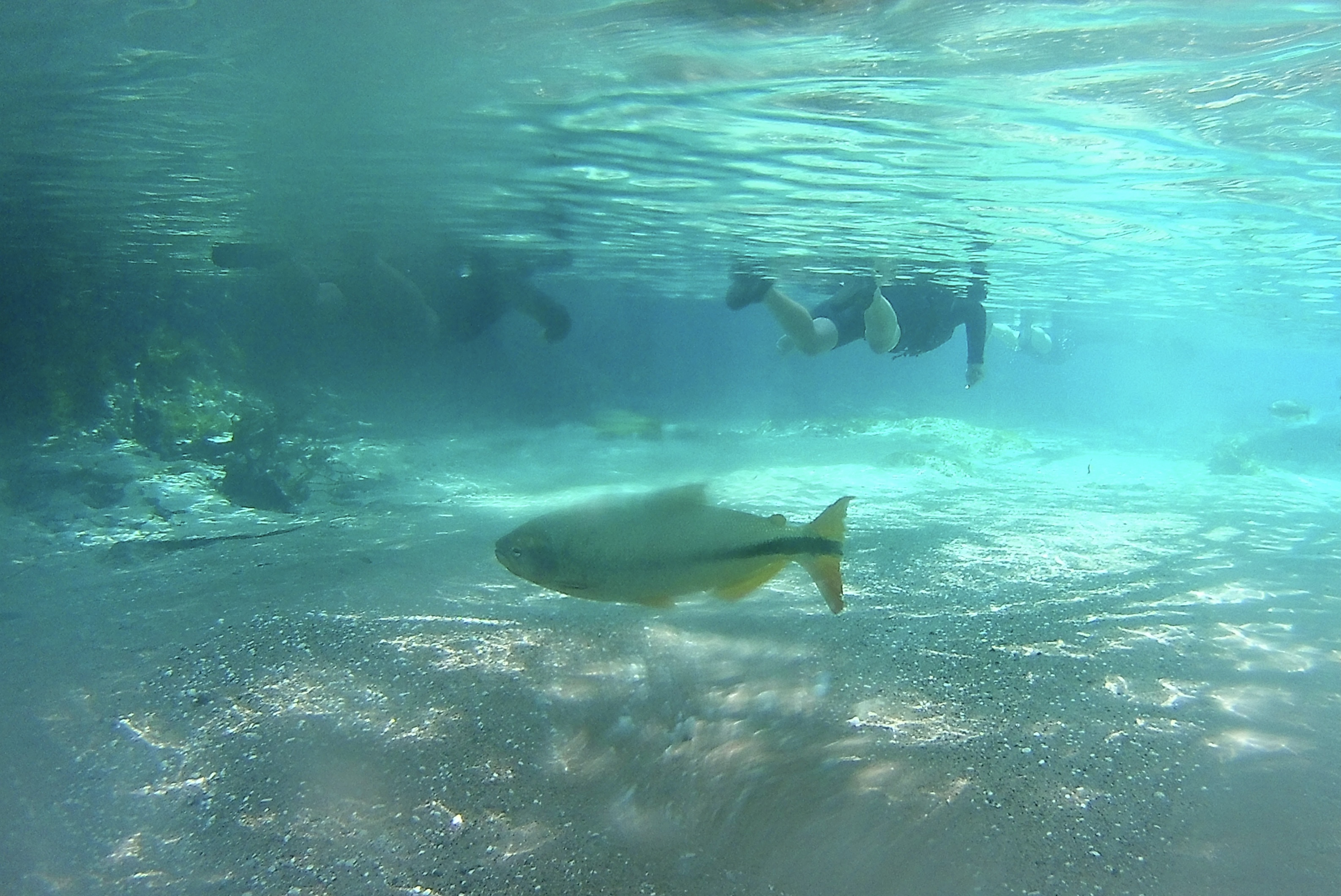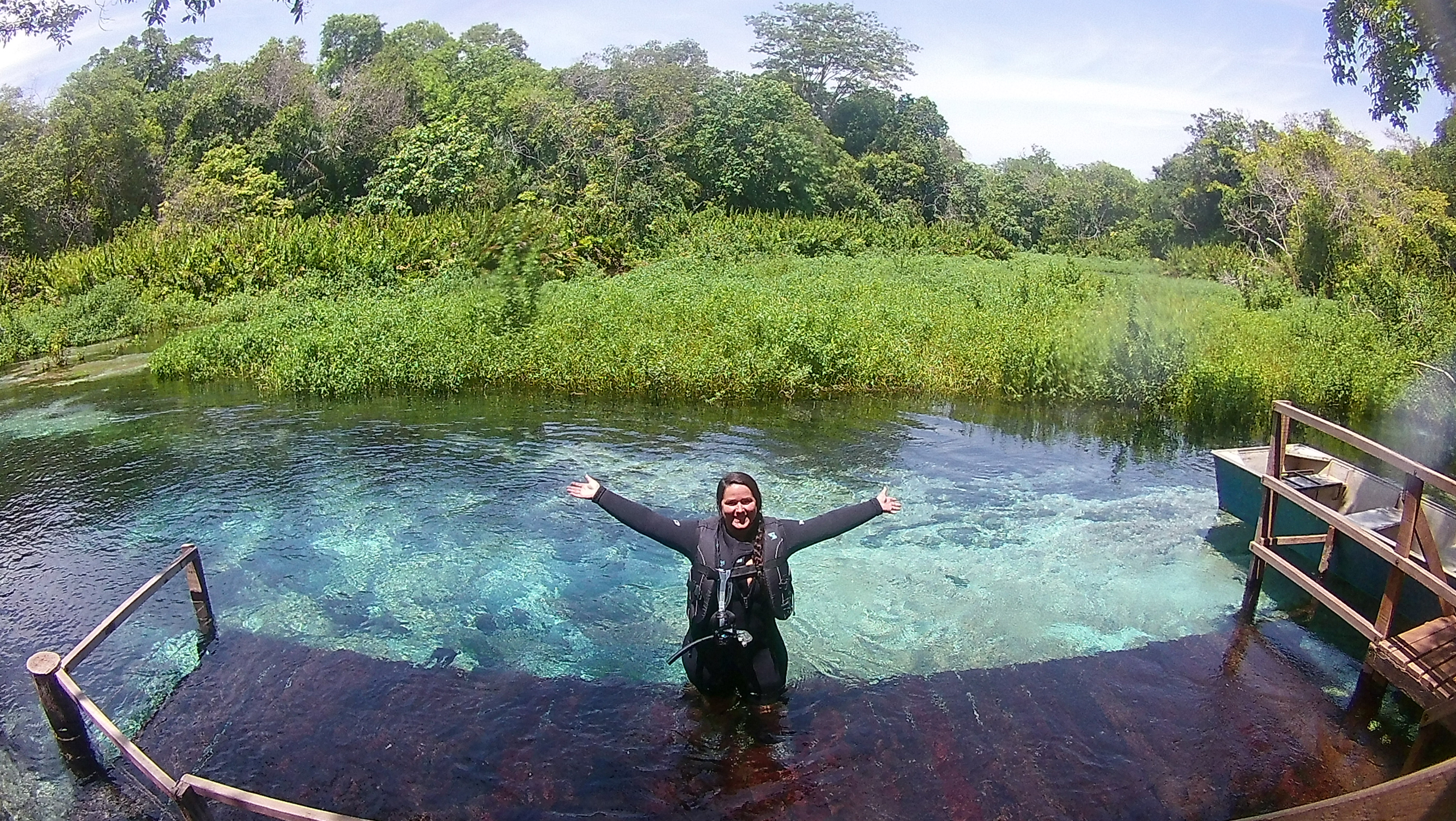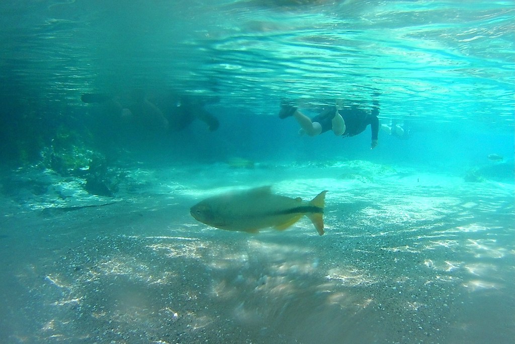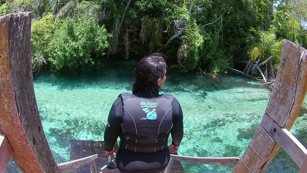 Chegando no Rio Sucuri o guia nos explicou como funcionava a flutuação – basicamente boiar e deixar a correnteza te levar. Inclusive pessoas que não sabem nadar podem fazer o passeio. Um barquinho nos acompanha o trajeto todo que dura cerca de 50min caso alguém se canse ou queira descansar.