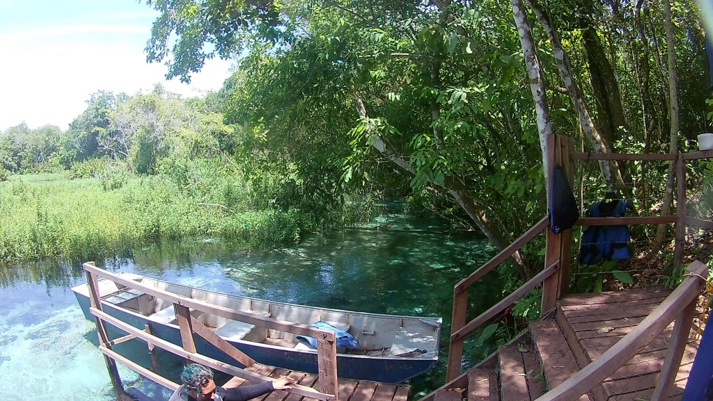 O rio é realmente muito cristalino e tinham muitas espécies de plantas aquáticas, além lógico dos peixes e uma lontra que vimos caçando – melhor momento do passeio. Em um momento que resolvi virar pra cima, vimos uma família de Bugios (um tipo de macaco maior) comendo frutinhas nas árvores beira rio – muito bacana. Sobre o passeio, eu achei o tempo o suficiente e gostei do que vi. Recomendo.