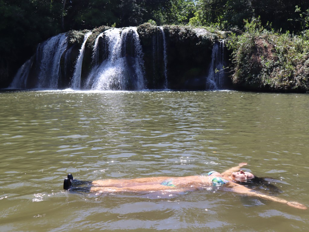 Depois desse passeio fomos para a Praia da Figueira (R$67 ou R$25 se você for do MS) que fica bem pertinho do Rio Sucuri. Lá é um dos diversos balneários da cidade – o que eu recomendo caso você fique vários dias na cidade ou queira conhecer mais um lugar investindo pouco já que é o tipo de passeio mais barato de Bonito.