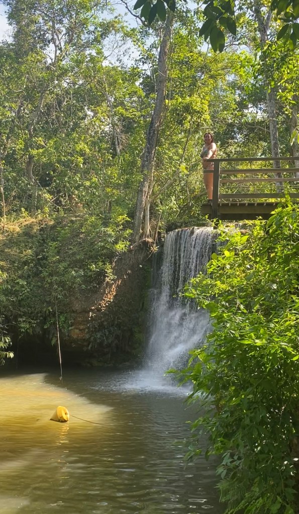 De lá, andamos mais um pouco até chegar na Cachoeira do Salto e bom, como o nome diz, dá para pular de uma plataforma lá. São 6 metros de altura e cerca de 3 de profundidade. Deu um medo mas eu pulei com medo mesmo – vai super fundo!