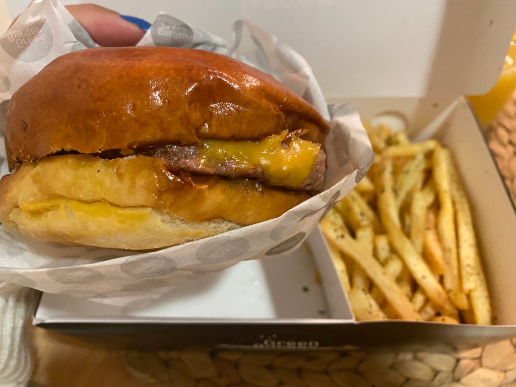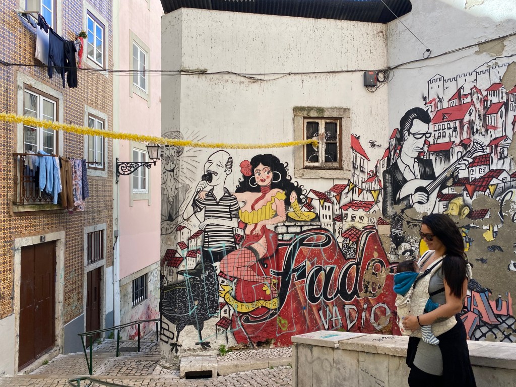 E nessa de ficar cada semana num canto de Portugal, acabamos ficando também em Lisboa em um AirBnb no bairro Alfama – um dos mais antigos da cidade, conhecido pelo Fado – música tradicional portuguesa. O bairro é cheio de subidas e descidas e o mais legal é se perder por cada cantinho com seu charme, casas antigas, grafites e azulejos. Esqueçam carrinho de bebê por lá, melhor optar por um sling. Na primeira noite pedimos um hambúrguer que super recomendo: Green Burger.