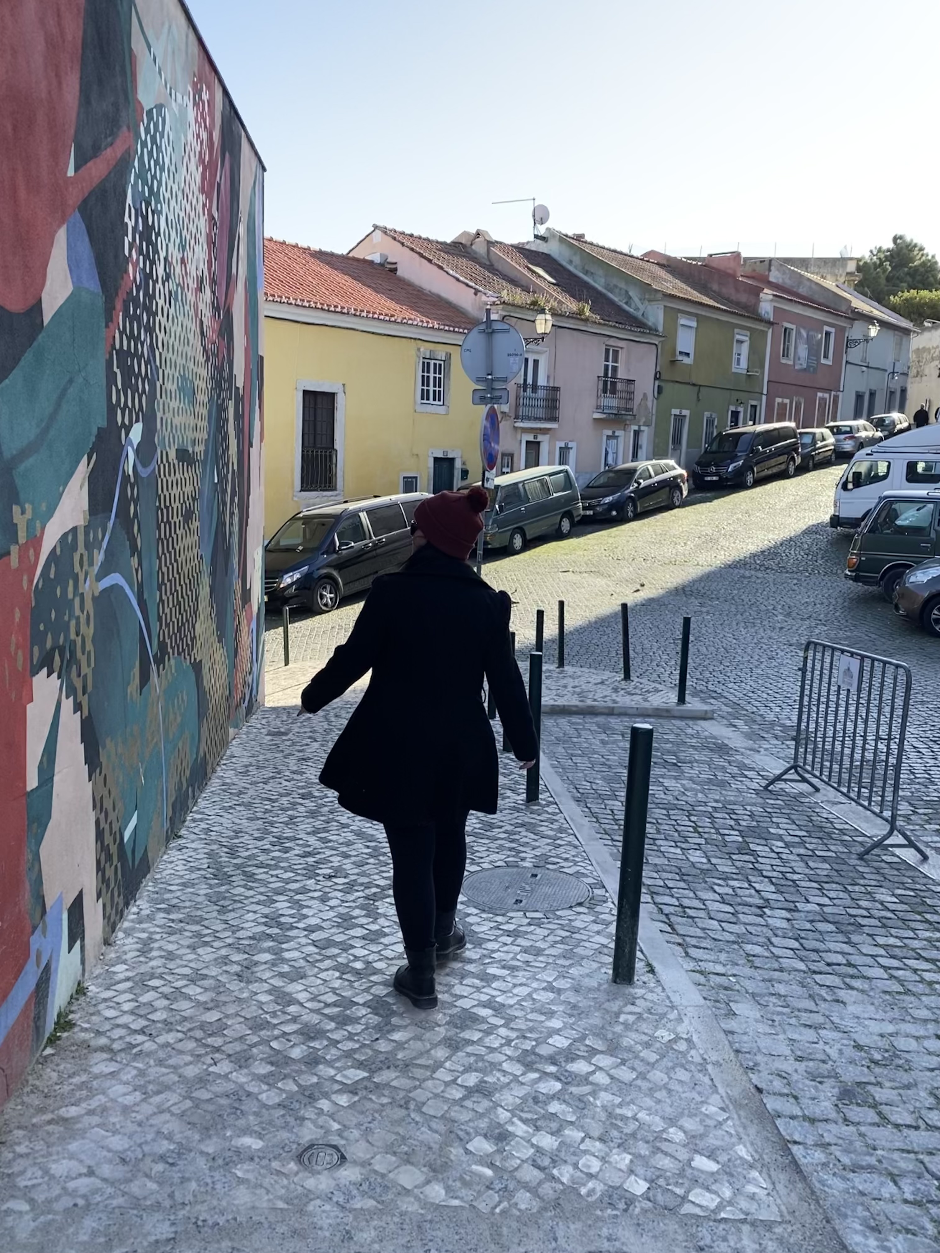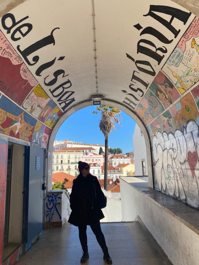 Ficamos bem do lado da Igreja Paroquial de São Miguel e de lá era fácil acesso andando para todo canto. Primeira parada foi no Mural da História de Lisboa por Nuno Saraiva – uma ilustração de diversos acontecimentos na cidade, incluindo o famoso terremoto de 1755. Ao fundo é possível ver a Igreja de São Vicente de Fora.