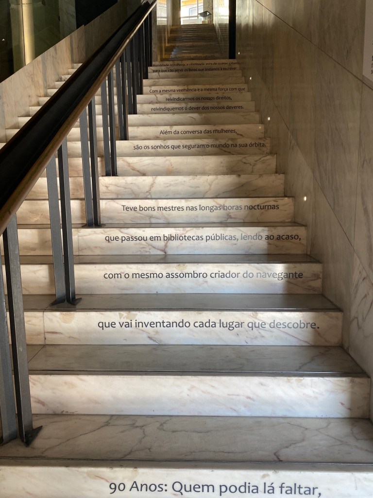 Fomos descendo, passeando pelas ruas com suas casas de azulejos – marca registrada de Portugal – passando pelo Arco da Conceição. Seguimos até a Casa dos Bicos que foi construída em 1523 e no piso térreo é possível ver as ruínas da muralha pertencente a Cerca Moura. Lá também fica uma exposição permanente sobre José Saramago.