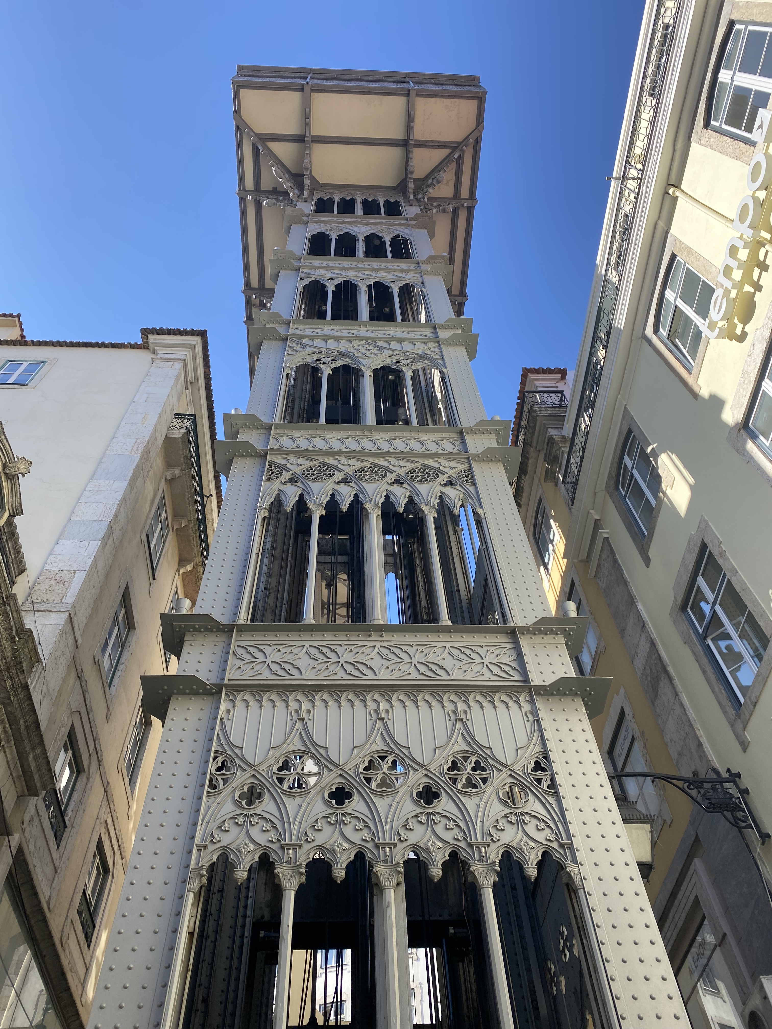 Continuamos andando até o Elevador de Santa Justa – ou Elevador do Carmo que faz a ligação entre a Rua do Ouro com a Rua do Carmo. Fiquei impressionada com a beleza daquela estrutura enorme de ferro. Quase em frente, tem um elevador gratuito para subir para o Largo do Carmo que só vimos na hora de descer a rua pois fica como se fosse dentro de uma loja – olha a foto aí para entender hehe. Basta seguir o Google Maps que ele dá a direção de cruzar por aí.