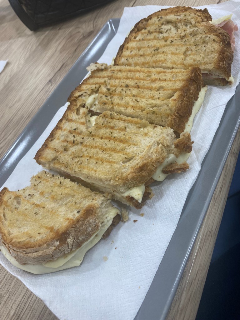 Aproveitamos que meu pai estava em Portugal – e de carro – e fomos passar uma tarde em Setúbal que fica cerca de 40 minutos de Lisboa na margem sul. Como chegamos na hora do almoço, fomos direto para o Mercado do Livramento e comi uma Tosta super boa de fiambre e queijo (tipo um misto quente). Achei legal as esculturas em tamanho real e os azulejos ilustrando o mercado.