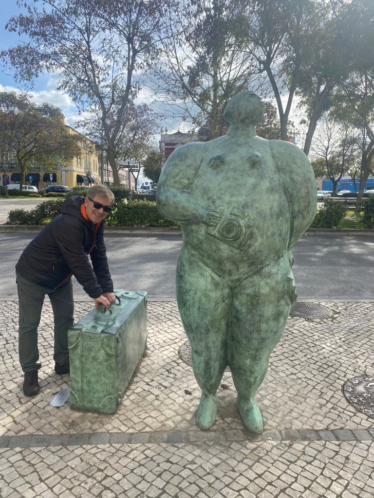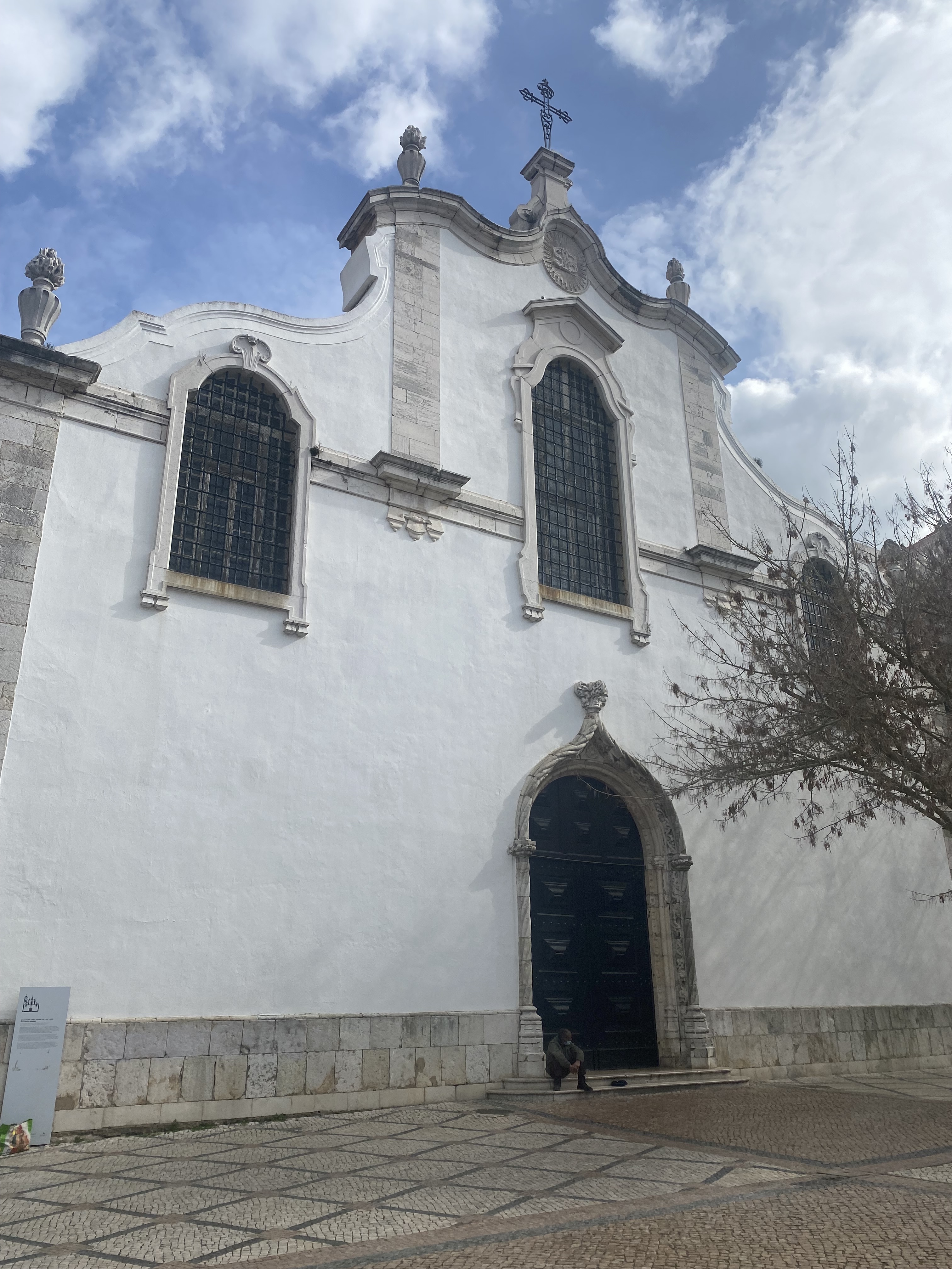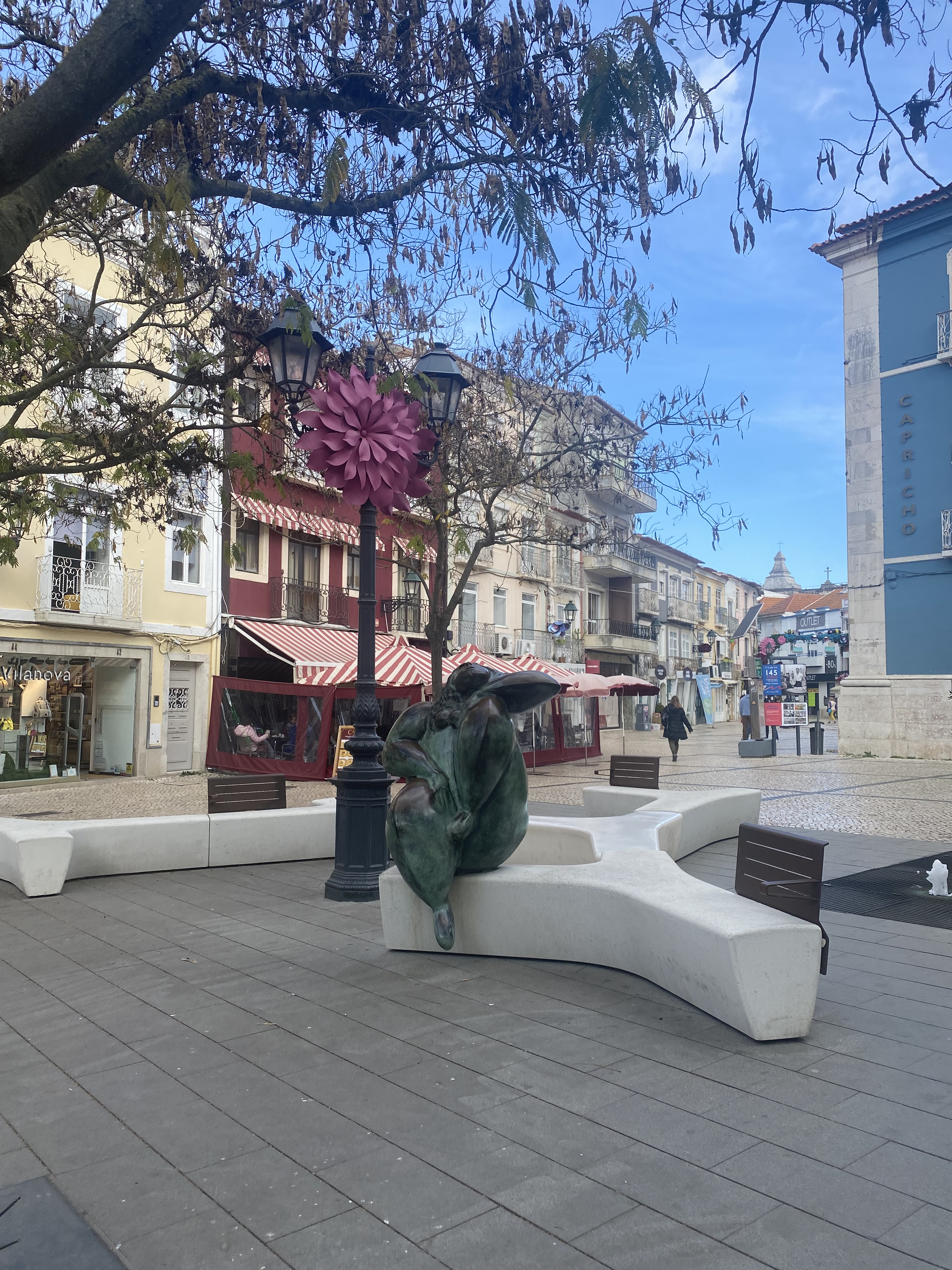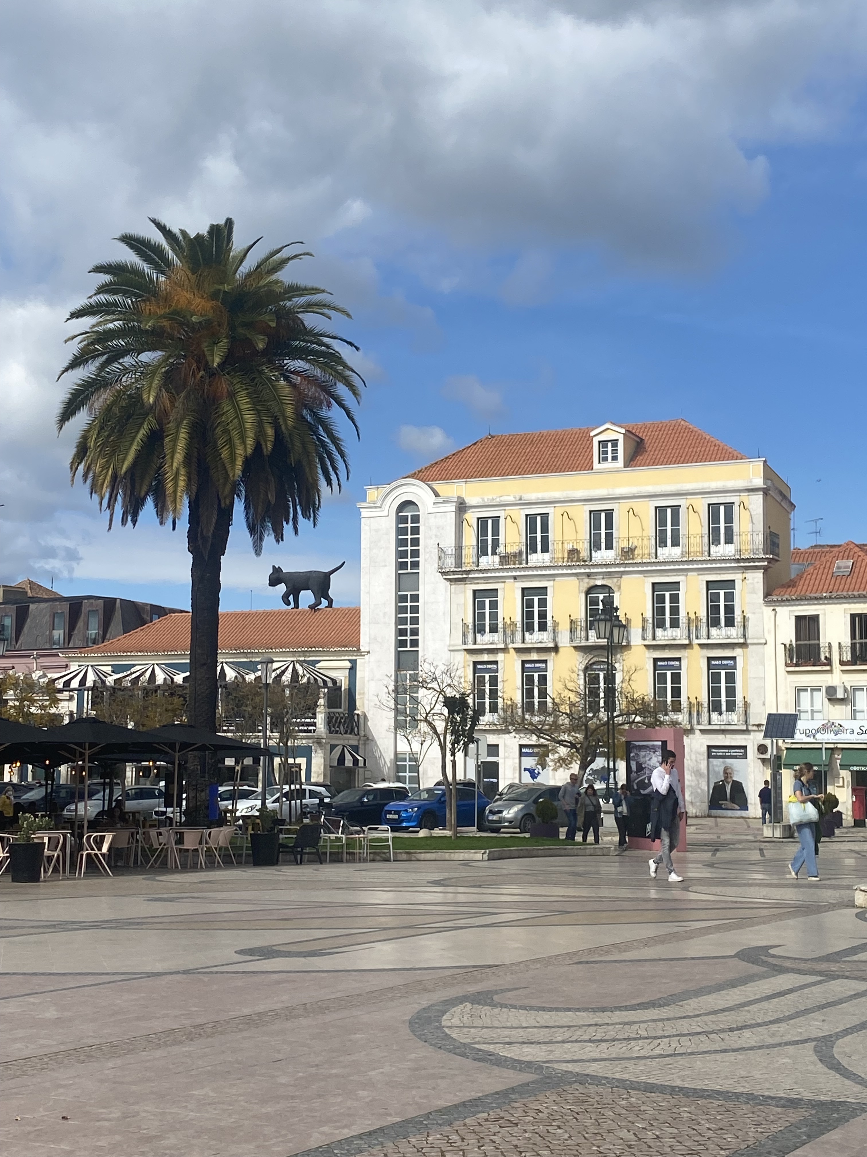 Andamos até a Praça de Bocage aonde fica a Igreja de São Julião mas o que chamou atenção mesmo foi a Casa de Turismo que tem uma escultura de gato em cima do telhado hehe. Caminhamos então pelas ruas de Setúbal até a Igreja da Sé ou Igreja de Santa Maria da Graça. Achei um charme as ruazinhas e seus detalhes – e as esculturas pela cidade também.
