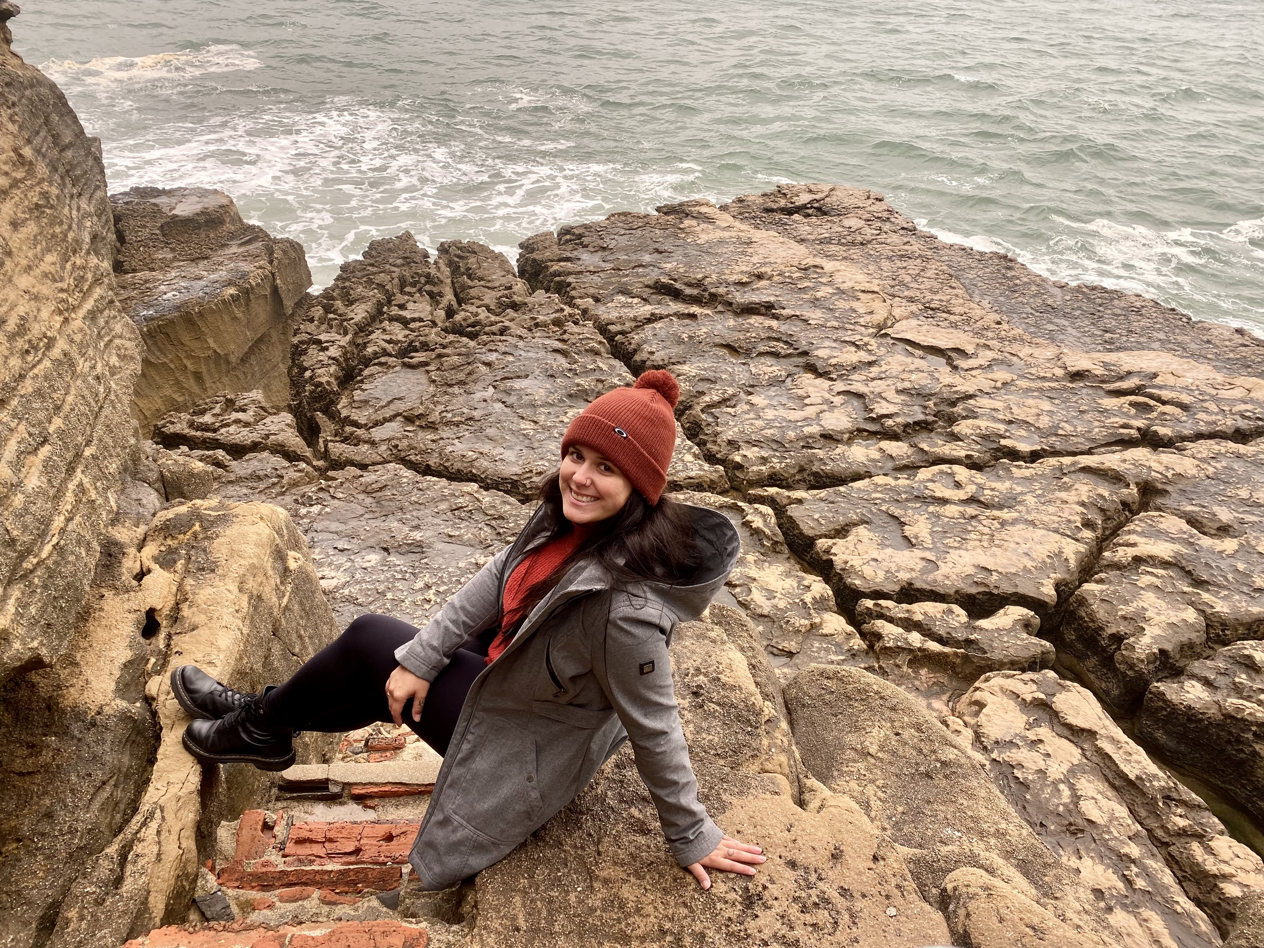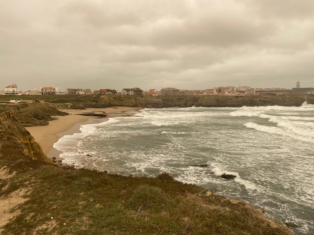 Peniche é famosa pelas ondas e praias e fica menos de meia hora de Caldas da Rainha no estado de Leiria. O dia estava bem frio e ventando muito mas mesmo assim fomos lá. Primeira parada foi no Ilhéu da Papôa. Deixamos o carro e fomos andando até a ponta e achei muito lindo. O mar estava mega mexido e agitado e o cenário num contexto geral combinou – mas confesso que super quero voltar para ver o pôr do sol de lá num dia de verão. Do Ilhéu se tem vista para a Praia do Portinho da Areia do Norte.
