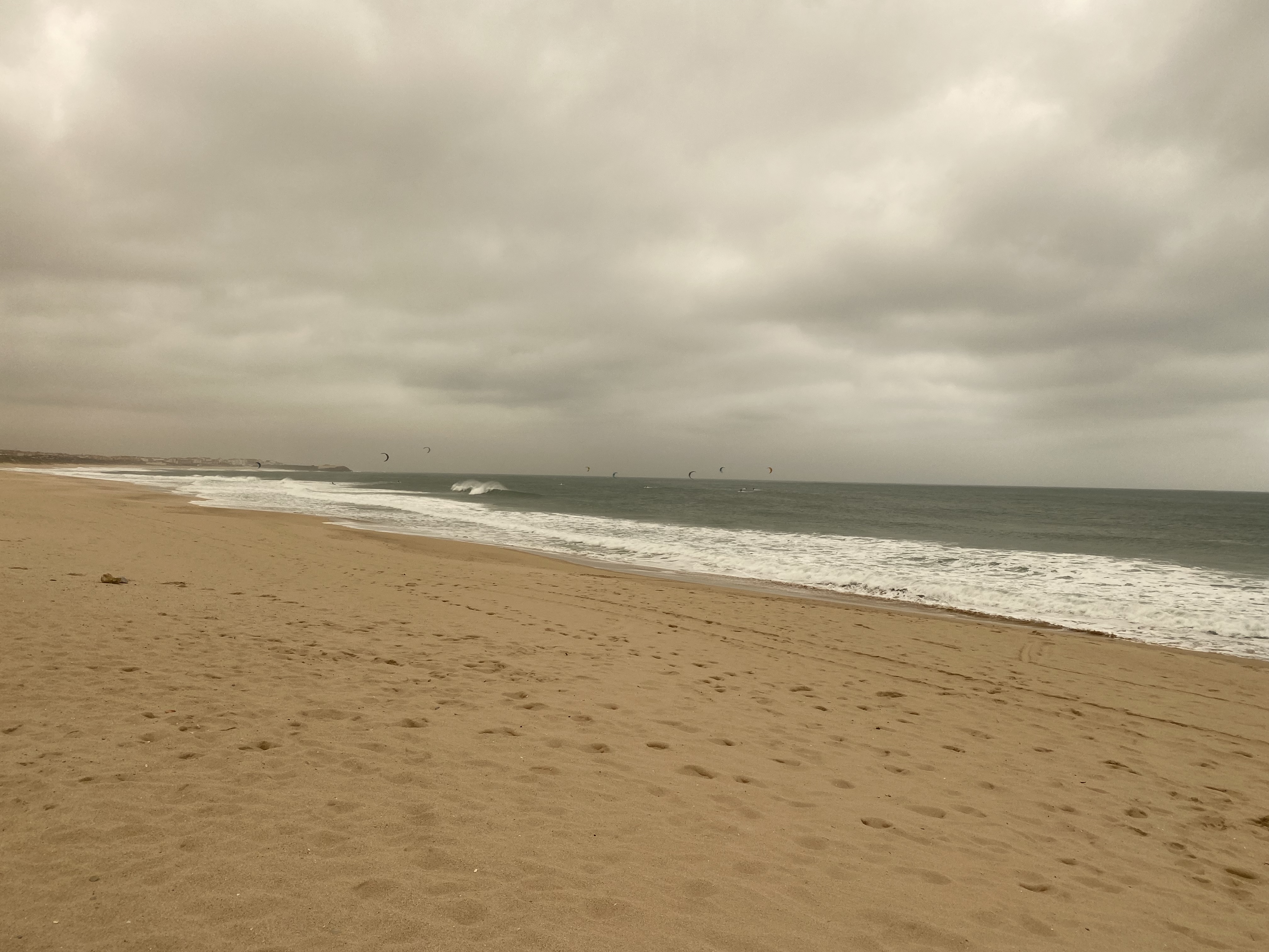 Fizemos uma breve parada na Praia do Medão ou praia dos Supertubos como é conhecida, famosa entre os surfistas e para minha surpresa, mesmo com aquele frio e vento estava cheia deles no mar além de praticantes de kitesurf. A praia é super extensa e tem quiosques.