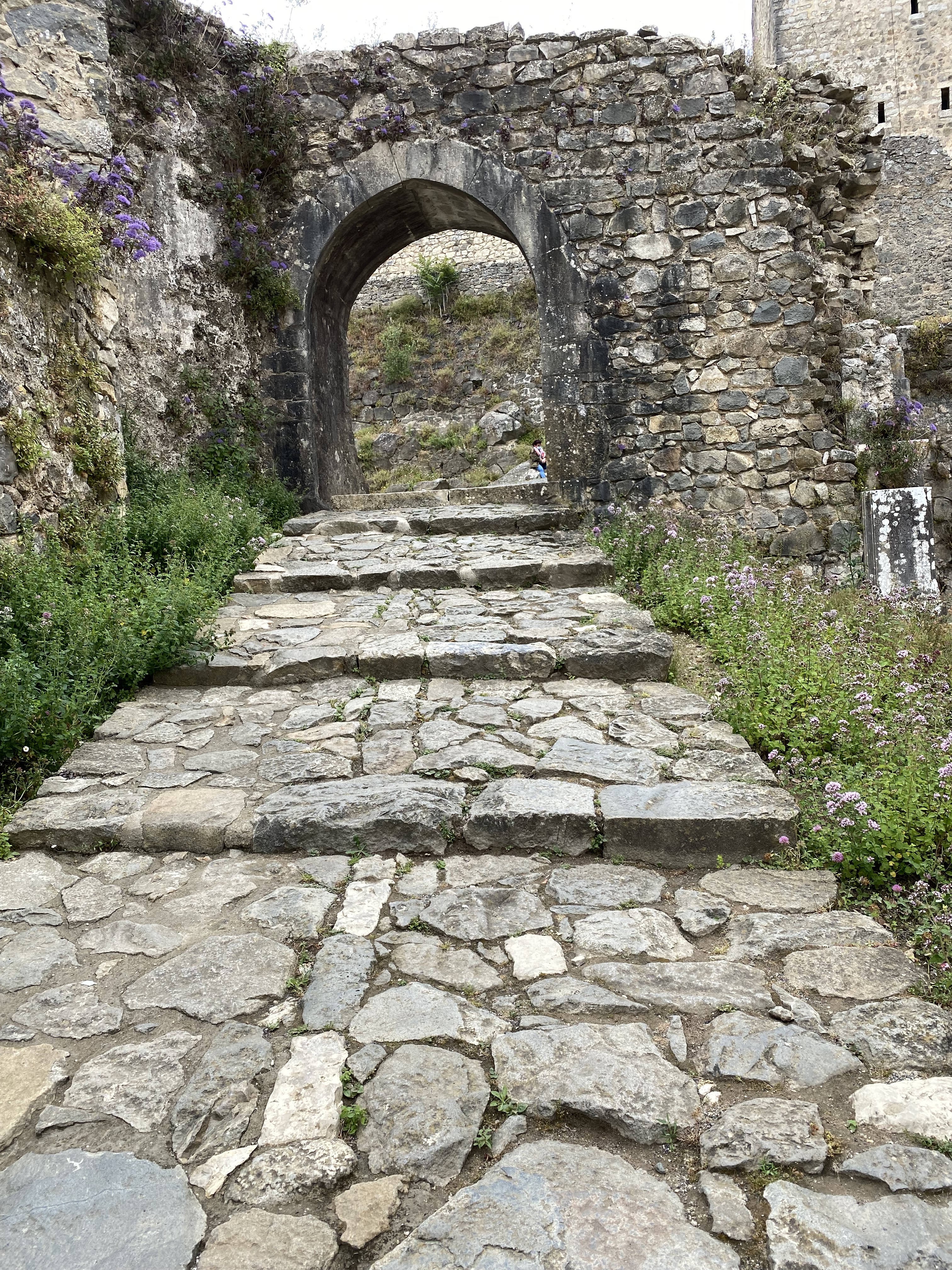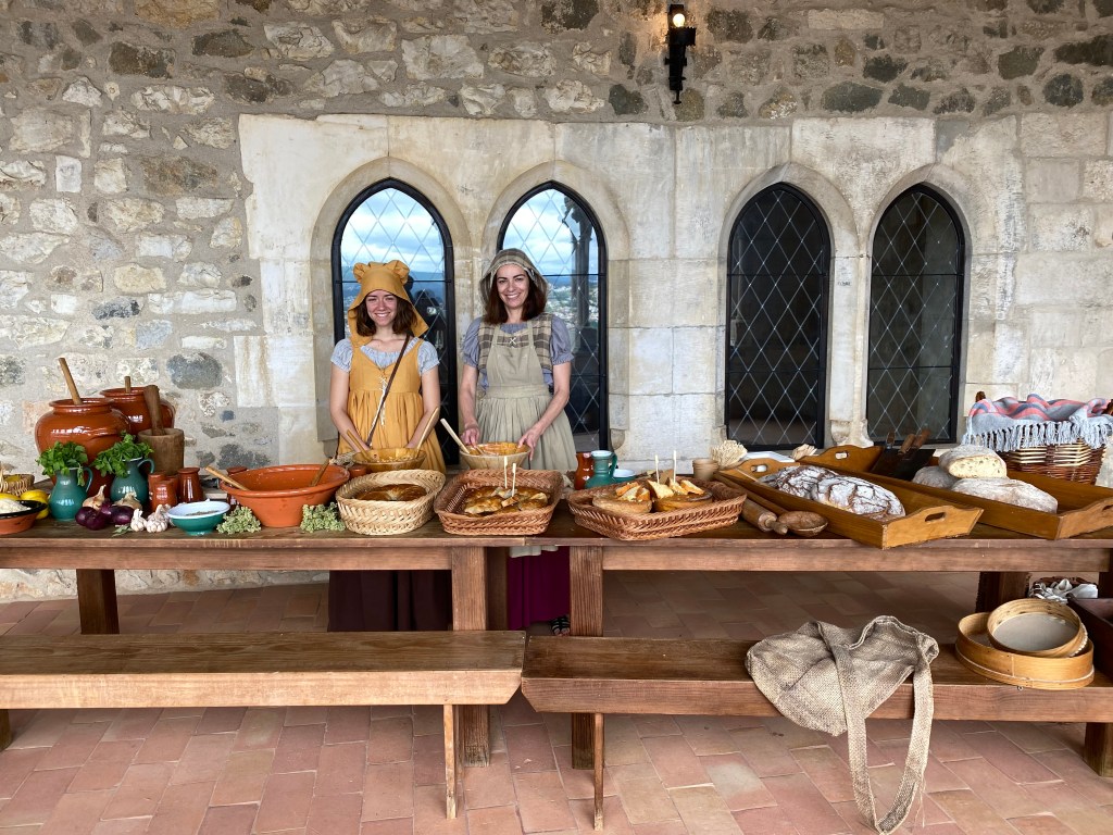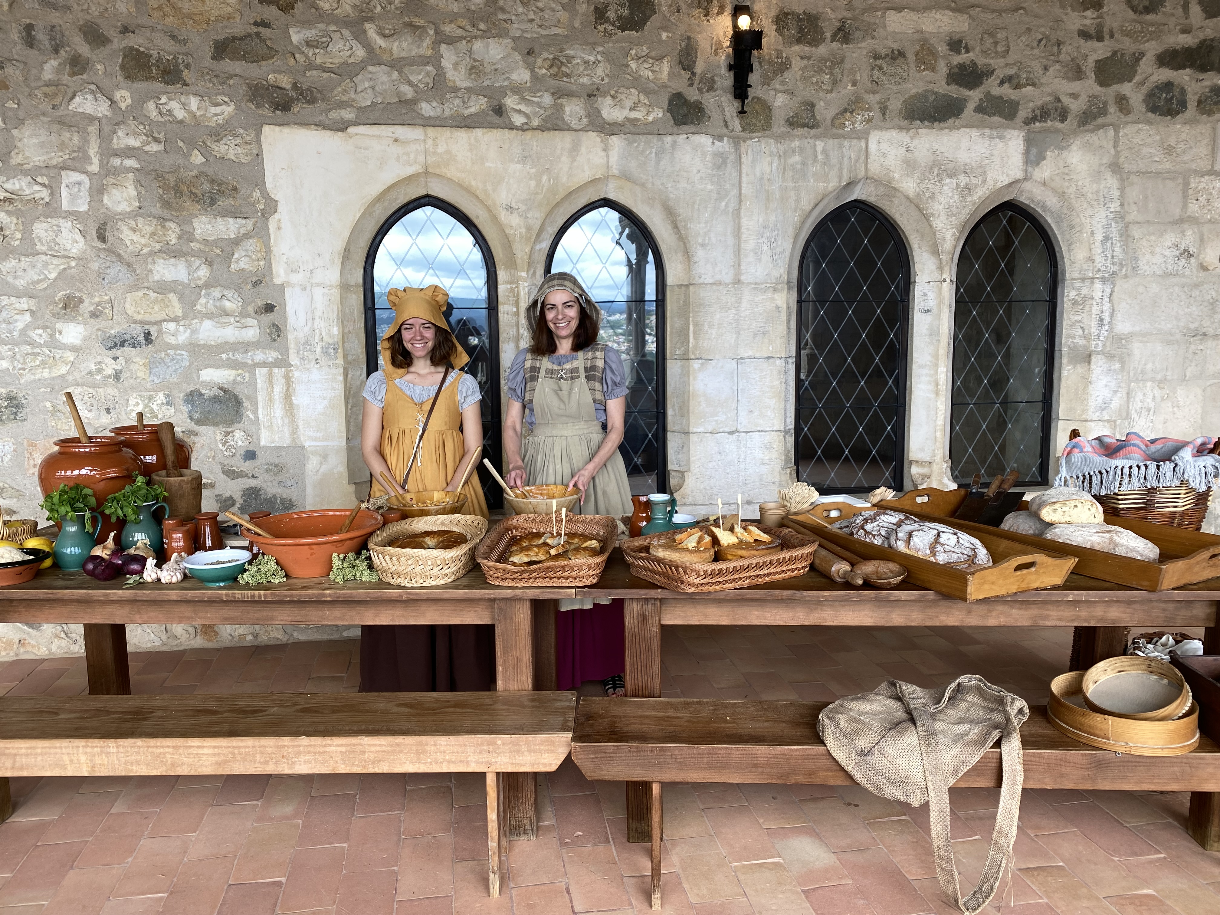 O castelo fica em um ponto bem alto da cidade e tem uma vista linda que eu achei que vale a pena pela vista além lógico da oportunidade de conhecer esse castelo medieval. O lugar mais bonito é sem dúvidas essa parte dos arcos e era ali também que tinham mulheres com roupas de época servindo pão de ló e bolos com especiarias para os que passavam além de alguns outros atores vestidos á caráter para trazer mais realidade ao local.