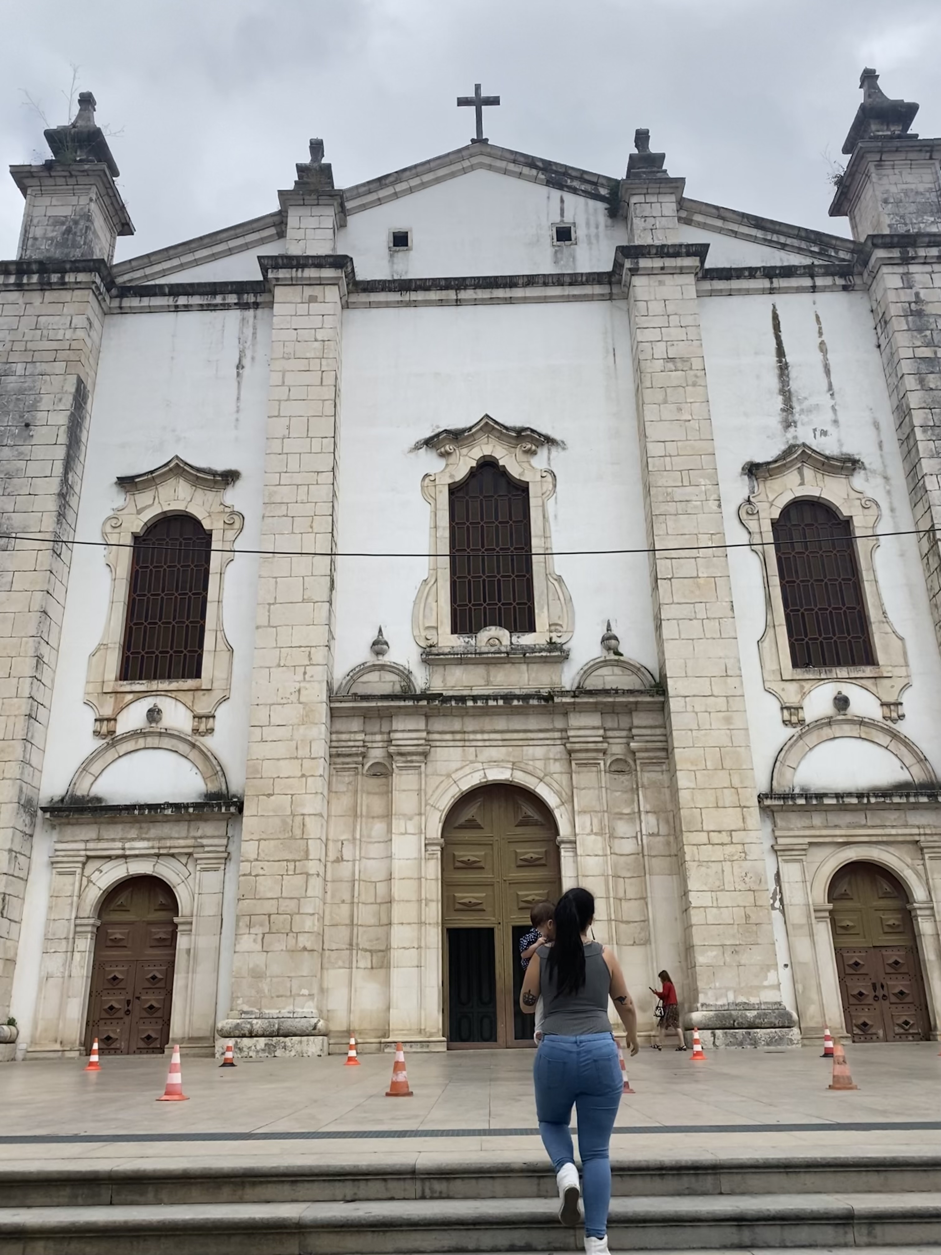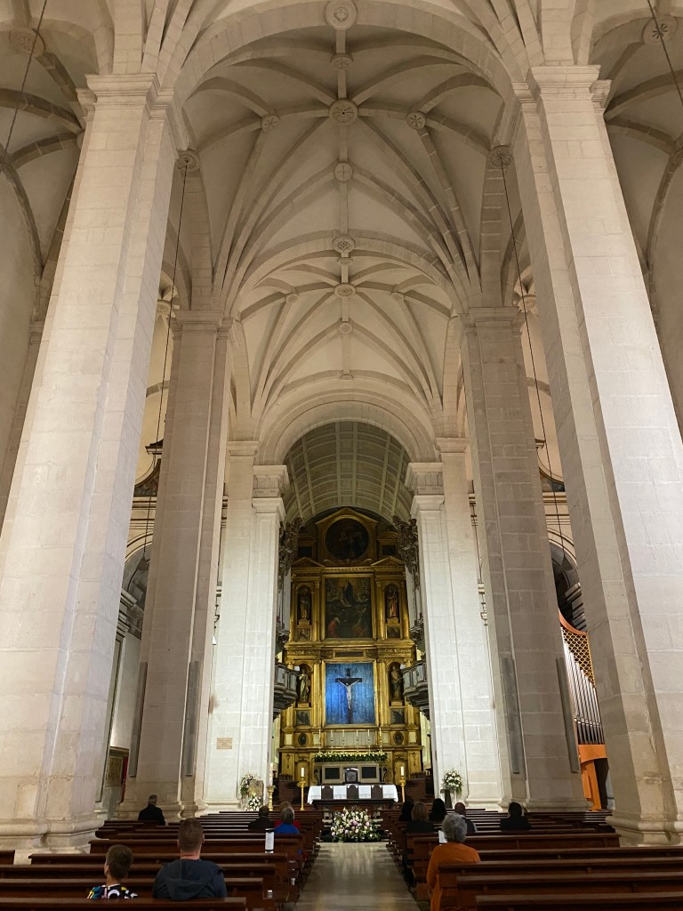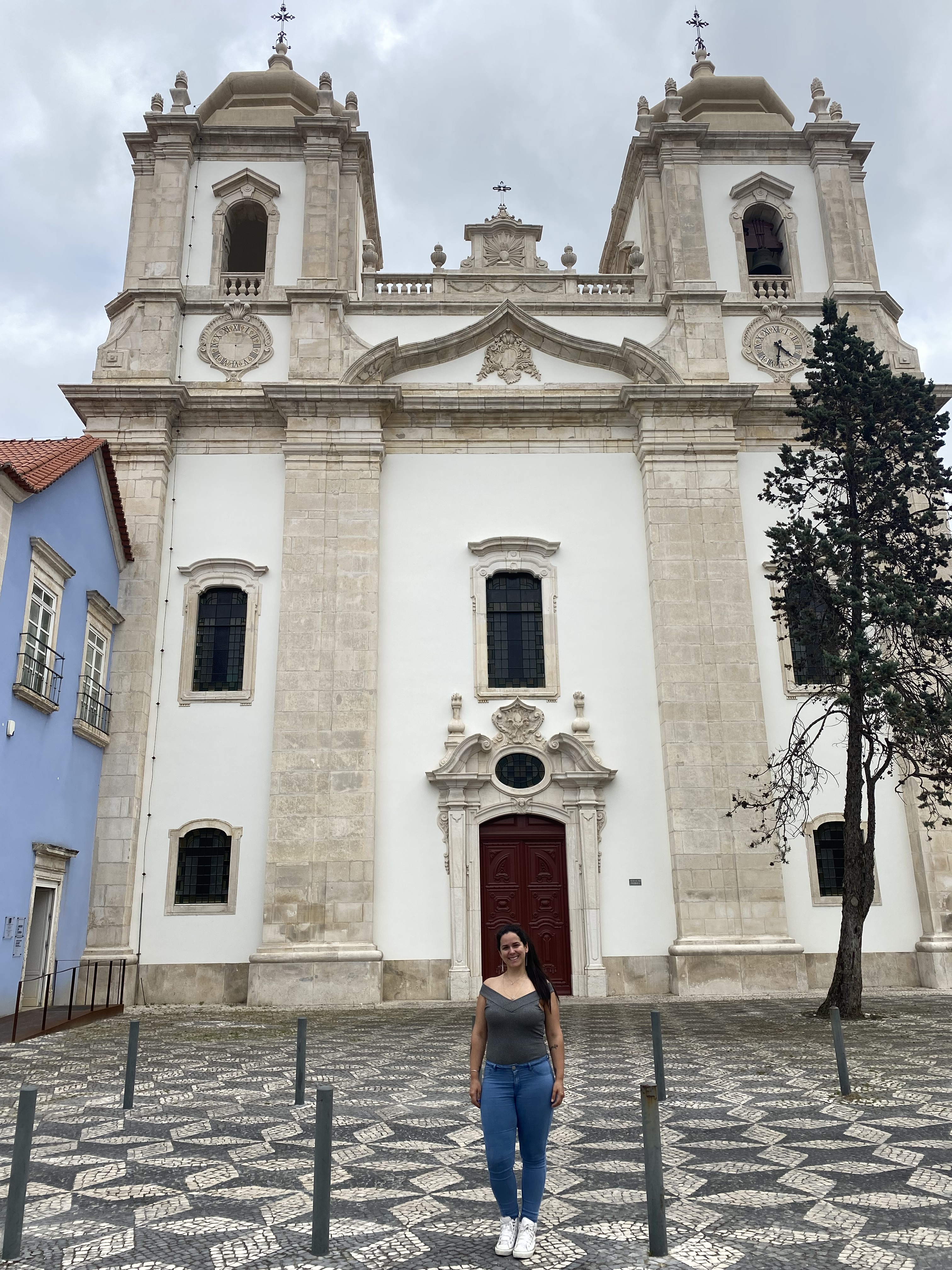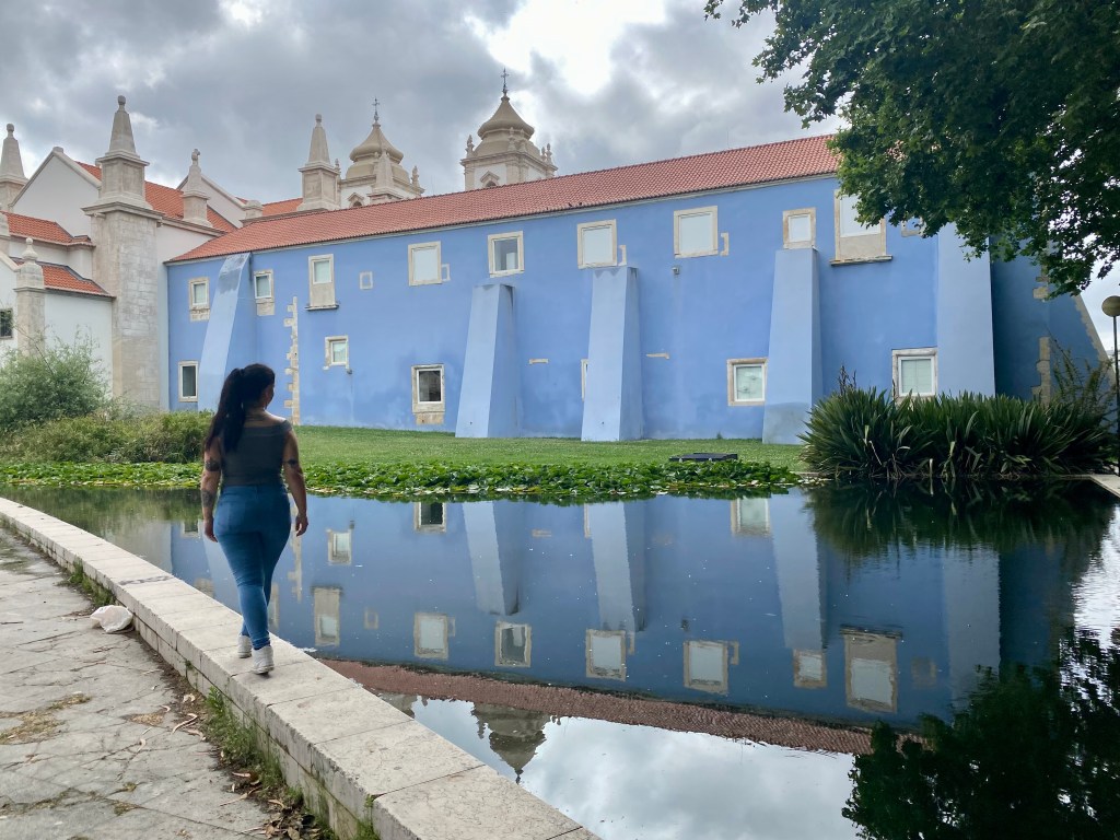 Fomos caminhando pela Rota Histórica de Leiria passando pela Igreja do Espírito Santo, Fonte das 3 bicas e alguns outros prédios e locais até chegarmos a Igreja e Convento de Santo Agostinho. A parte de trás dele é linda pois tem esse lago que reflete, eu amei.