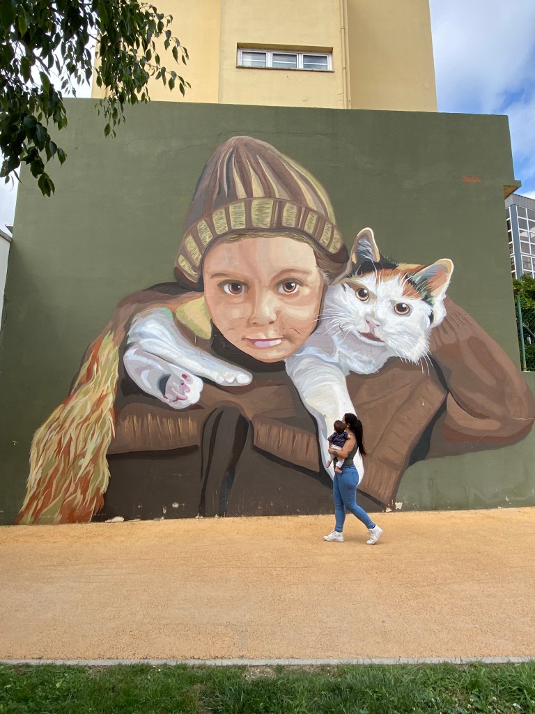 Voltamos beirando o Rio Lis e foi super agradável pois o chamado Percurso Polis é exclusivo para pedestres e ciclistas. No caminho vimos três artes bem interessantes, uma do artista polônes Bezt, uma do Bordalo II – ele transforma lixo em arte e também já vimos no Porto e em Lisboa – e outra do Projecto Matilha.