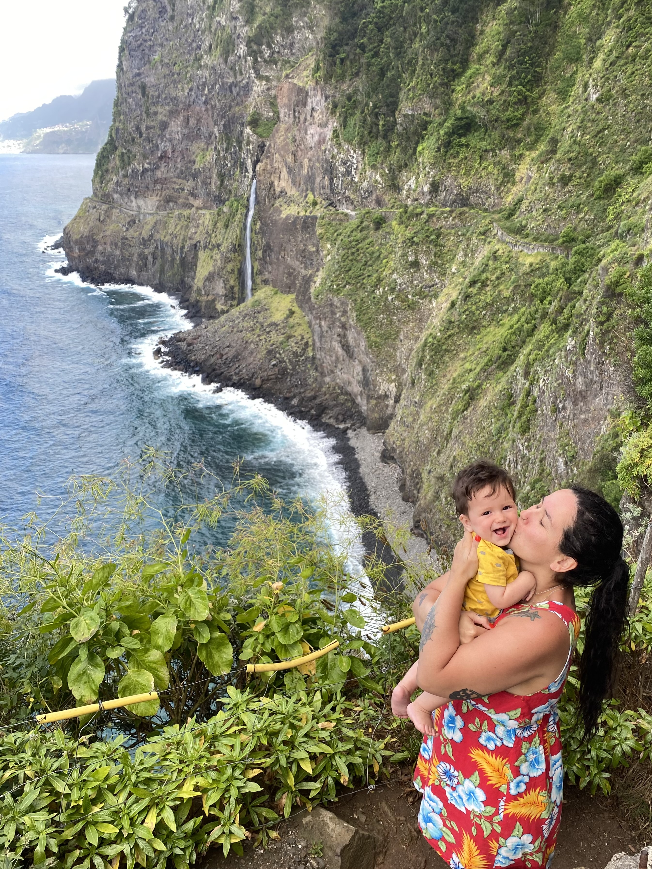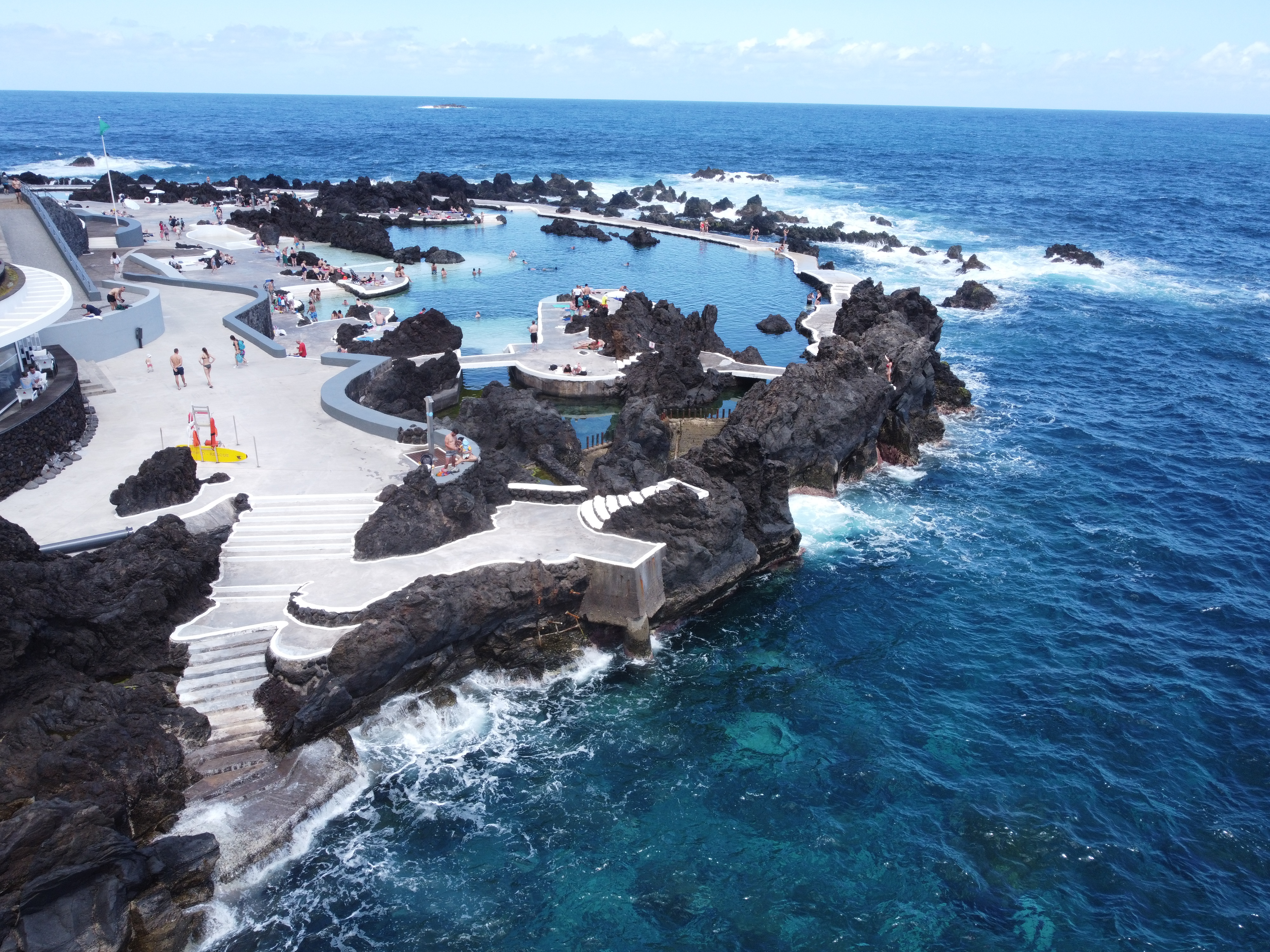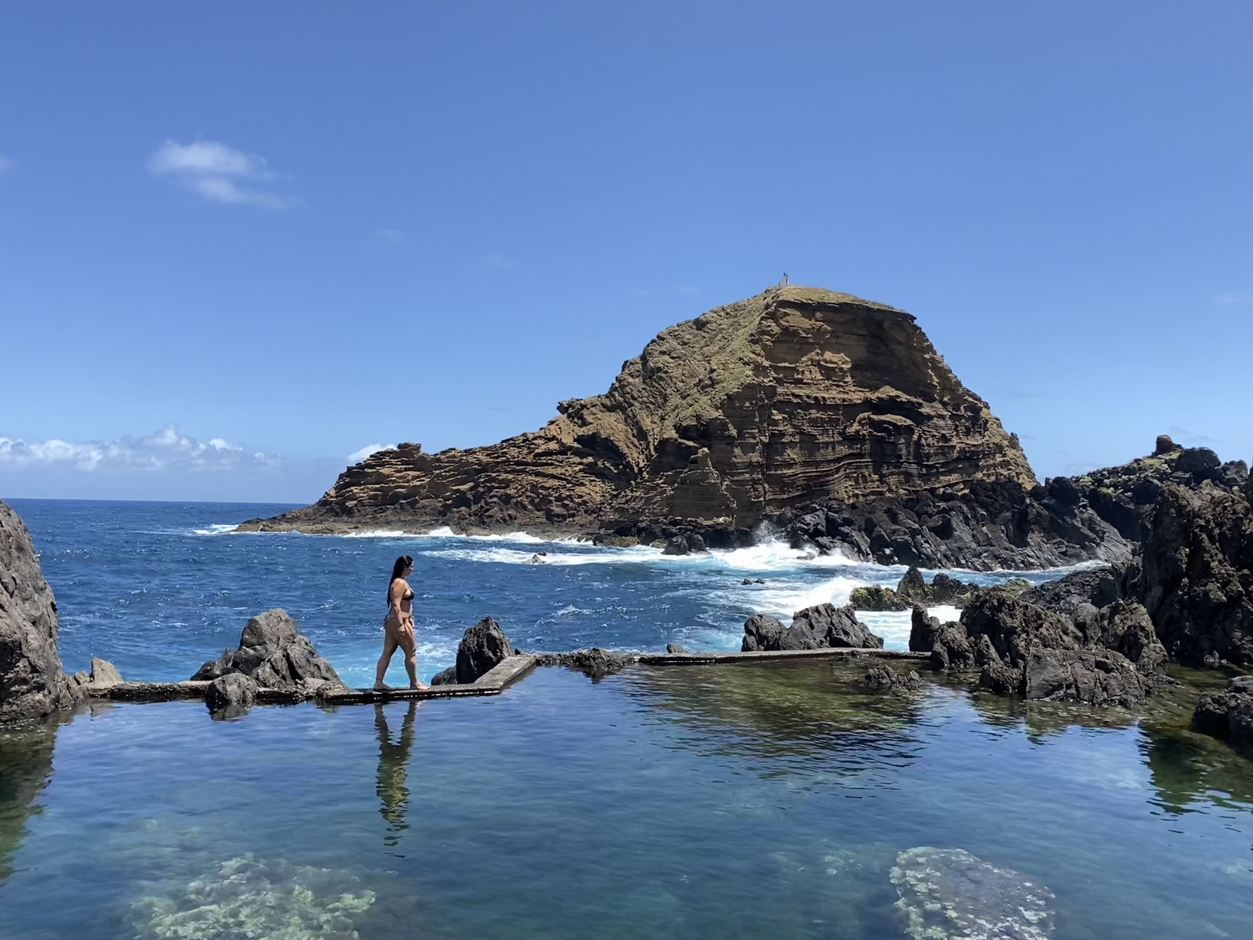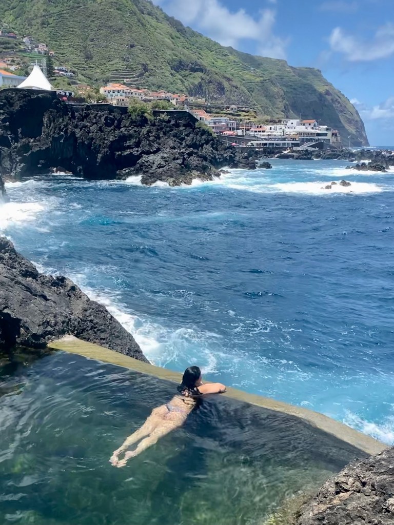Acordamos cedo, café da manhã e de volta para a estrada. Fizemos uma breve parada no Miradouro da Santinha (um dos diversoooooooos mirantes que tem por todo o percurso e em qualquer lugar da ilha) e dirigimos por mais uns 40 minutos até as Piscinas Naturais de Porto Moniz. Um dos lugares mais lindos que já vi na vida! Lá tem dois “conjuntos” de piscinas naturais: a nova (Piscinas Naturais de Porto Moniz) que possui banheiros, ducha, restaurante, salva vidas, tem parte pavimentada e custa €3 por pessoa e a velha (Piscinas Naturais Velhas) que é mais simples, não paga para utilizar e é tão linda quanto. Para ficar com crianças eu recomendo a primeira opção principalmente por conta do espaço físico. Foi maravilhoso, passamos a manhã todinha lá e aproveitamos muito. As piscinas tem borda infinita e fazem mesmo margem com o mar, dá até um medinho ficar ali na ponta olhando as ondas baterem. Eu amei!!!!