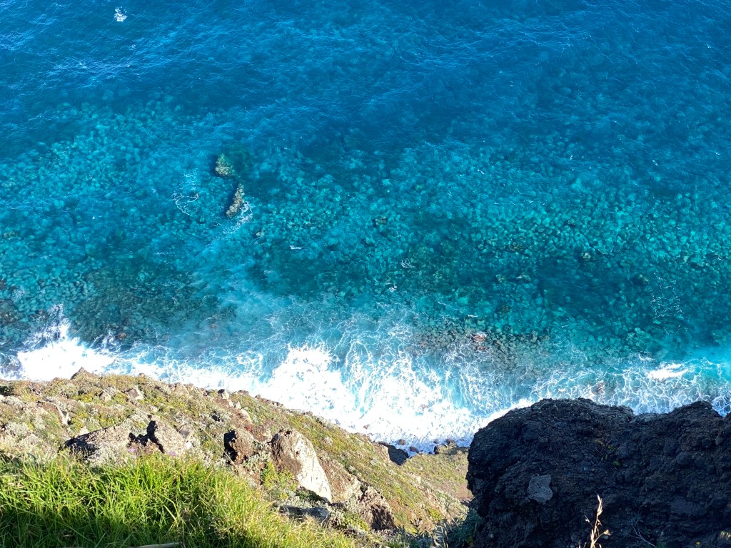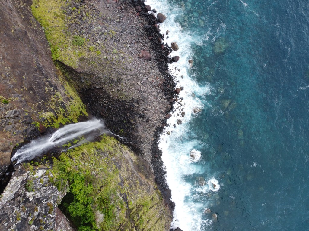 Fizemos uma breve parada em Madalena do Mar para caminhar entre as bananeiras antes de seguir por cerca de meia hora até Paúl do Mar. A estrada é super linda com vistas de tirar o fôlego e que dá vontade de fotografar a cada minuto – cada túnel e uma estrutura incrível! Chegando lá, fomos direto para a Cascata de Paúl do Mar, uma cachoeira enorme que deságua na praia e estava cheia de patos rs. Como já eram umas 19h decidi não entrar porque não conseguia ver muito bem e não tinha ninguém lá. Tirei uma foto e fomos achar um lugar para dormir. Na subida de volta paramos no Miradouro do Paúl do Mar e decidimos seguir mais uns 20 minutos em frente e dormir na Ponta do Pargo, mais especificamente no Farol da Ponta do Pargo. Excelente escolha! Nunca vi uma cor de mar tão linda, fiquei apaixonada e tirei muitas fotos hehehe. Vimos o pôr do sol enquanto o Vini preparava um cachorro quente para nós.