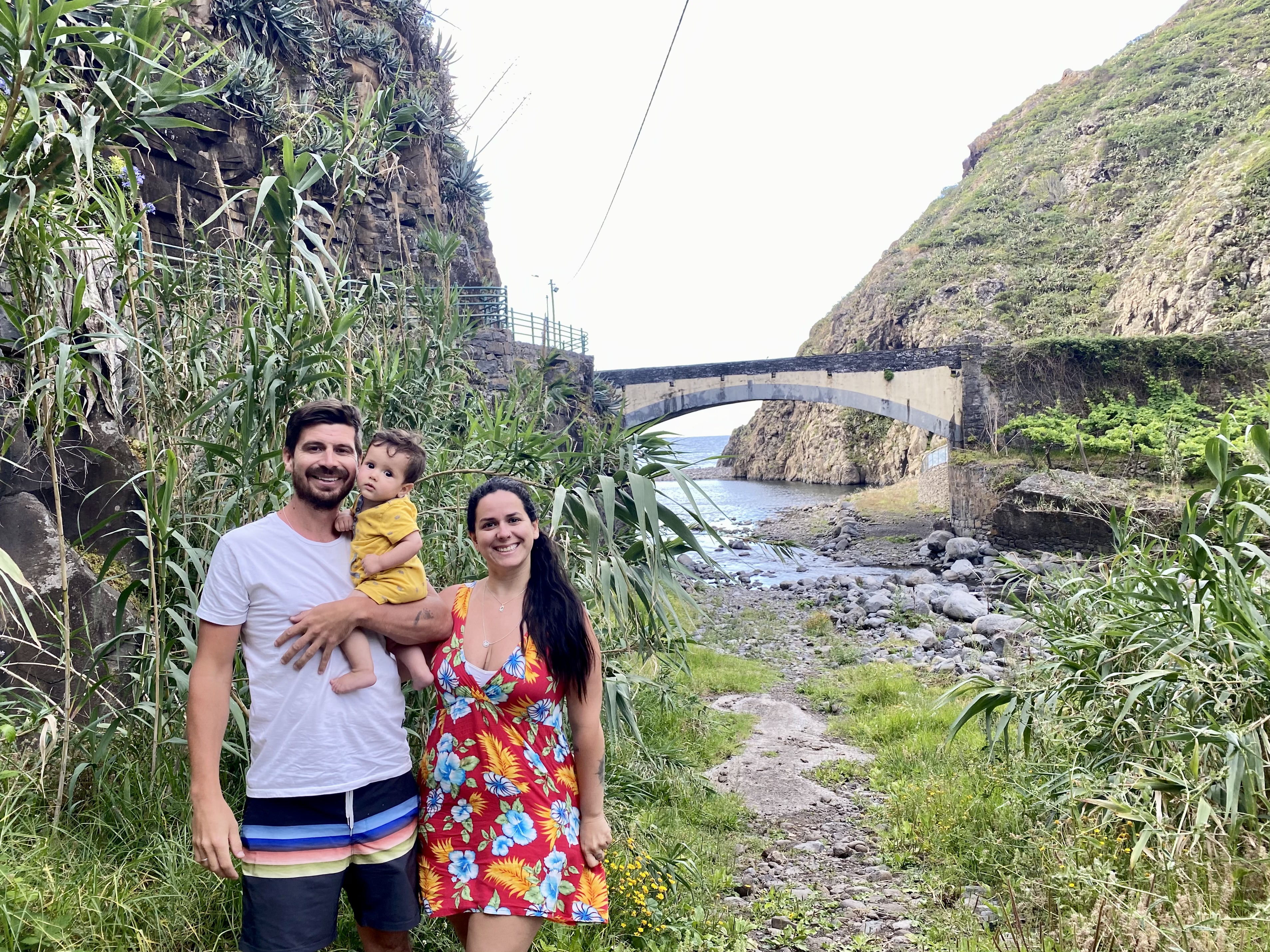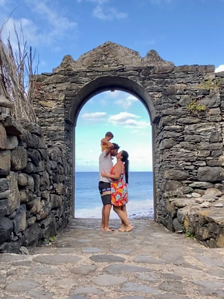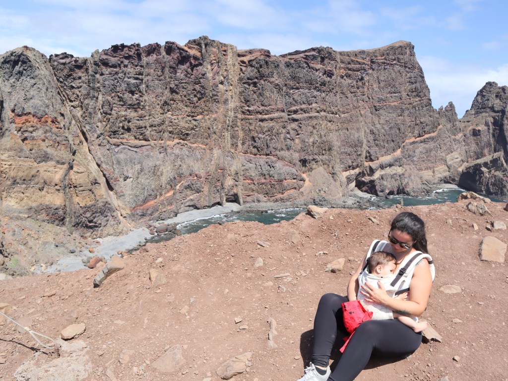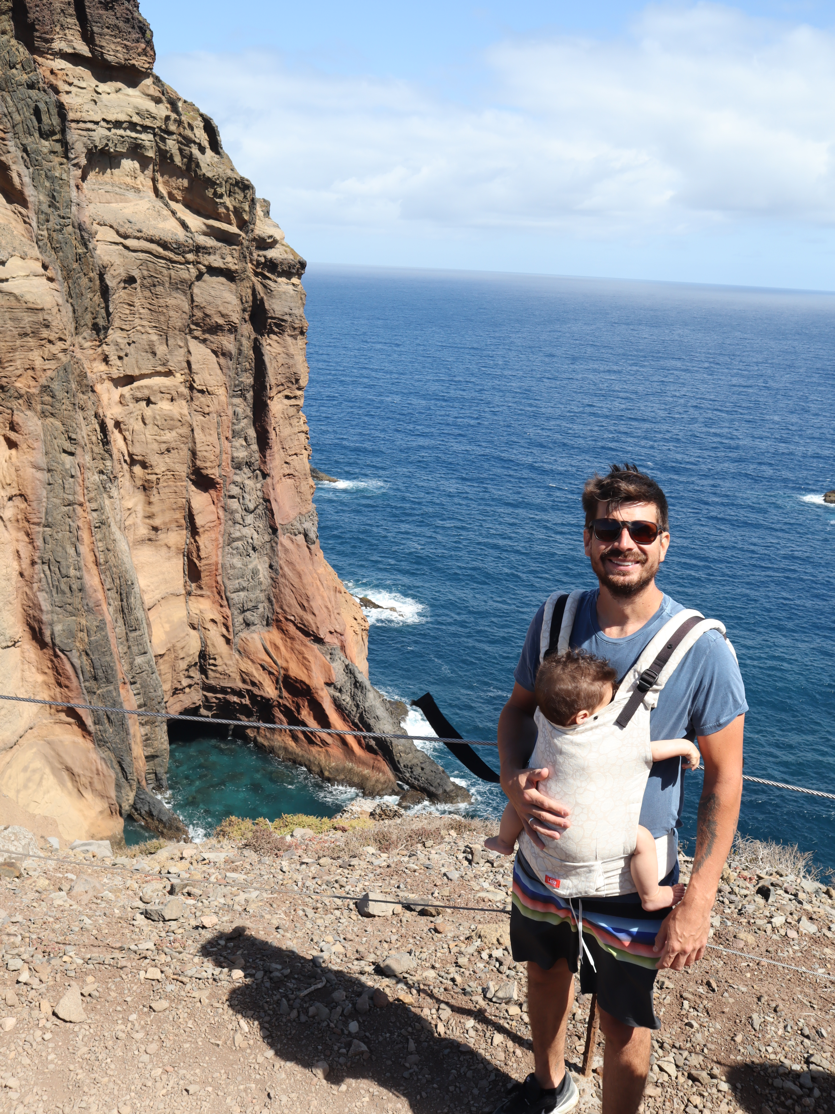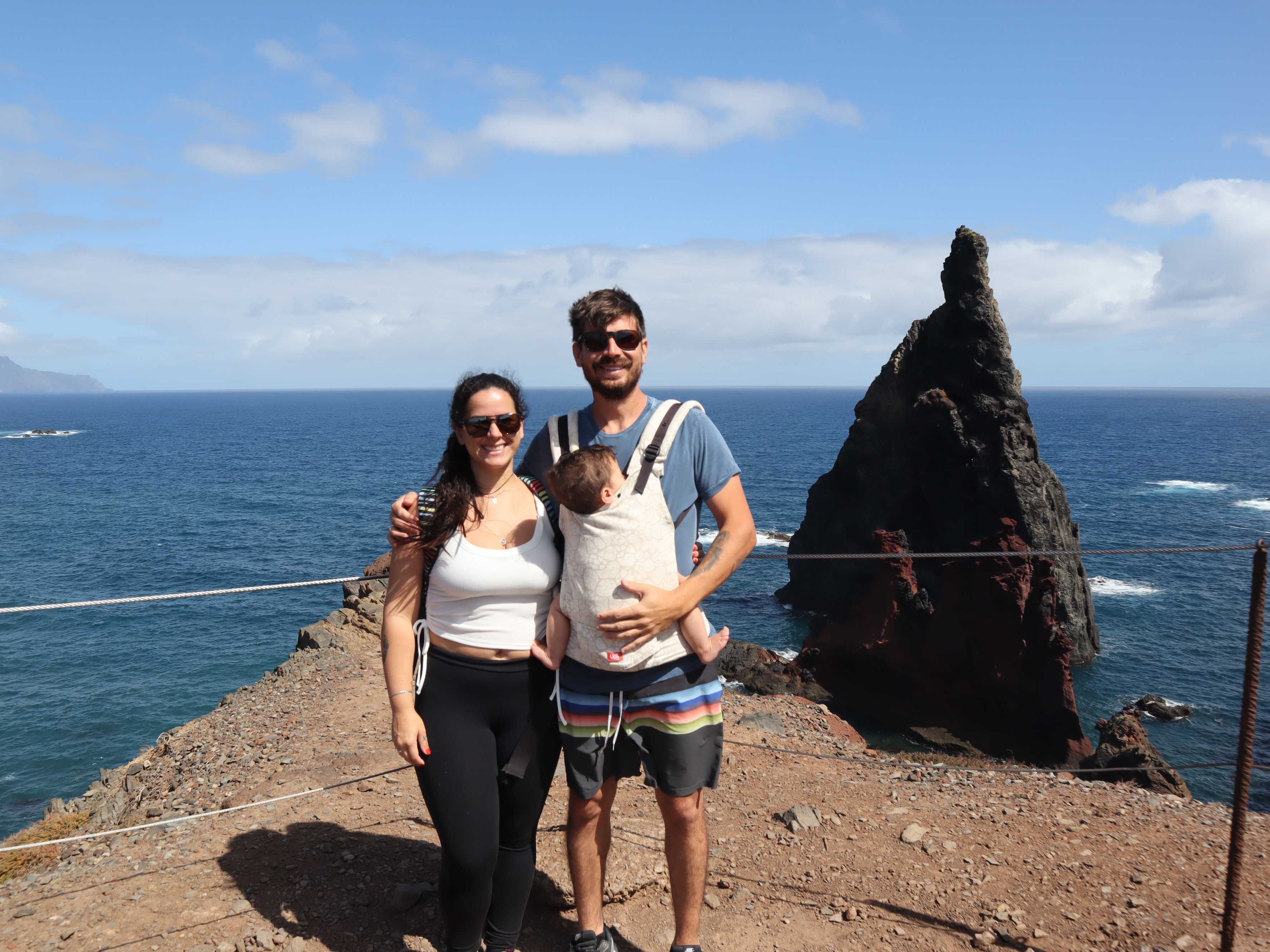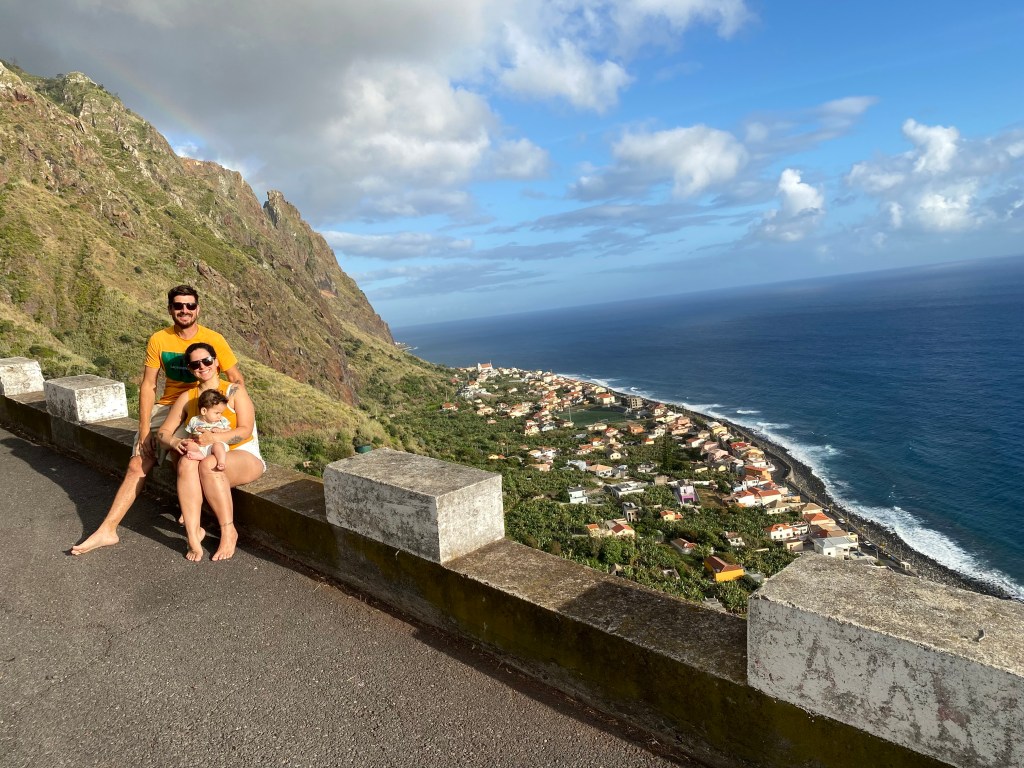 Chegamos, fizemos o almoço e paramos no Miradouro da Ponta do Rosto para uma foto épica com o nosso baby. Quem nos acompanha a mais tempo já viu essa foto só minha e do Vini e agora refizemos nós três.