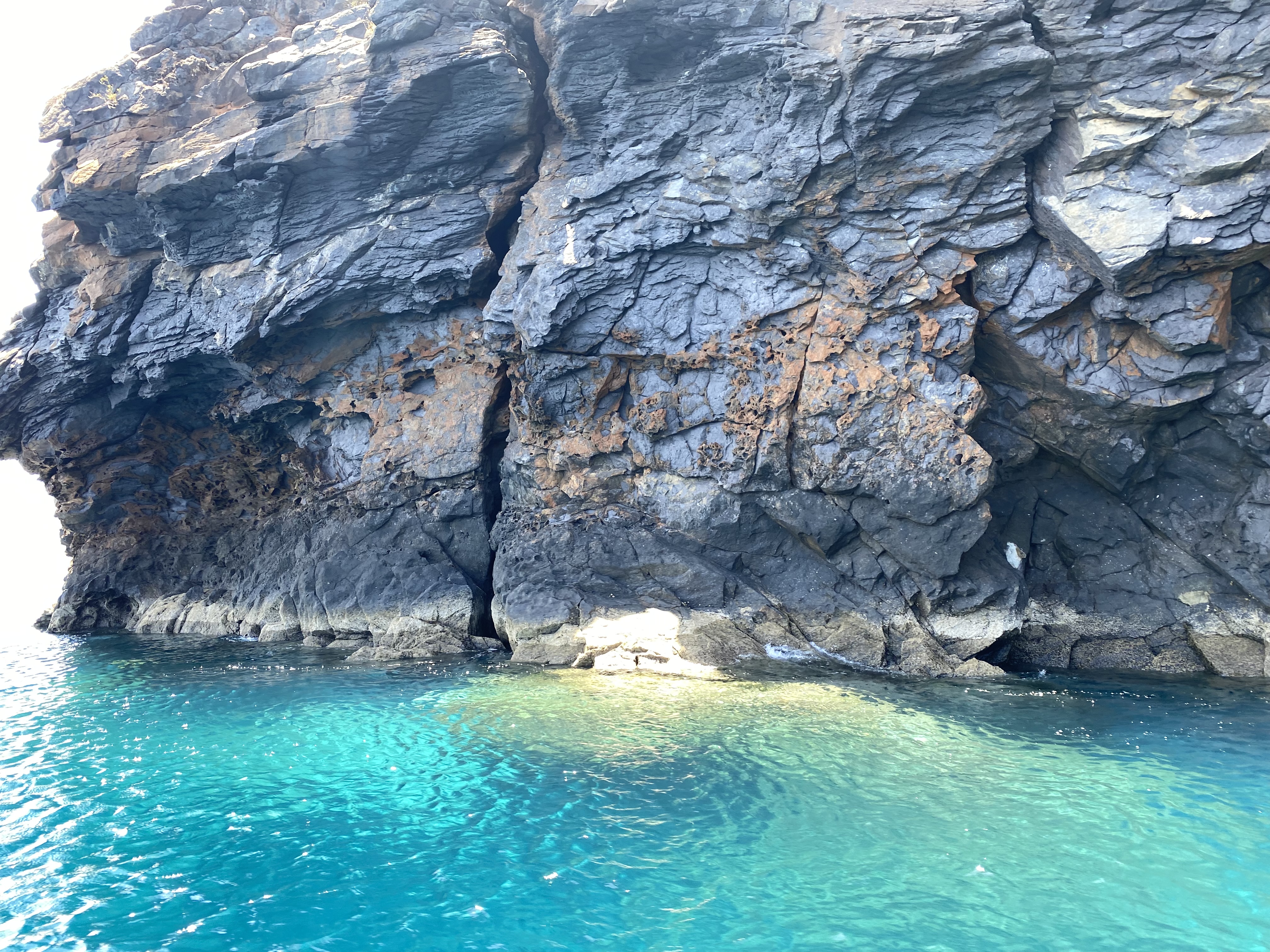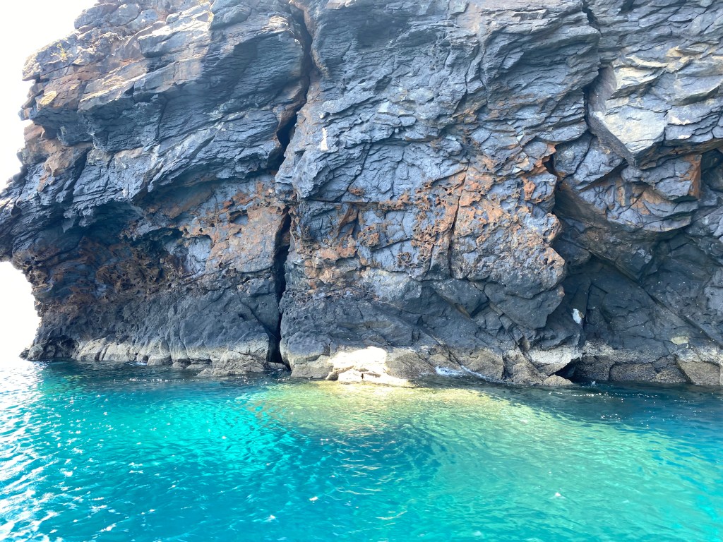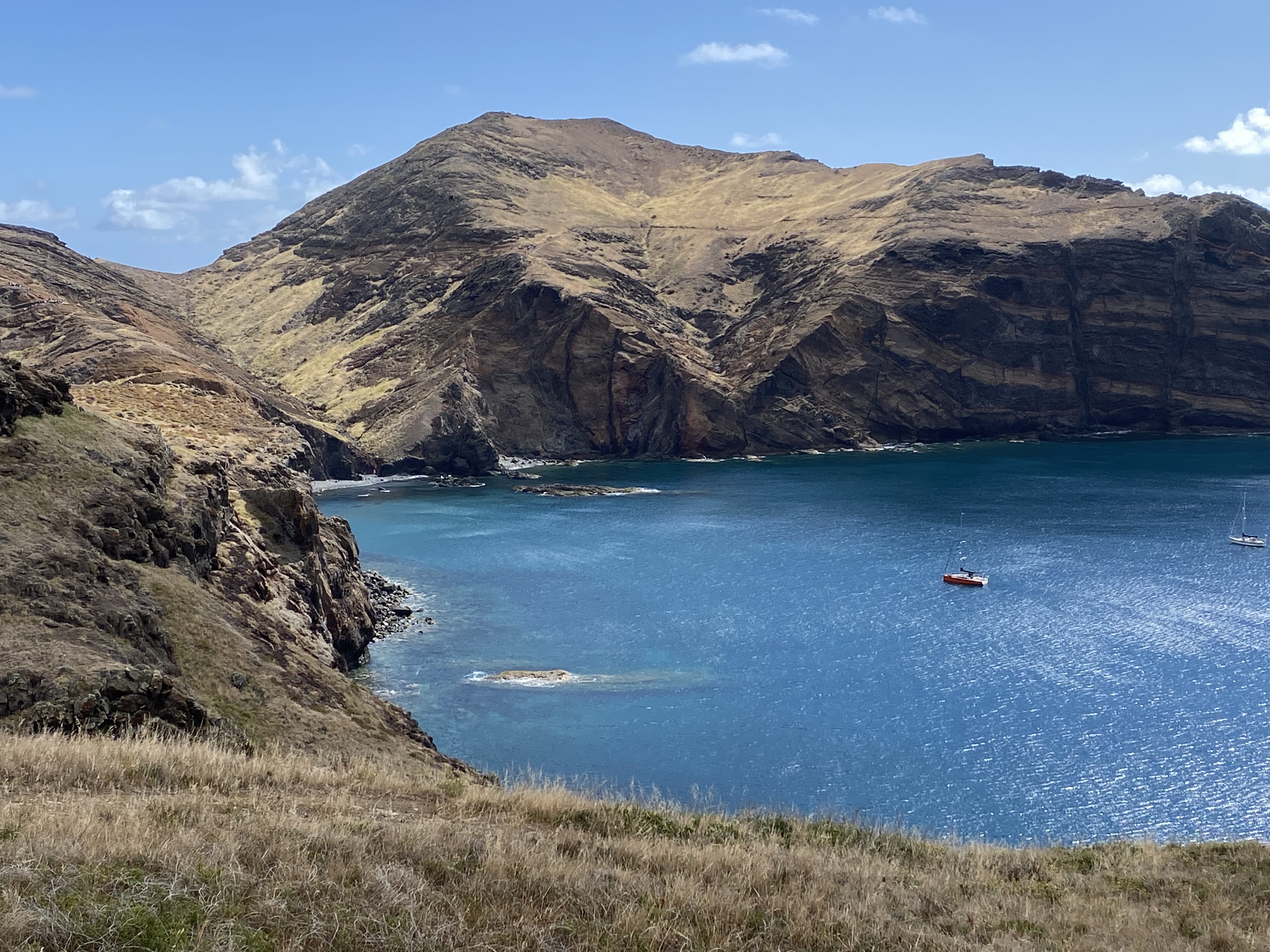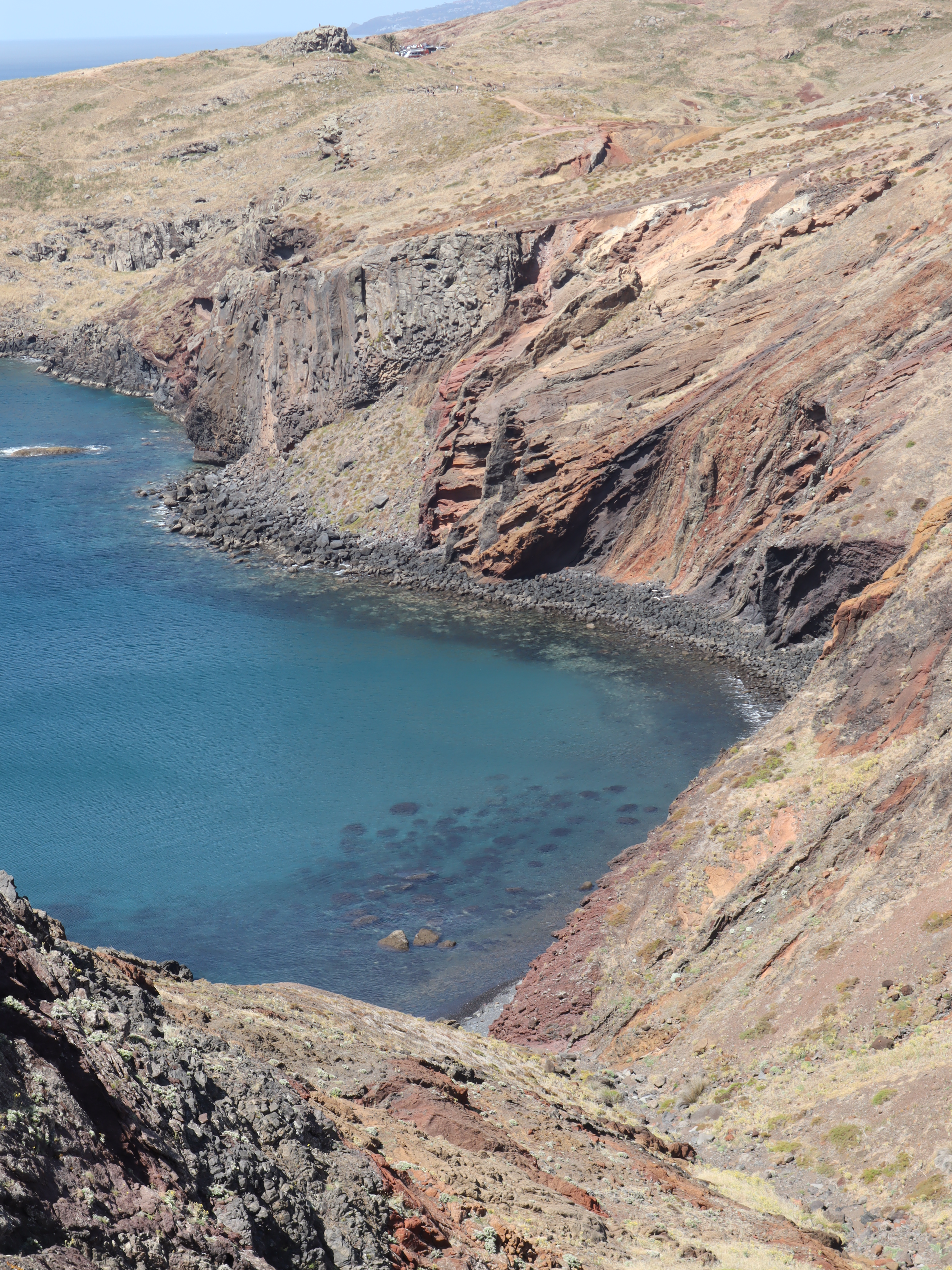 O barco passa numa gruta antes e na Praia do Carniçal – a única da ilha junto com a Praia de Seixal com areia preta vulcânica – as outras são de pedra ou de areia trazida do Marrocos. 20 minutos depois estávamos num Cais e tivemos que andar mais 20 minutos numa subidona para o estacionamento depois deles terem atrasado meia hora, ou seja, no fim não valeu muito a pena não.