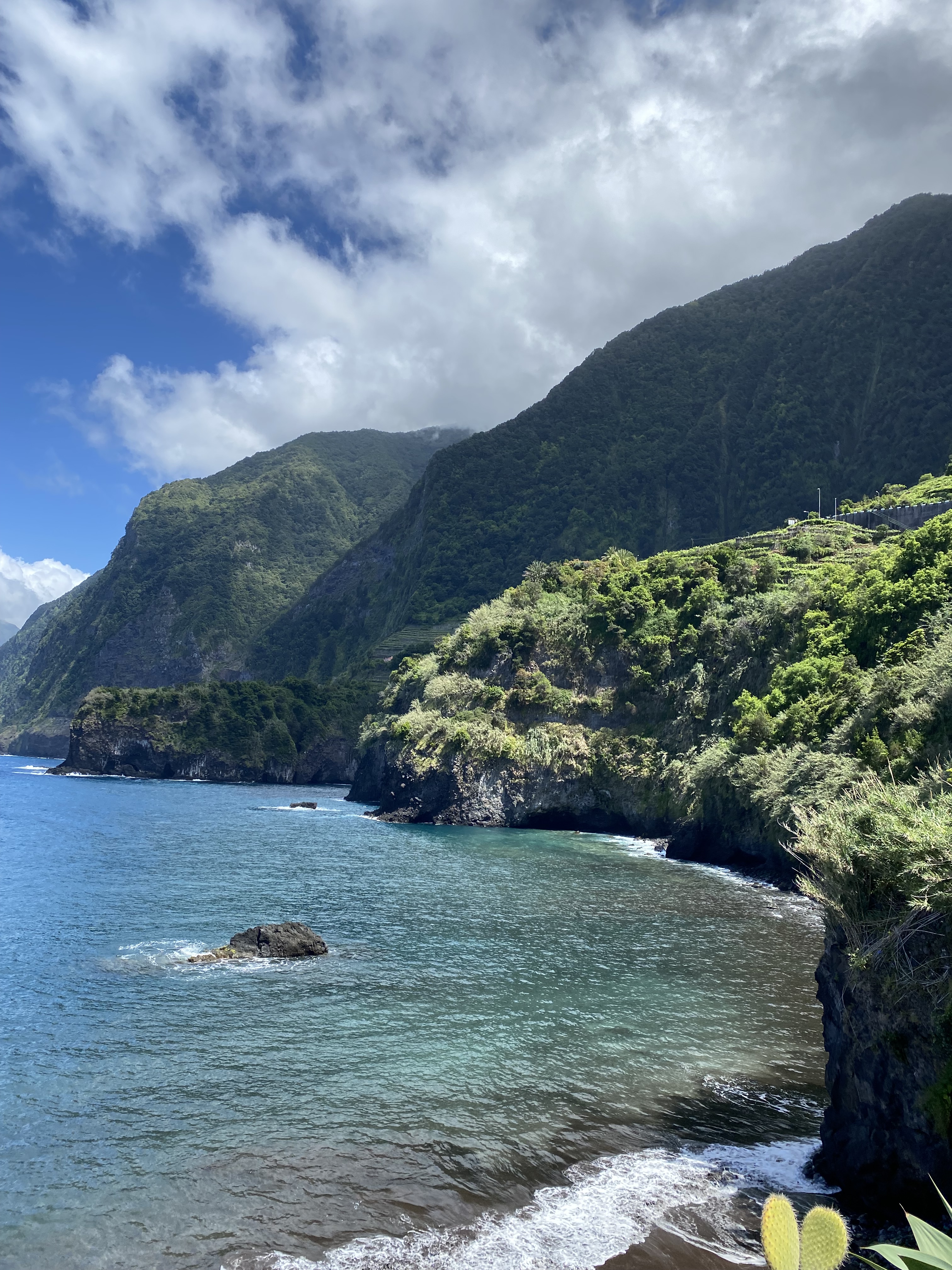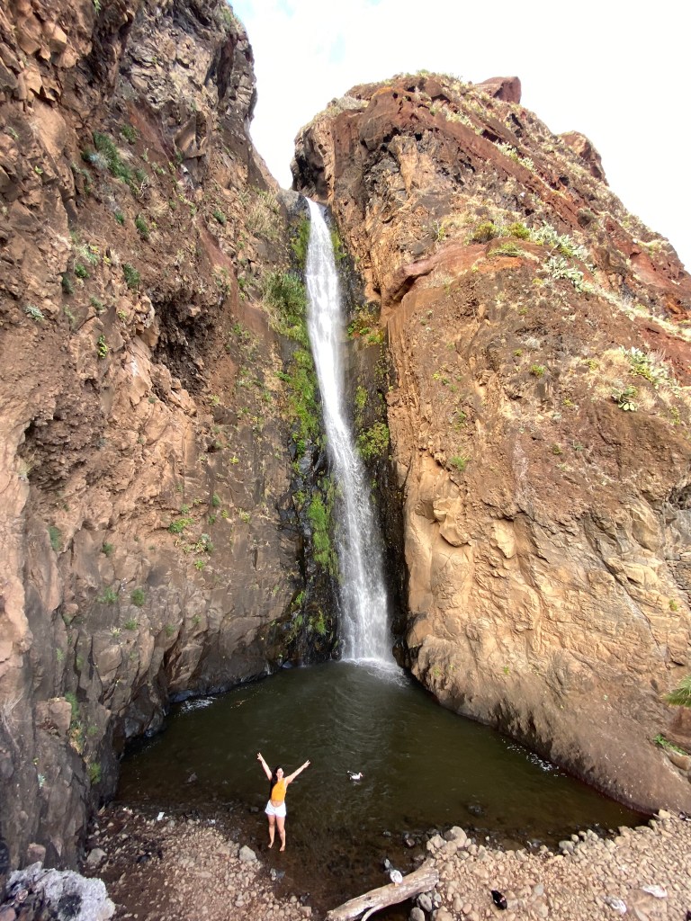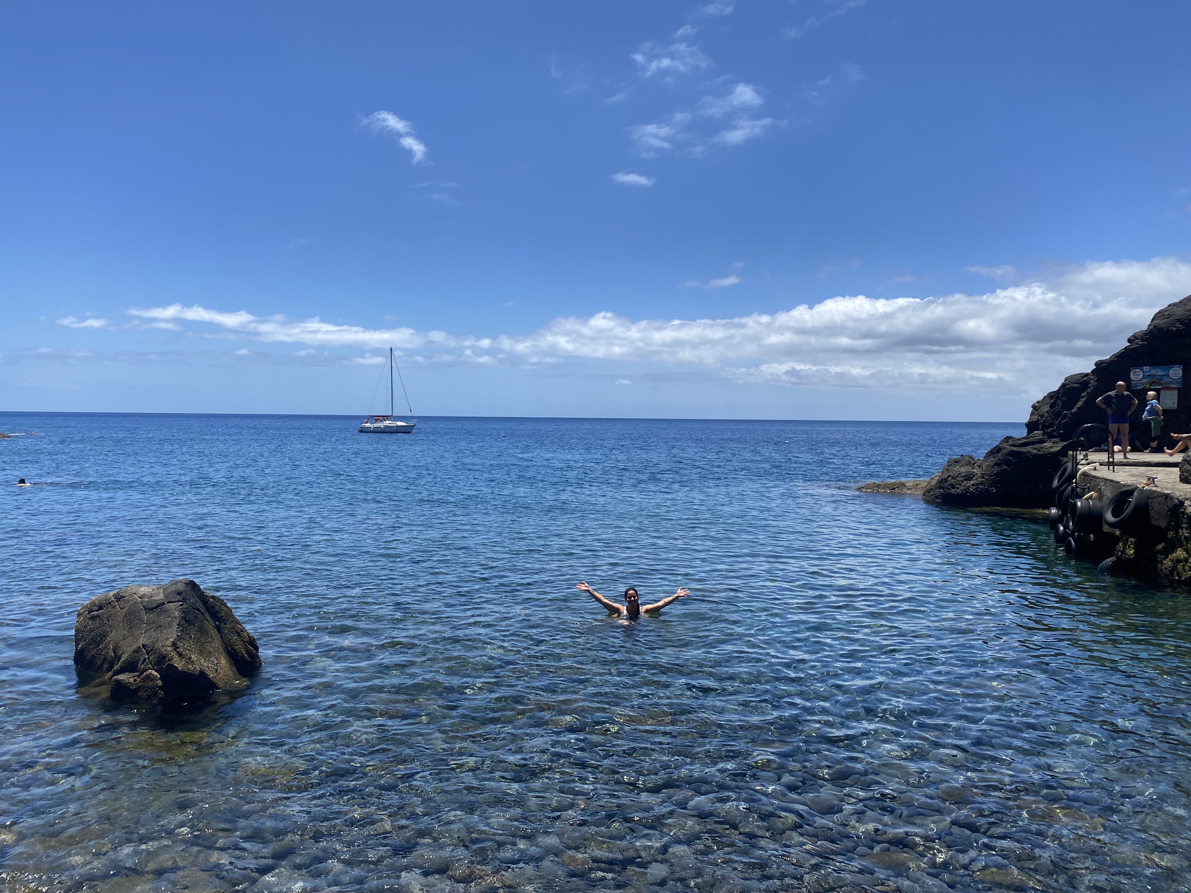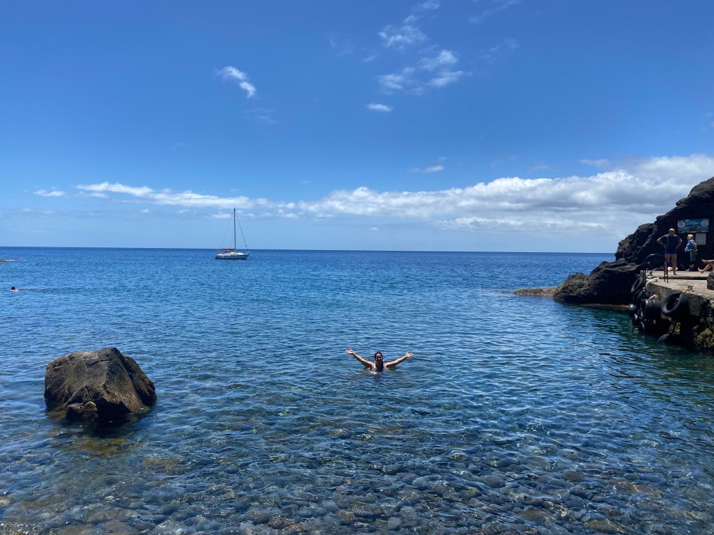 Como o dia estava ótimo, virou o dia de praia e fomos até Seixal que fica uns 10 minutos de lá e passamos a tarde entre a Piscina Natural Pública, a Praia de Seixal com sua areia preta vulcânica e sua cachoeira e o Cais de Seixal. Um lugar super agradável que recomendo para dormir também. Fizemos nosso almoço e descansamos. O mar de longe não parece super clarinho por conta da cor da areia mas uma vez que se entra, ele é cristalino e muito menos gelado do que as praias do continente em Portugal – uma média de 20 graus de temperatura. Lá perto tem também as Piscinas Naturais de Seixal que falam que é linda mas eu já estava bem contente com as que fomos em Porto Moniz.