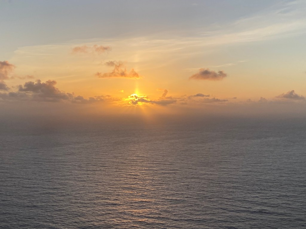 Levantamos cedo para ver o sol nascer acima das nuvens e que mágico! Estava frio e um vento geladinho mas valeu super a pena, foi a primeira vez que o Thomas viu o nascer do sol! O lugar é lindo, parece cenário de filme!