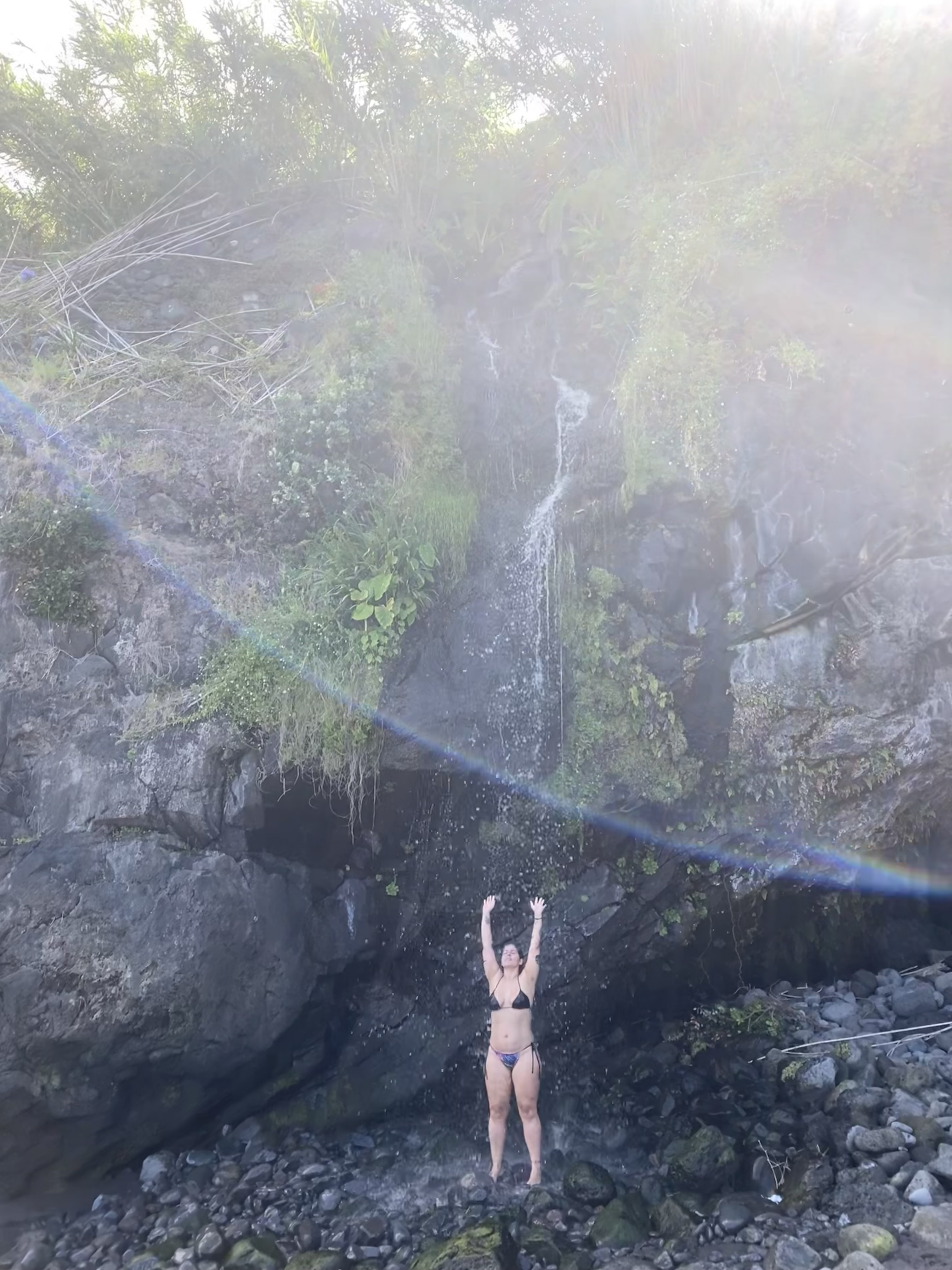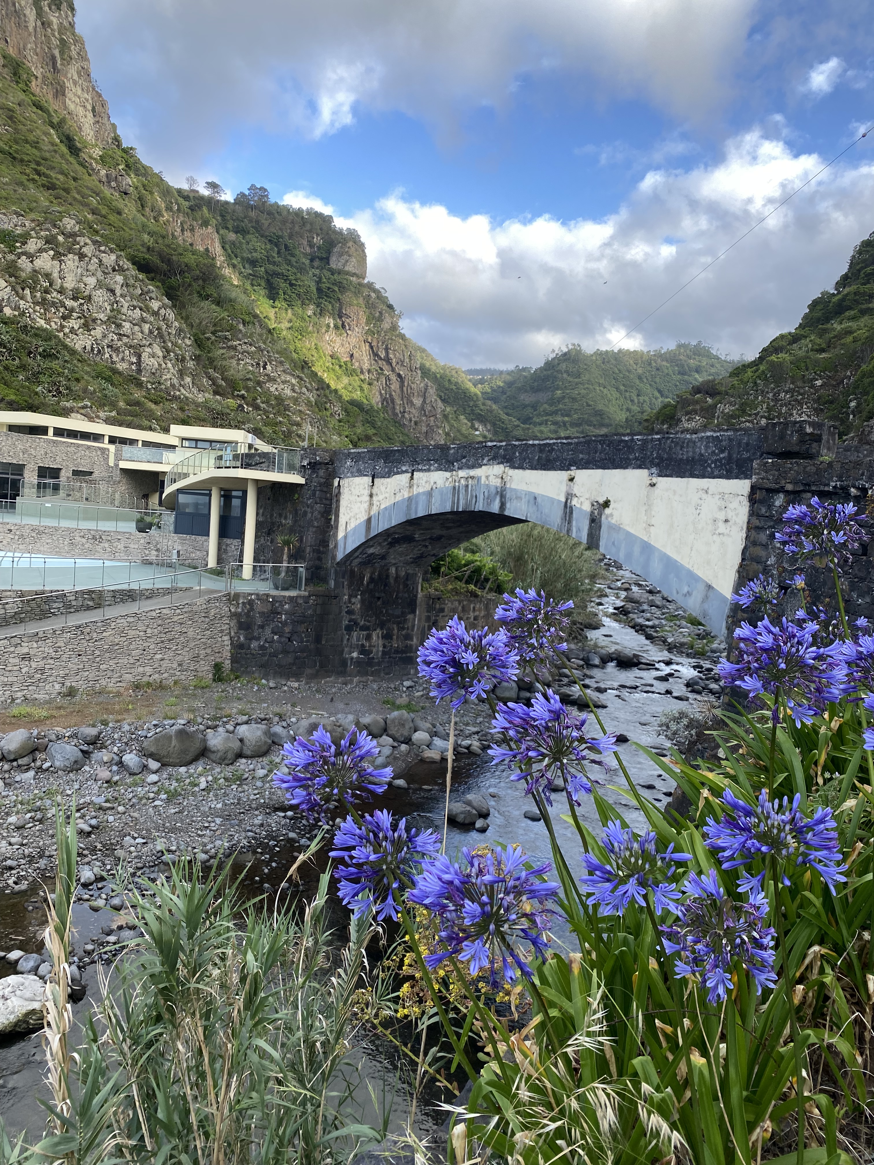 Fomos dirigindo sentido Ponta do Sol e tinha marcado para irmos na Cachoeira dos Anjos pois achei interessante já que ela deságua em cima da estrada mas não teve como parar, estava lotada de gente e é difícil tem aonde estacionar – e no fim não achei nada de mais hehe. Paramos então na Praia da Ponta do Sol – de pedras e nada de areia e seguimos até uma ponte antiga super bonita que fica cerca de 3 minutos de carro dali.