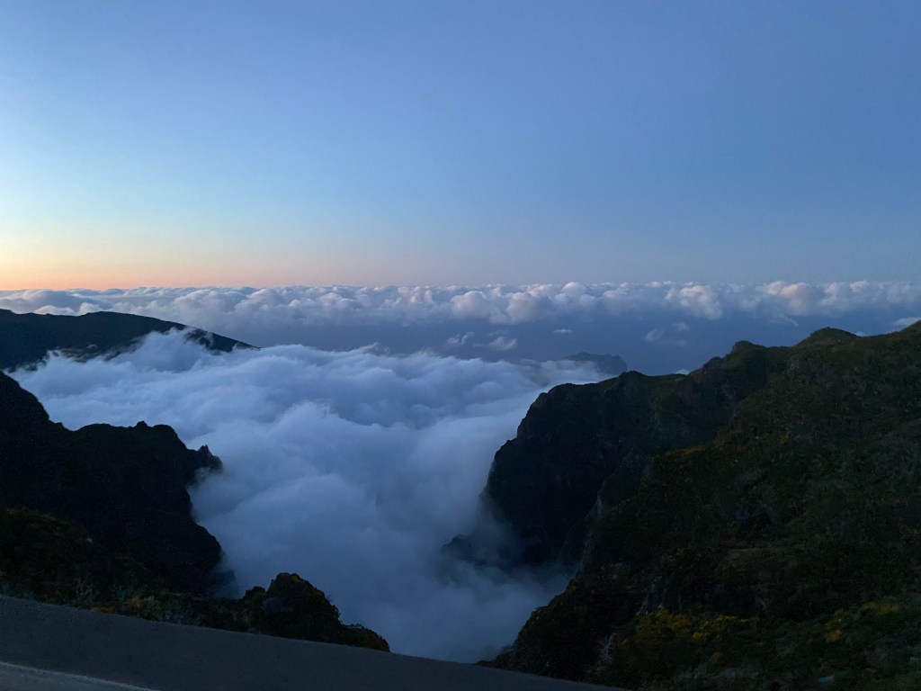 Já no fim do dia paramos um pouco no Miradouro do Véu da Noiva – uma cachoeira maravilhosa que deságua no mar – e que mar!!! Ficamos realmente impressionados. Depois paramos também no Miradouro da Beira da Quinta a caminho das Ruínas de São Jorge que levou cerca de 50 minutos. O lugar tem um restaurante que hoje está fechado e tudo ali parece meio abandonado. Achei bonito mas nada de mais. Próximo dali tem Santana que é famosa pelas casinhas típicas mas decidimos subir até o Pico do Arieiro (1 hora de distância) ao invés de seguir em frente.