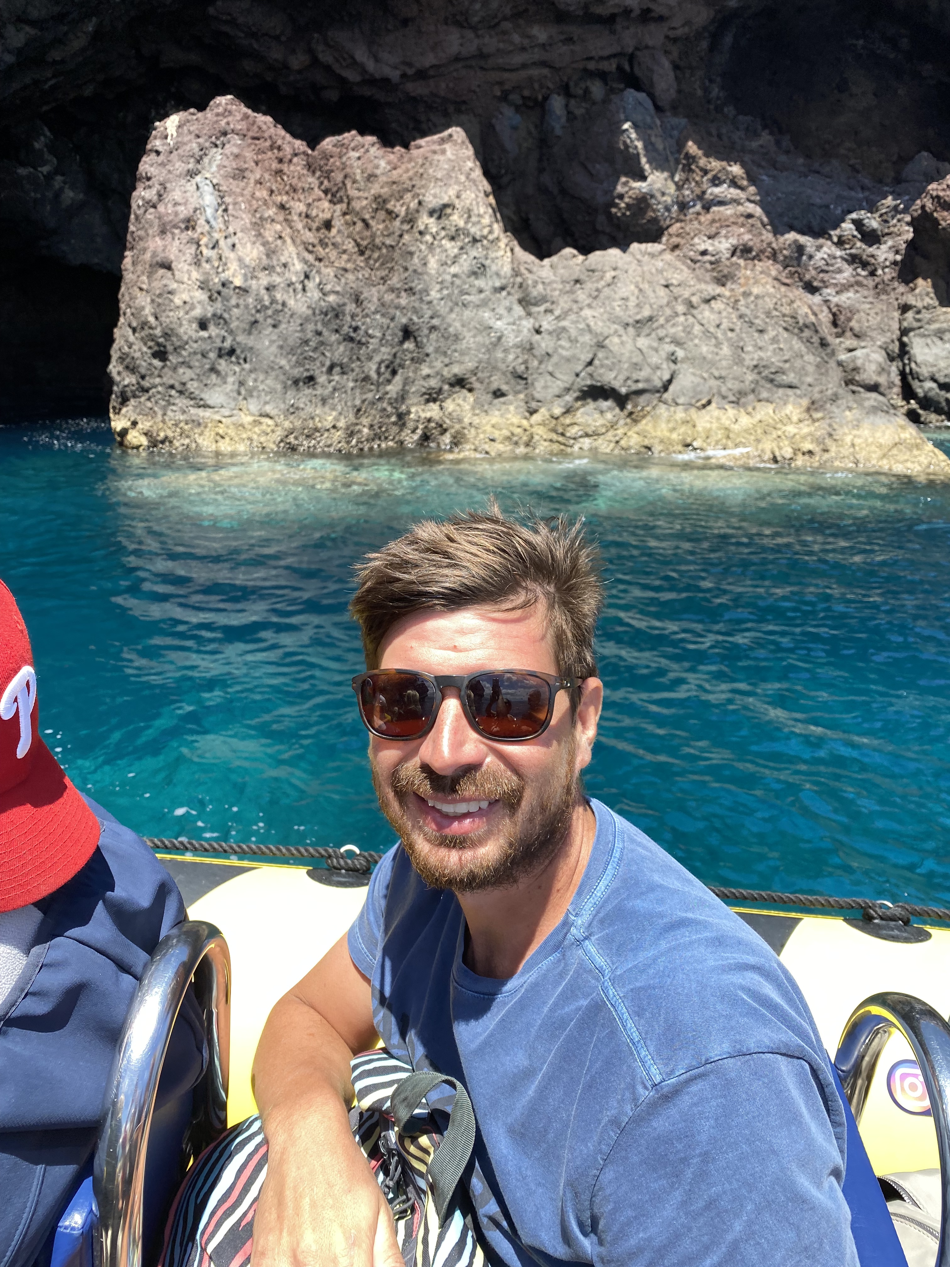 Lá no café um rapaz veio nos oferecer para voltarmos de barco – ou fazer um passeio antes de voltar – e acabamos topando porque achamos que seria muito para o Thomas (e para nós haha) voltar mais 1h30 com o solzão rachando. Pagamos €13 para retornamos até o estacionamento aonde estava o motorhome. O barco saía da Praia da Sardinha – 5 minutos andando do café e acabamos curtindo uma prainha também antes de ir embora.