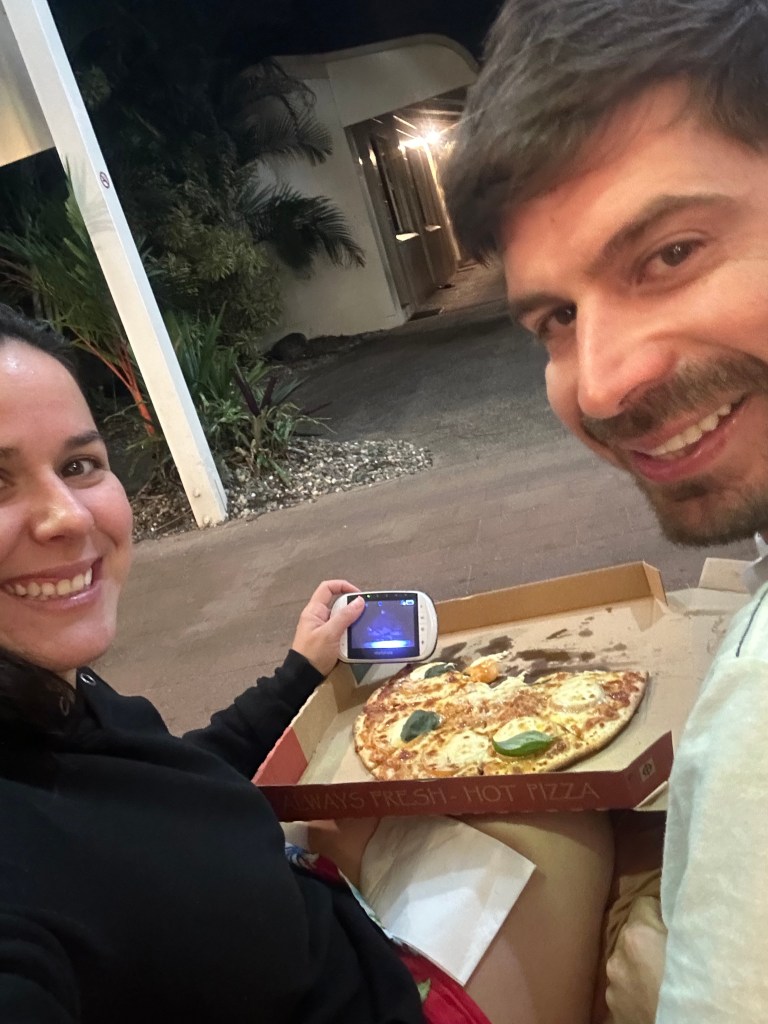 Voltamos para Cairns já de noite, paramos no mercado para comprar as coisas para fazer café da manhã e snacks para dar uma economizada. A noite, depois que o Thomas dormiu, pedimos uma pizza e ficamos aproveitando a noite.
