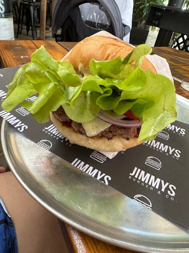 Fomos procurar lugar para comer e passamos no Rusty´s Market pois tem diversas barraquinhas de comida, além das frutas e legumes mas acabamos indo no Jimmy´s Burger & Co. Nessa de ir pra lá e pra cá, o baby dormiu e já que lá além de hamburgueria também é bar, aproveitamos para tomar uma tequila antes do hambúrguer haha para relembrar da primeira vez que ficamos.