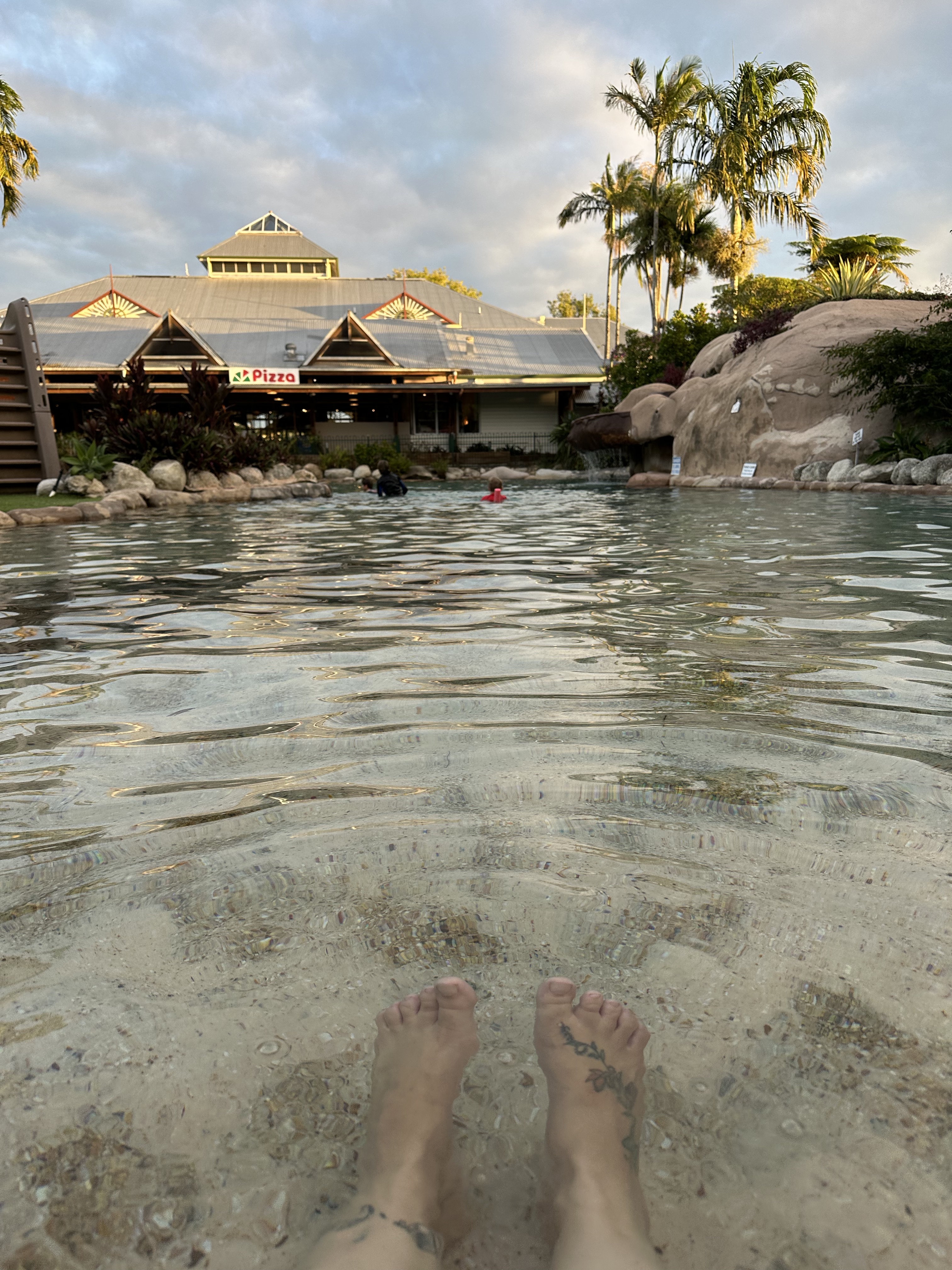 Ficamos no Cairns Colonial Club Resort ($427 – 4 noites) que apesar de ser um resort era uma das opções mais em conta que encontramos (tirando hostels, quarto compartilhado). Procuramos também hotéis em Port Douglas e AirBnb em ambas cidades mas só tinha opções mais caras. Nós adoramos o hotel e super recomendo, principalmente para quem está indo em família. Ele tem três piscinas que parecem praias além de contar com restaurante e bar dentro do hotel – perfeito!