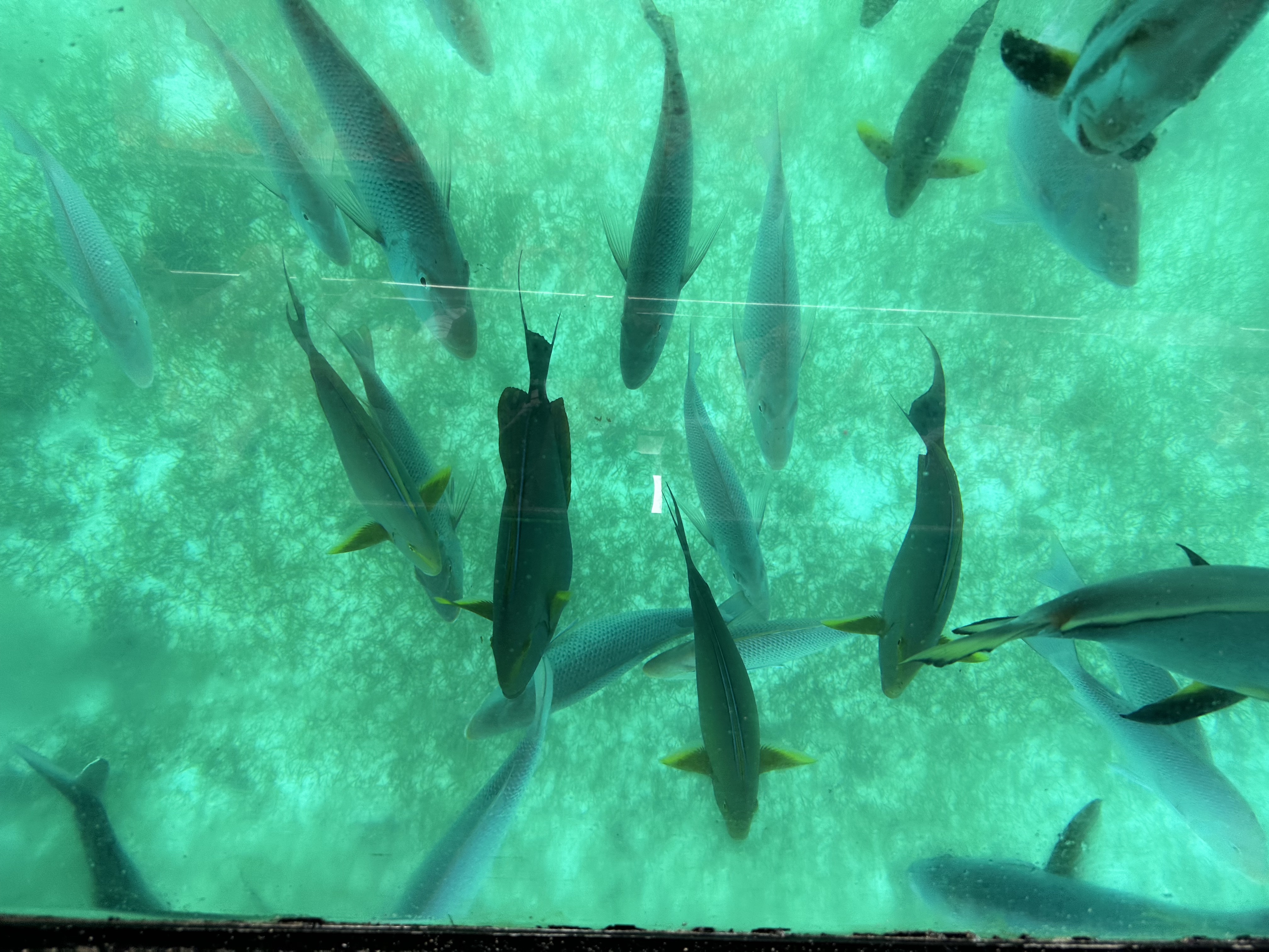 O trajeto é de cerca de 50 minutos e super tranquilo. Lá no barco eles perguntam se você quer fazer snorkel ou passeio de glass boat – aqueles barcos com o chão transparente e optamos por essa segunda opção. Uns 20 minutos depois que chegamos na ilha, o barco saiu e foi muito bonito. Enquanto esperávamos, vimos uma tartaruga bem pertinho de nós – linda. No passeio, passamos por diversos corais diferentes e o guia ia explicando sobre eles e no final para fechar com chave de ouro vimos muitoooos peixes – e enormes. Thomas ficou maravilhado – e nós também. Durou cerca de 30 minutos.