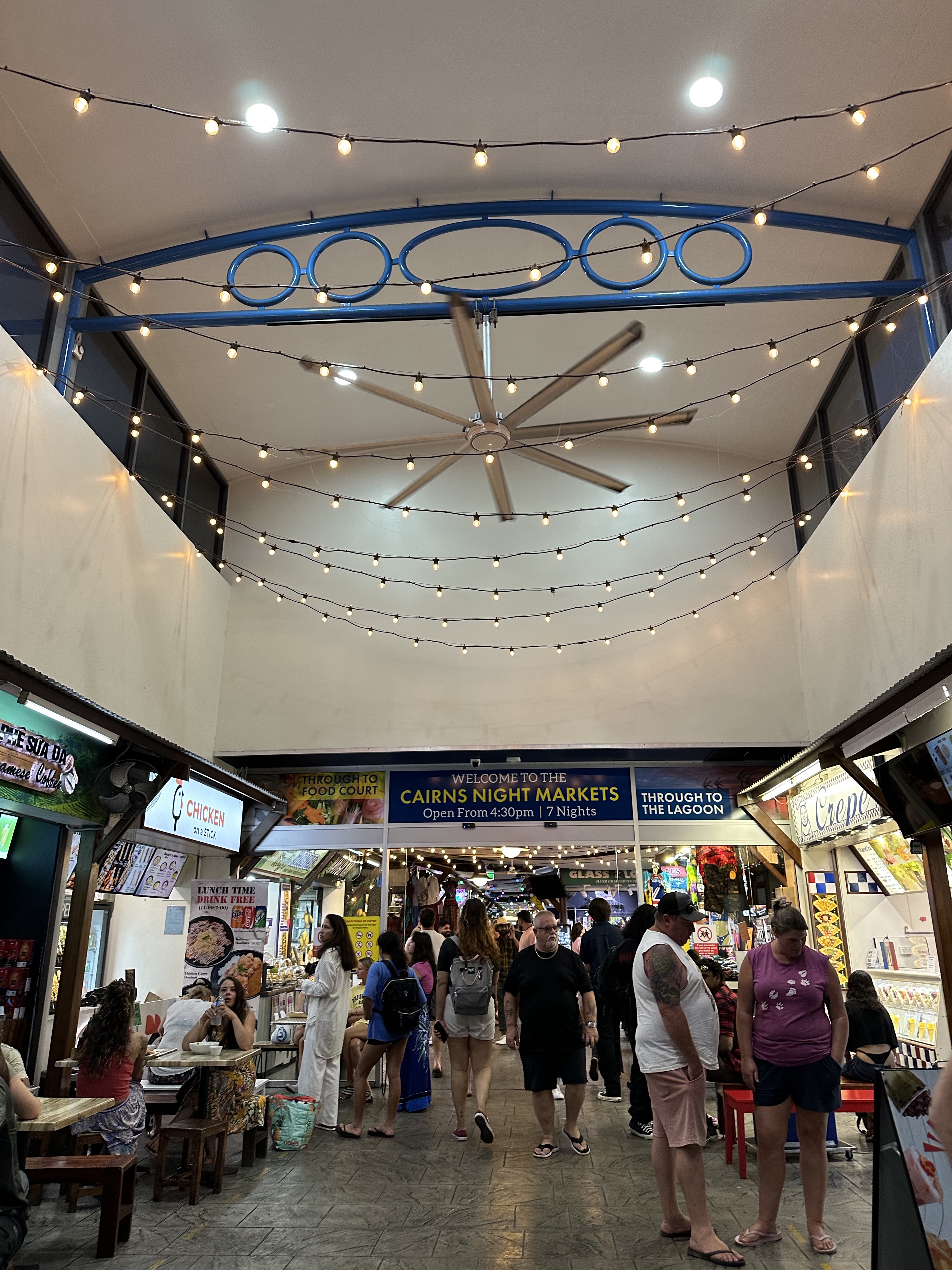 Aproveitamos para andar na roda gigante conhecida como Reef Eye ($10 por pessoa) e foi legal. Comemos um waffle no Cairns Night Market e fomos dormir pois no dia seguinte as 10 da manhã tínhamos o vôo de volta.