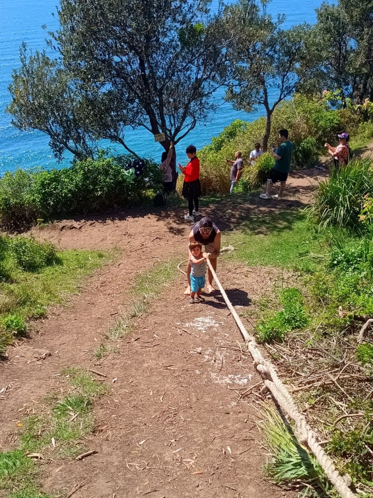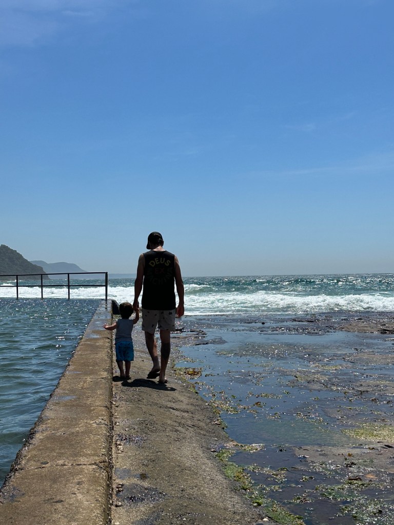 Recentemente fomos mostrar a Sea Cliff Bridge (1 hora de Sydney) para os meus pais que estavam nos visitando aqui na Austrália e depois conhecemos Wombarra Beach que fica ali pertinho. Uma dica legal é ver a estrada de cima do mirante (todos os detalhes nesse post aqui) no período da manhã porque o sol está batendo no mar – fim de tarde já fica mais escuro e você não consegue ter noção da beleza desse mar. A trilha é íngrime mas com um mínimo de preparo dá para fazer – de tênis ou descalço como nós rs. Ela tem umas cordas para dar um suporte no caminho e conseguimos fazer com nosso filho de 2 anos – algumas partes com ele no colo.