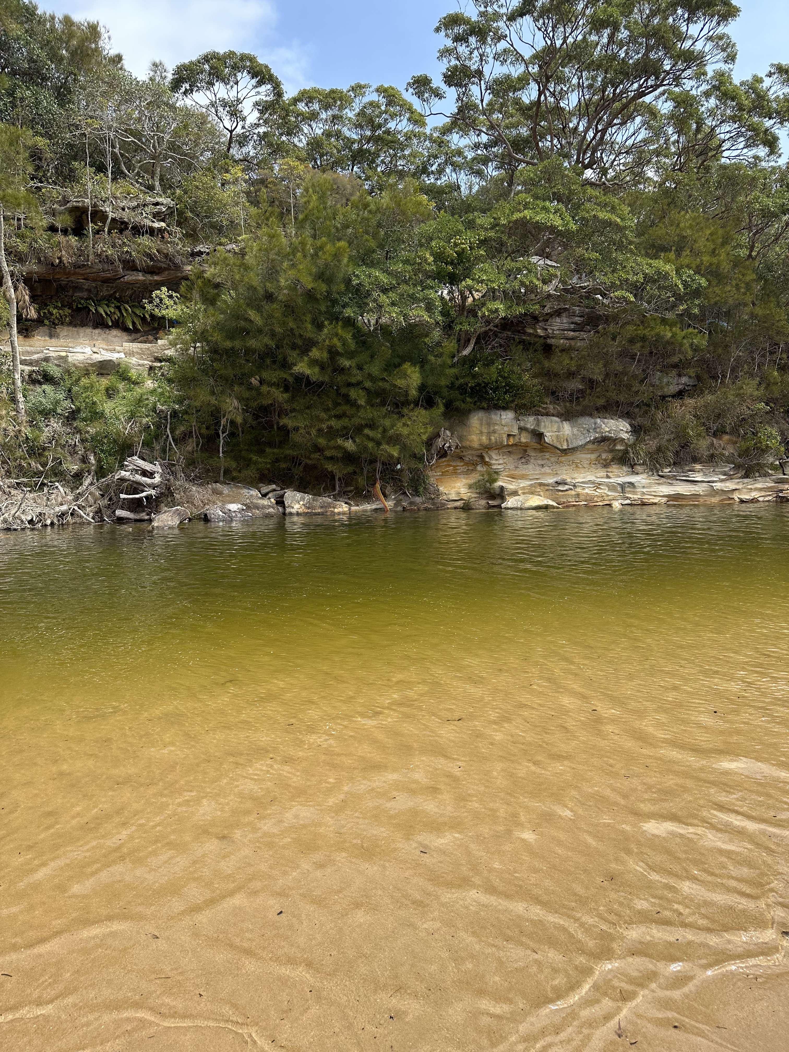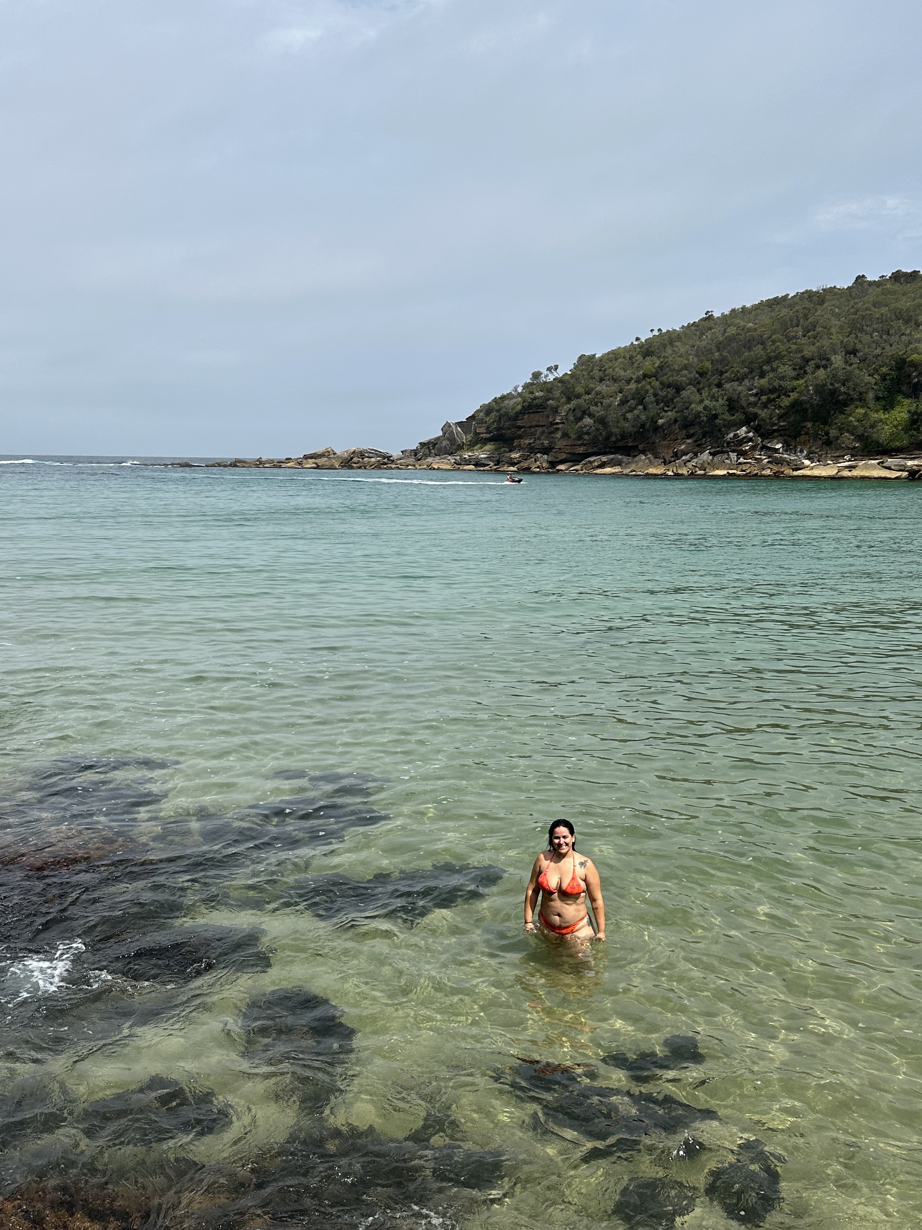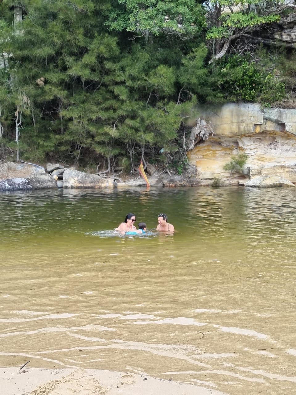 Para uma day trip, dá para acordar, ver o mirante, ficar lá curtindo um pouco, comer algo ali no pub que fica em Scarborough e voltar para passar a tarde no Royal National Park ($12 por carro). Uma das principais praias é a Wattamolla Beach e foi lá que encontramos nossa amiga Marília e família e ficamos. Eu gosto bastante por ter o rio e o mar – e uma cachoeira também que algumas pessoas pulam lá de cima (apesar de não ser recomendado). Nesse dia específico o mar estava muito transparente e o rio super gostoso também. Outra praia bacana ali é Bundeena e muita gente também vai no Royal National Park para fazer as trilhas para conhecer Wedding Cake Rock ou as Figure 8 Pools.