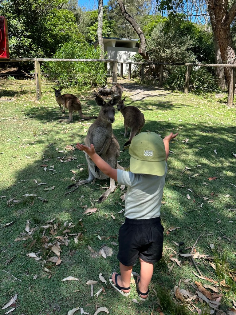 Como queria que eles vissem cangurus, fomos por 20 minutinhos até a Cave Beach dentro do Booderee National Park ($13 por carro e vale por dois dias). Ali tem um camping clássico, bem pertinho da praia e aproveitamos as mesas para fazer nossos lanches enquanto o Thomas corria atrás dos cangurus hehe. Acabamos não descendo pra praia dessa vez porque já tinha passado da hora da soneca do pequeno.