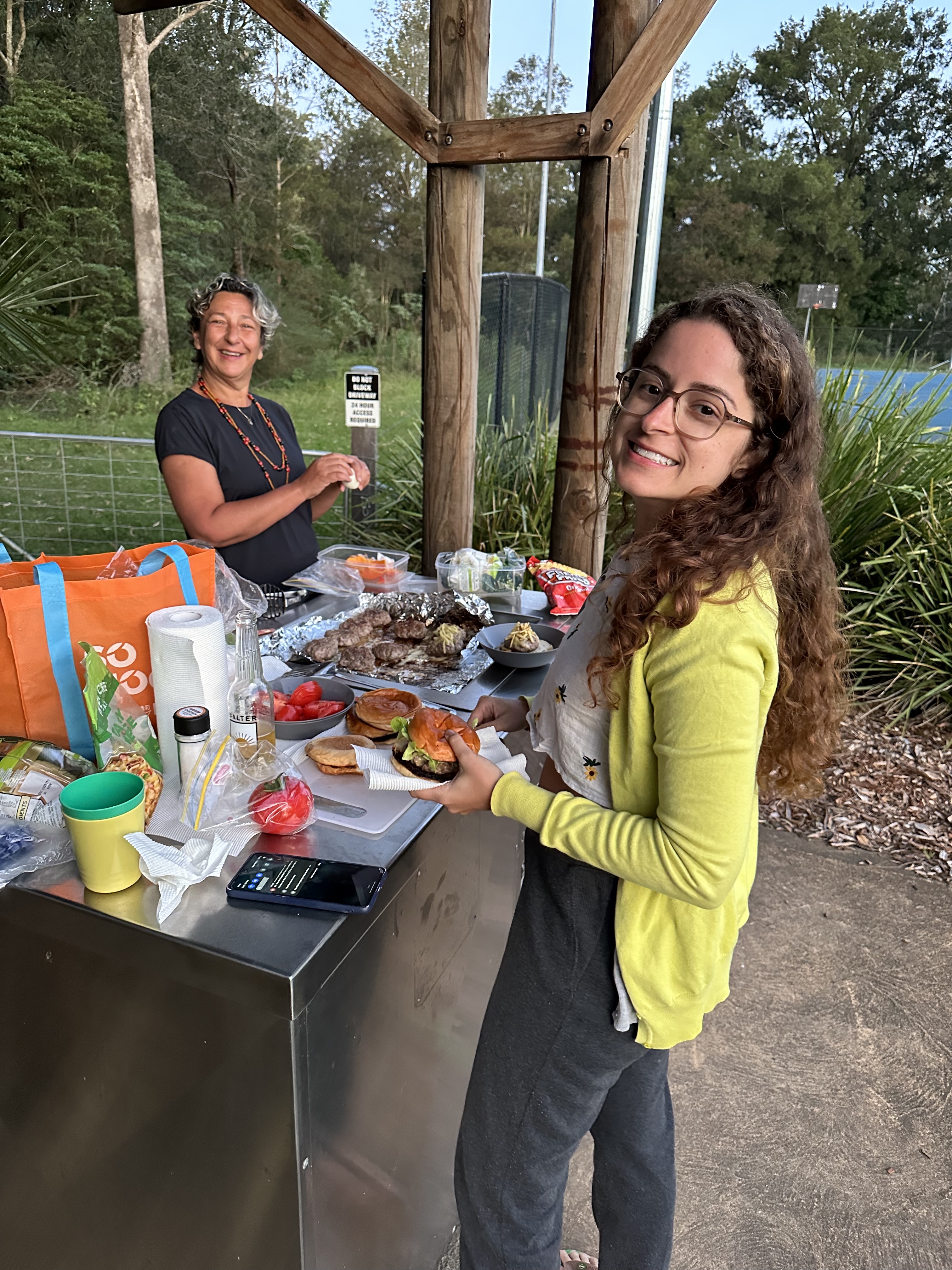 Seguimos por 1 hora até Kangaroo Valley no querido camping Bendela Recreation Area – ele é gratuito mas cobra uma taxinha de $6 por noite total para todos nós, bem tranquilo! Ah, lá não tem chuveiro nem churrasqueiras então já tínhamos tomado nosso banho do dia em Jervis Bay mesmo e usamos a churrasqueira da cidade (na Broughton St) para fazer nosso hambúrguer.