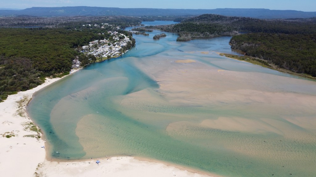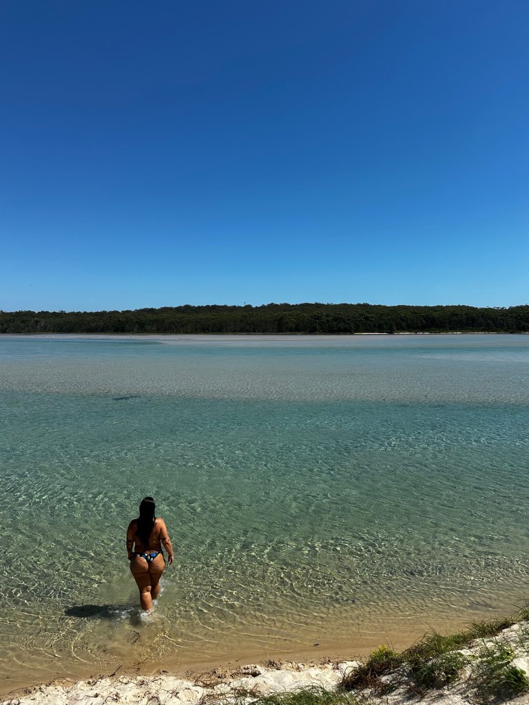 Achamos uma sombrinha e ficamos a manhã por ali até decidirmos andar até a Conjola Beach – 10 minutinhos pela água apreciando esse lago maravilhoso e uma breve caminhada pelas dunas. A praia estava mais vazia e rolava várias ondas, mar cristalino e temperatura perfeita! Pelo que percebi, acredito que na maré baixa dê para andar até a ilha ali na frente – acho que deve ser bem legal se puder mesmo. Vi também que o lago tem acesso por várias partes dele. Voamos o drone e rendeu essas fotos lindas – se apaixonou por lá também?!
