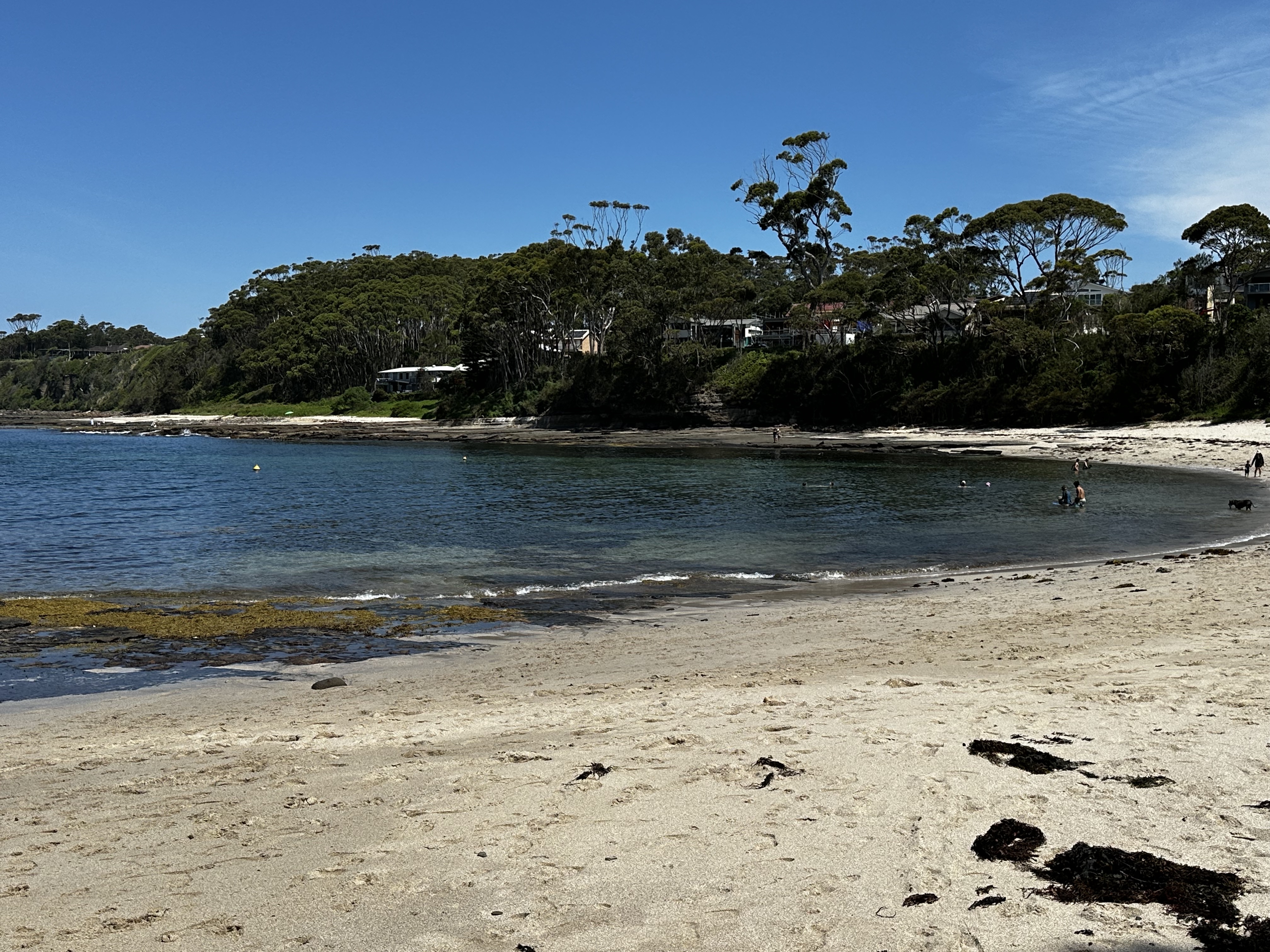 Aproveitando que estávamos ali, fomos no supermercado comprar uns queijos para o jantar e depois uma parada na Collers Beach – era pra ter sido na Mollymook Beach mas virei pro lado errado hehe. A praia é bem bonita mas é aberta para cachorros também, então se você não gosta dessa mistura, não recomendo ir. Caminhei pela praia até as pedras, nadei, descansei como há 2 anos e 4 meses (desde que meu filho nasceu) eu não fazia. Essa foi a noss primeira viagem a dois pós Thomas aproveitando que os avós estavam aqui. O tempo começou a ficar nublado no final de tarde então voltamos pro hotel. Jantamos queijos e vinho, vimos um filme e cama. Ah, em Ulladulla tem o Burril Lake que parece ser bem bonito também. Anotado pra próxima.