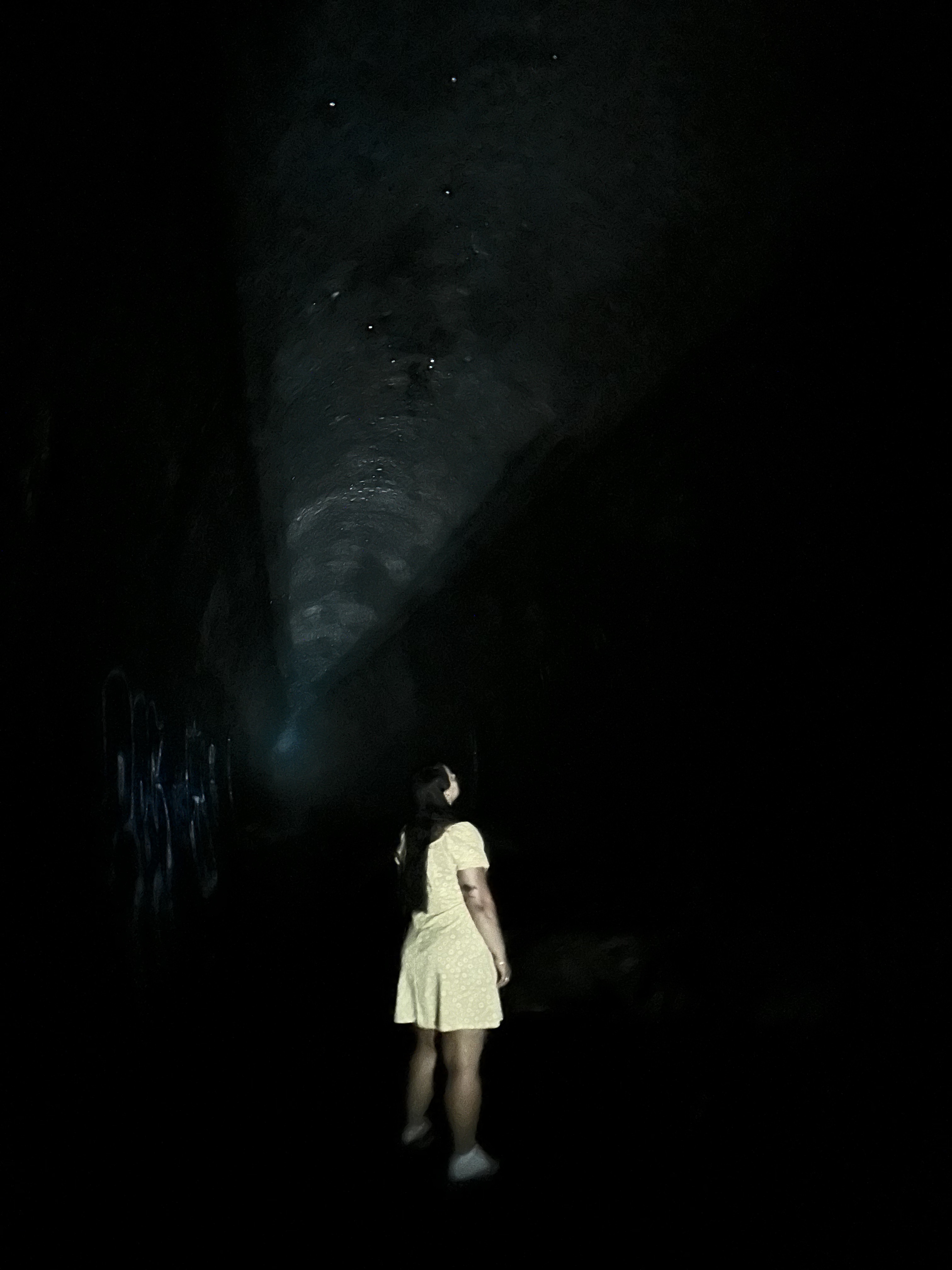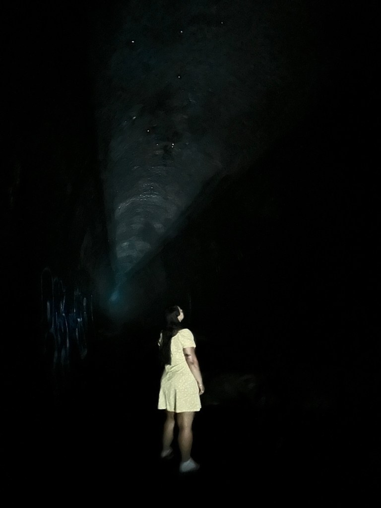 O túnel certo tem 11.4km de extensão e é abrigado por vários bichinhos que brilham no escuro, transformando o túnel em uma semelhança ao céu. Lindo demais! Mas oh, deu muitoooo medo de entrar, é um bréu e não se enxerga nada sem lanterna. Recomendo fortemente ter uma lanterna para conseguir andar lá dentro, além de uma bota pois tem água, lama e barro – eu que não sabia fui de tênis branco. Quase desistimos de entrar mas fomos com a lanterna do celular mesmo. Uma vez que começa a entrar, você acaba focando tanto no chão para não escorregar e cair que esquece do bréu na sua frente. Dez minutos pra dentro do túnel já foi possível ver o quão incrível era mas lógico que quanto mais pra dentro, mais escuro fica, mais bichinhos tem no teto e mais iluminado fica. A gente desistiu de entrar mais porque estava realmente muita lama. Ah, estava chovendo também quando fomos então como o céu do lado de fora tava escuro, acabou ajudando então se for um dia de sol acredito que tenha que ir ainda mais pra dentro para vê-los – ou quem sabe você tenha coragem de ir a noite hehe.